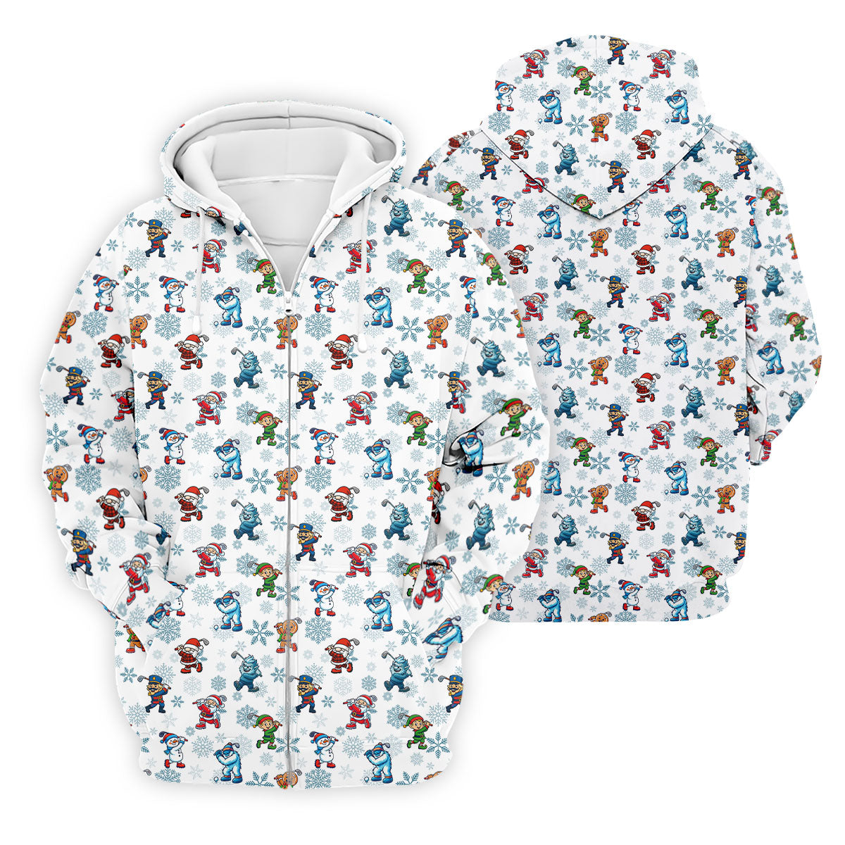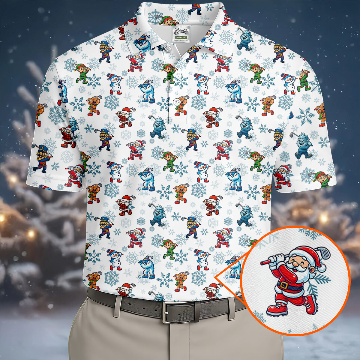 Christmas Characters Golf Pose Men's Funny Golf Shirts, Christmas Golf Shirt, Polo Shirts For Men