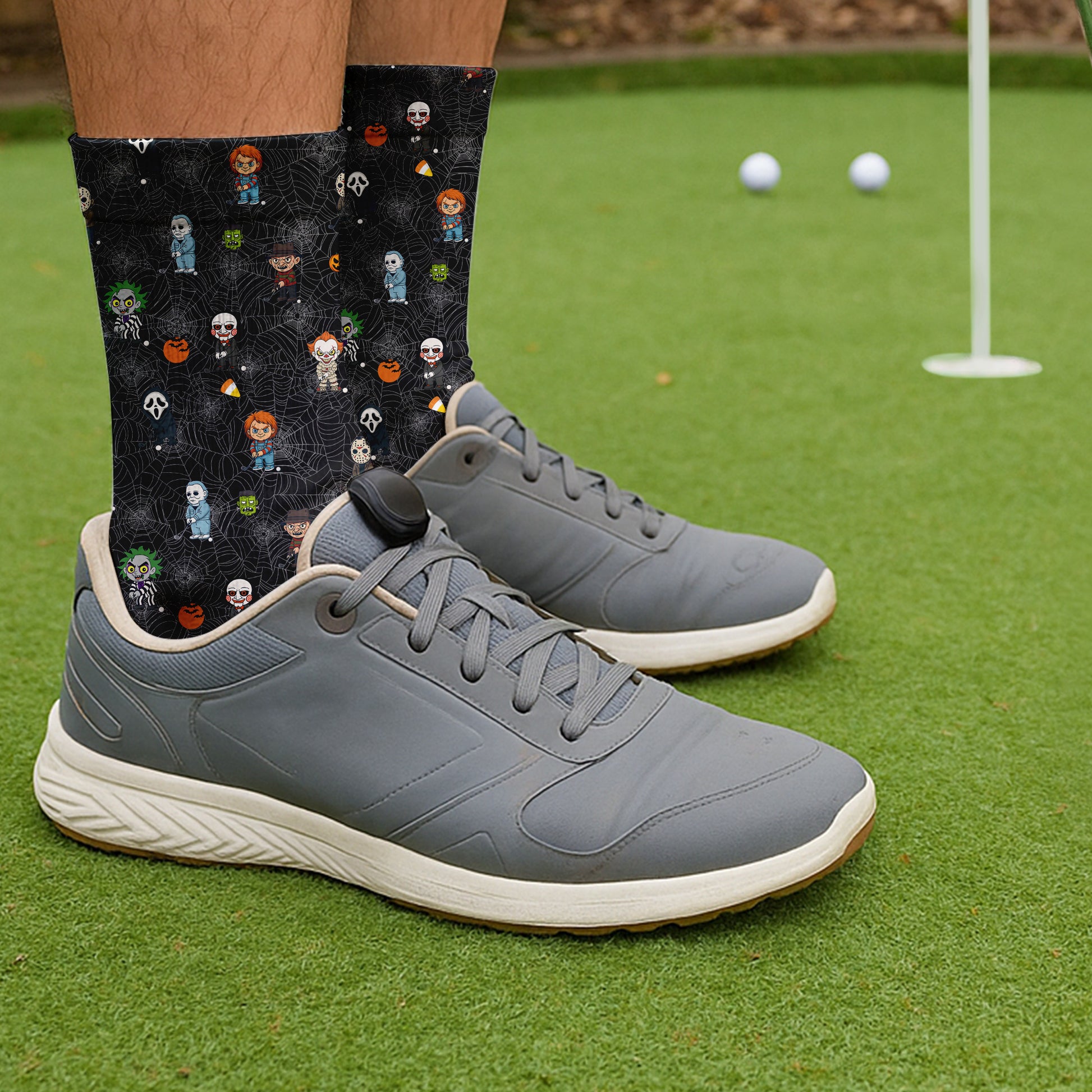 Classic Horror Characters Black Golf Socks, Christmas Golf Gift, Halloween Gift Idea, Golfing Apparel
