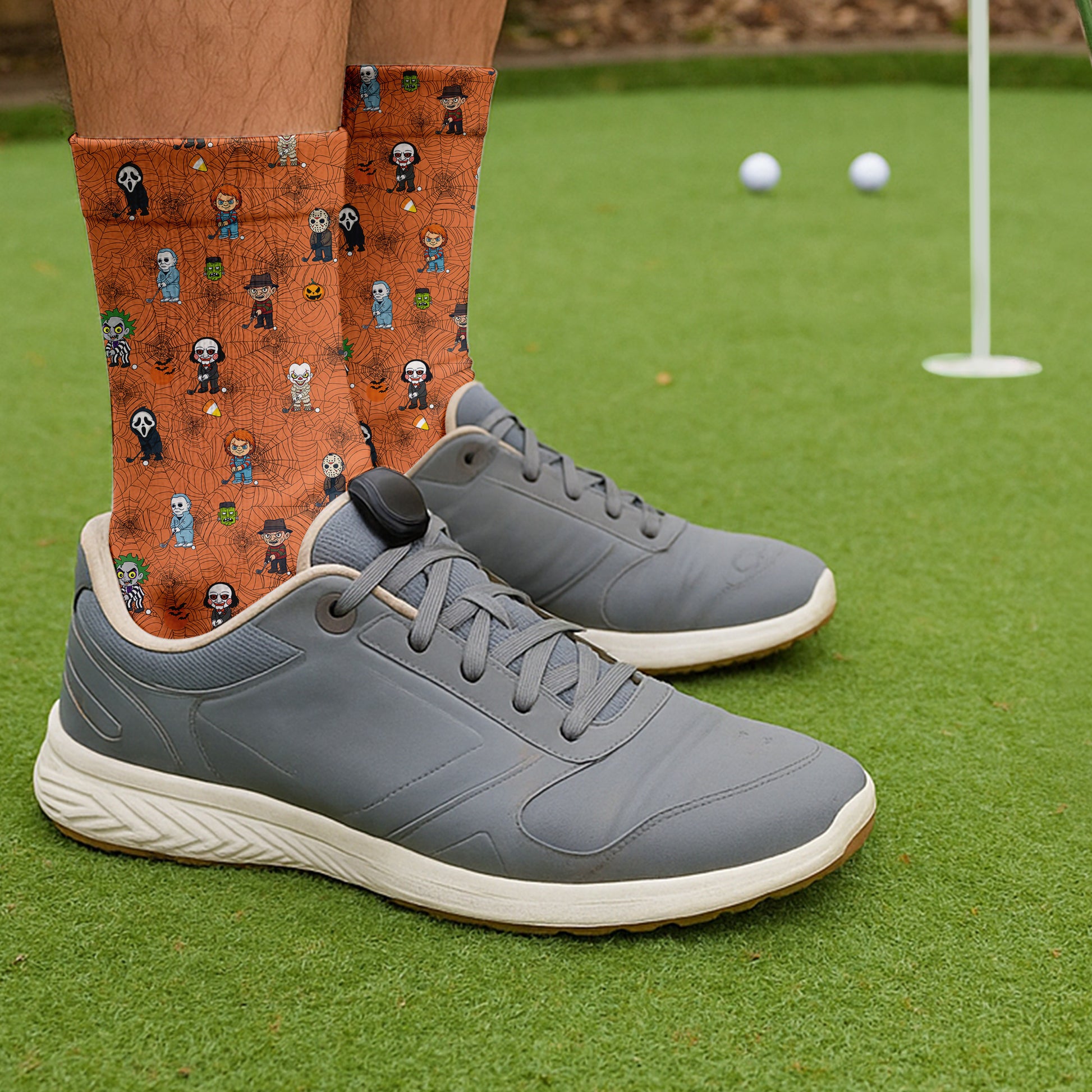 Classic Horror Characters Orange Golf Socks, Christmas Golf Gift, Halloween Gift Idea, Golfing Apparel
