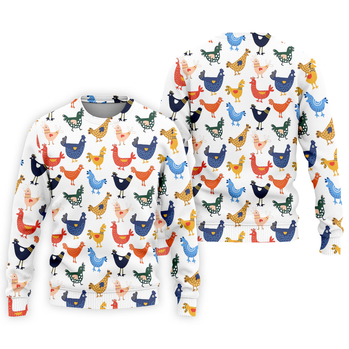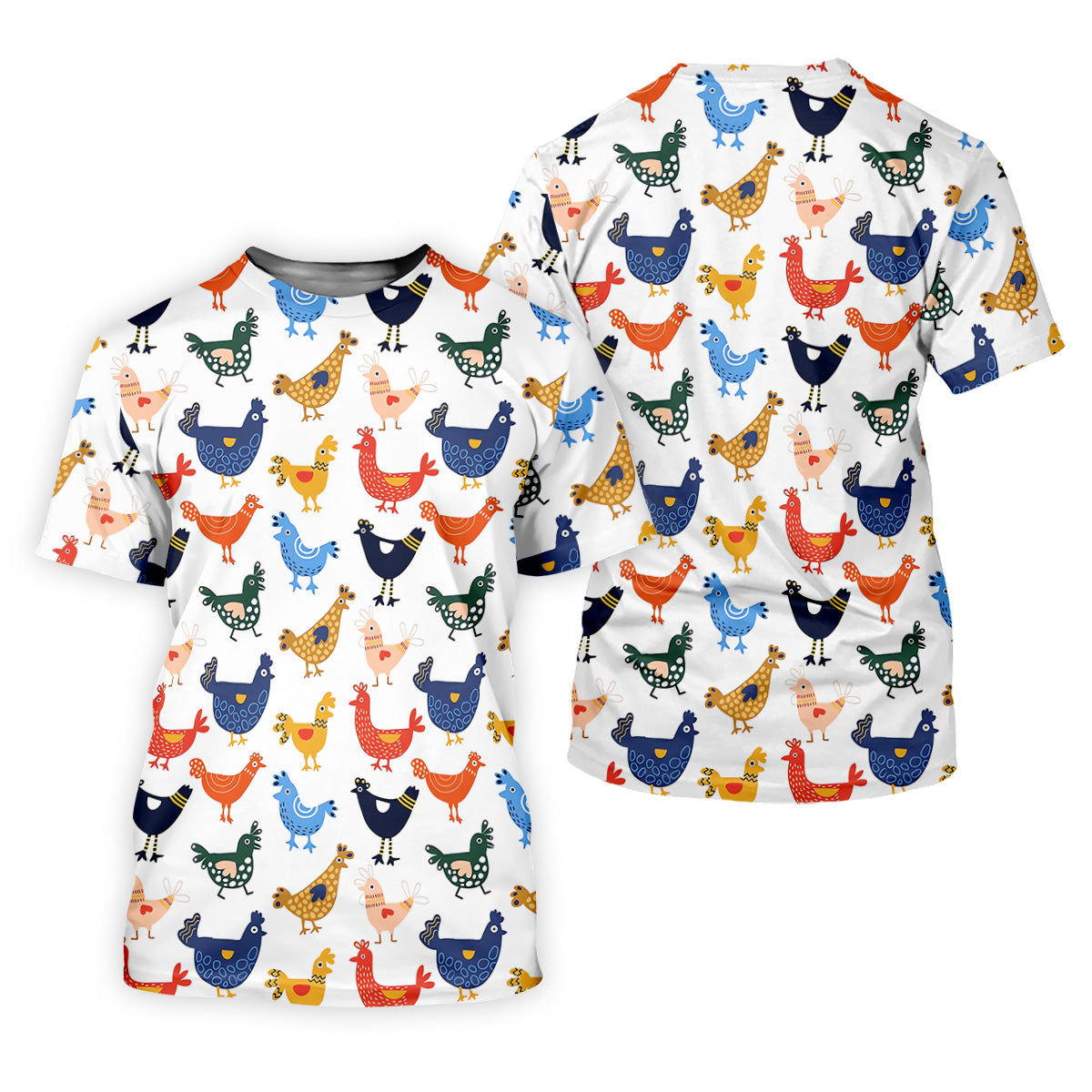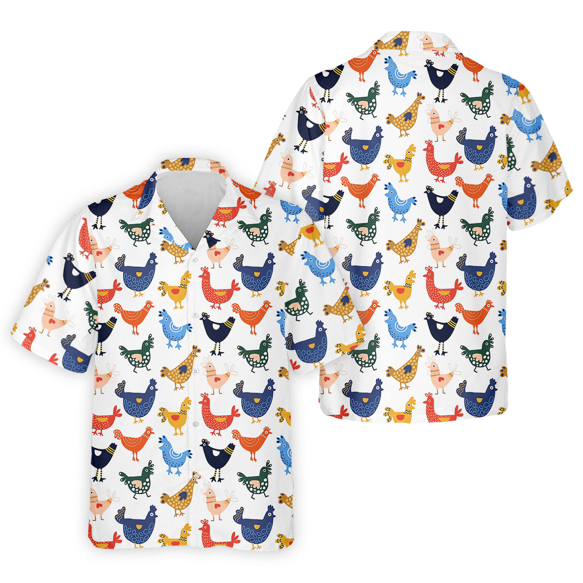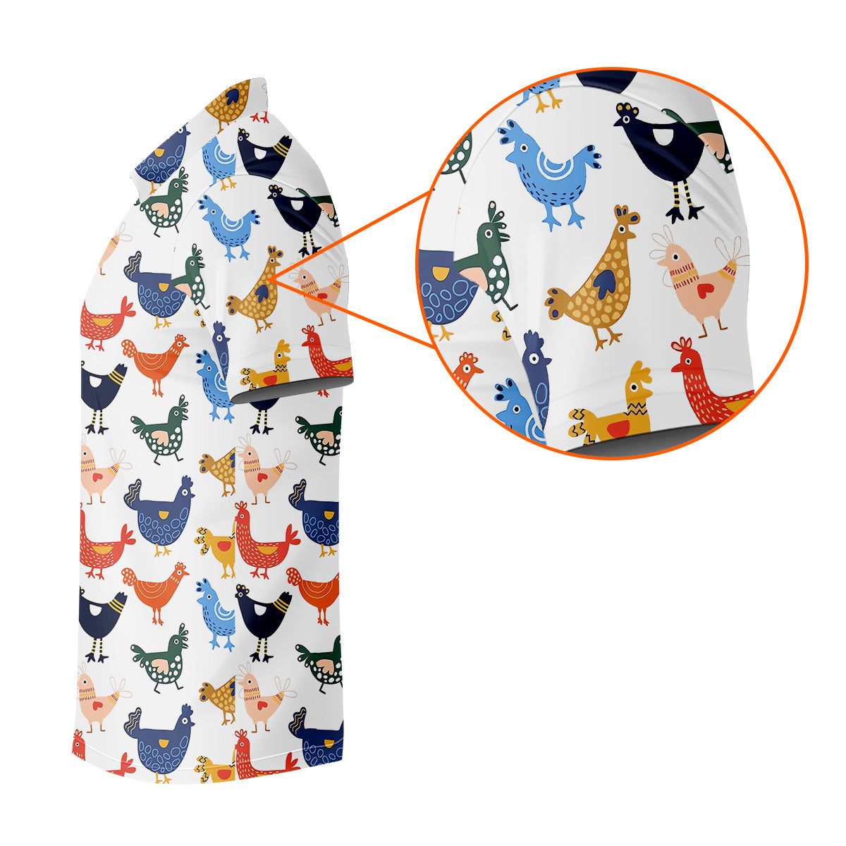 Colorful Animated Chickens White Polo Shirt Mens, Fun Golf Shirts For Men, Gift For Chicken Lover