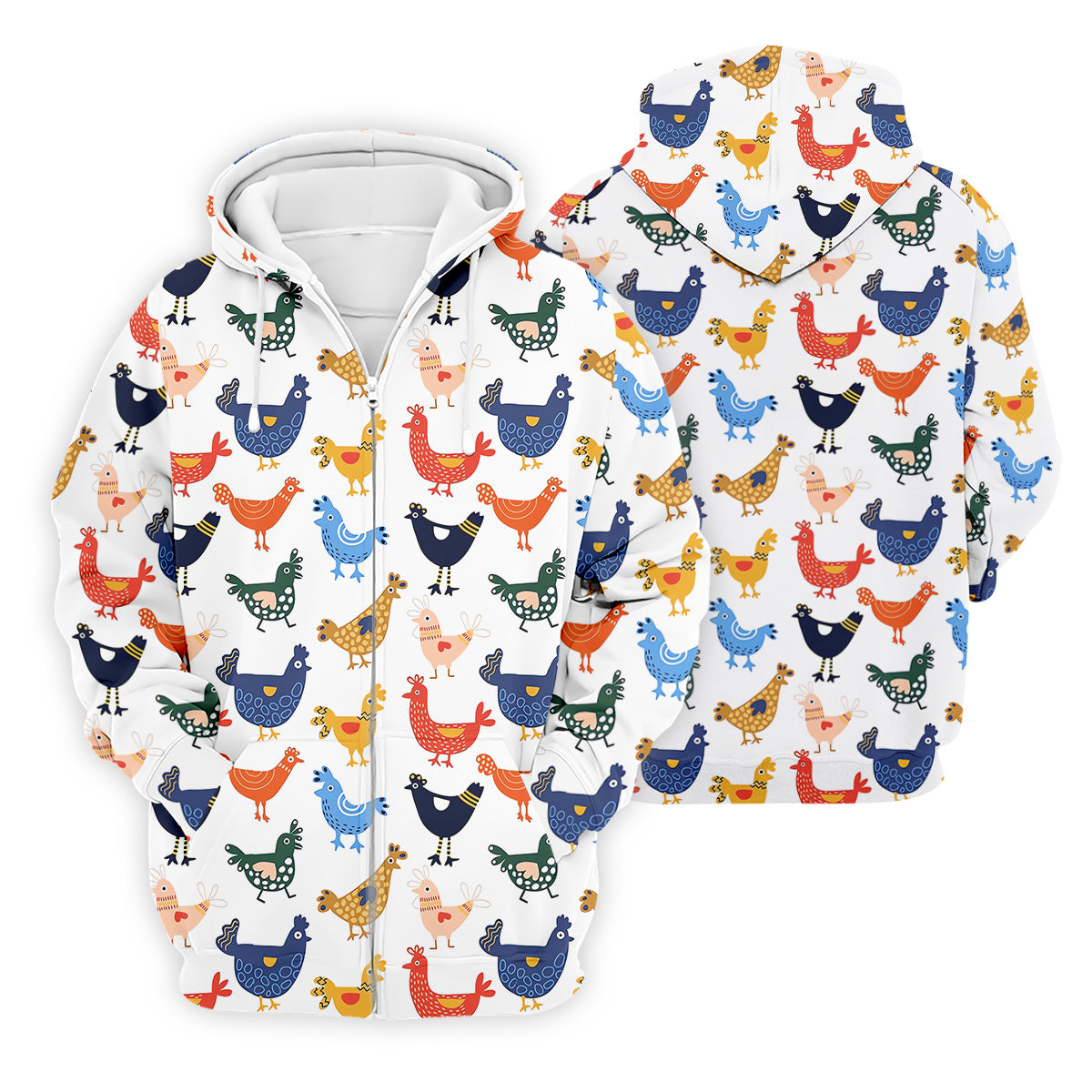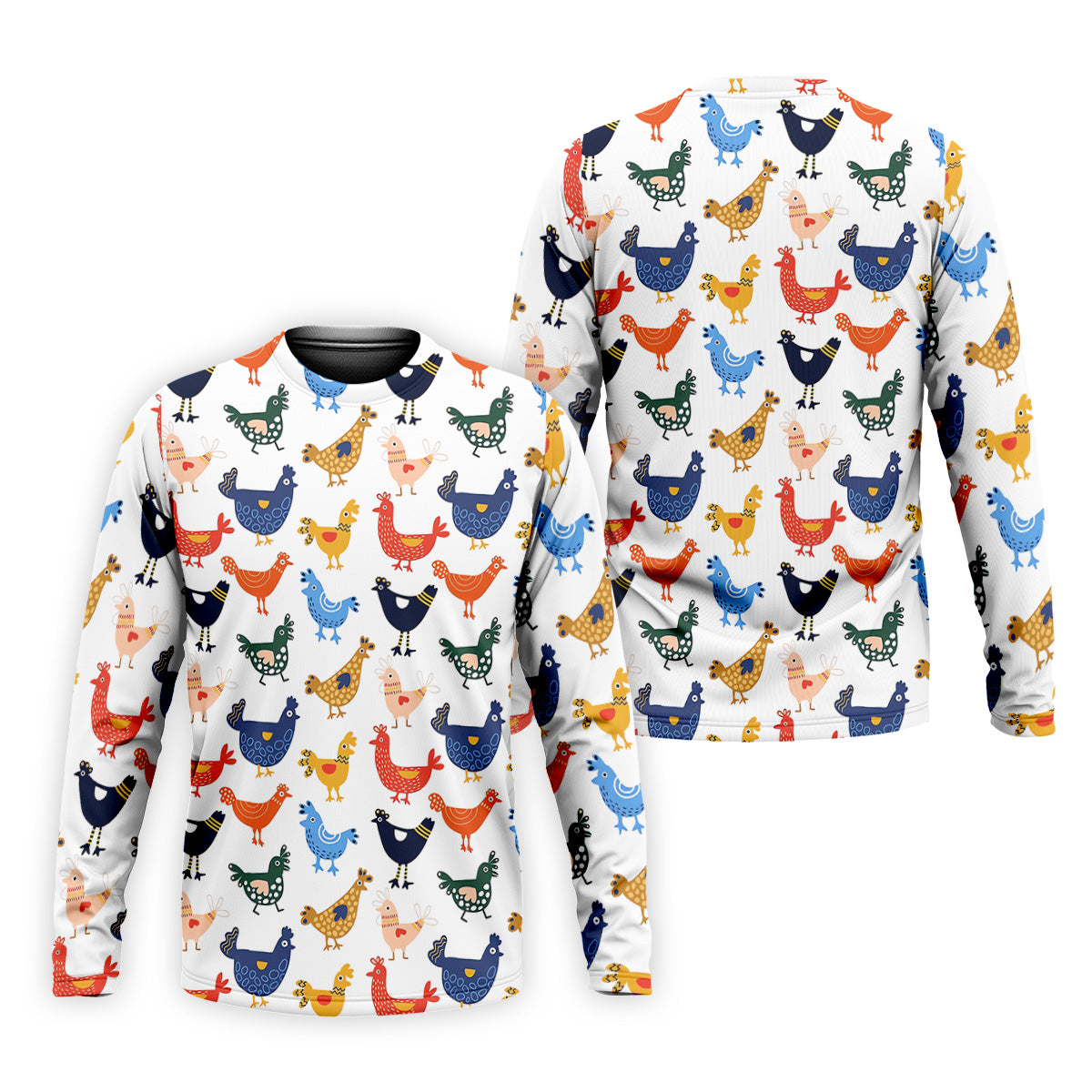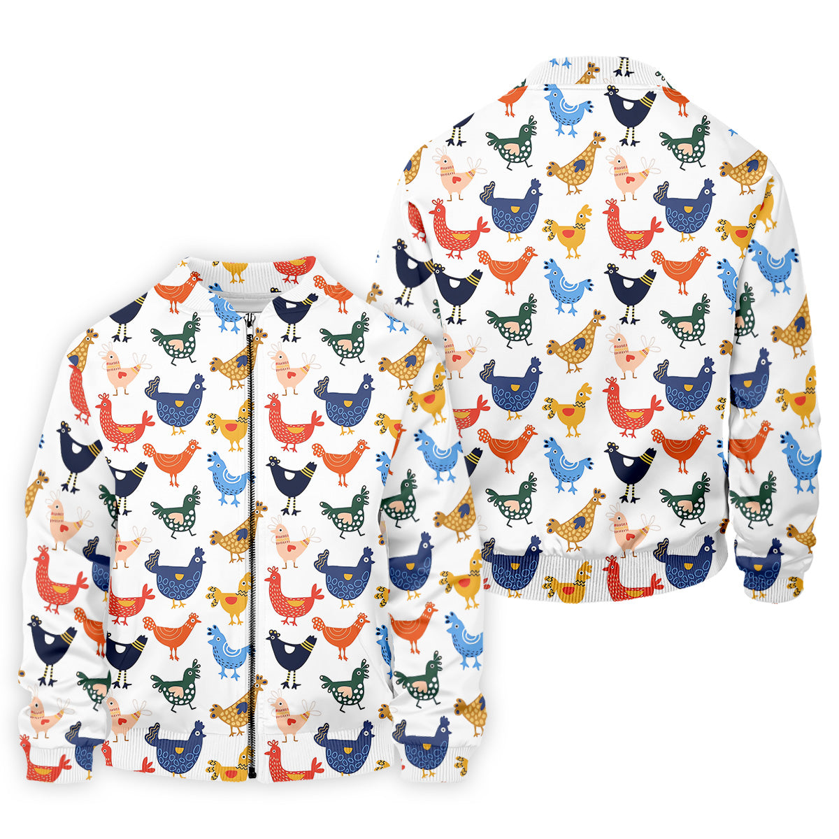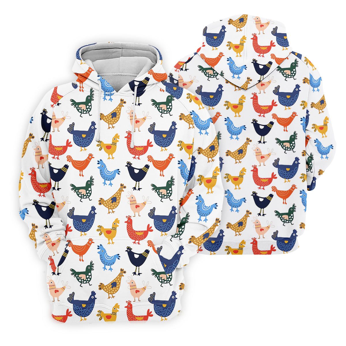 Colorful Animated Chickens White Polo Shirt Mens, Fun Golf Shirts For Men, Gift For Chicken Lover