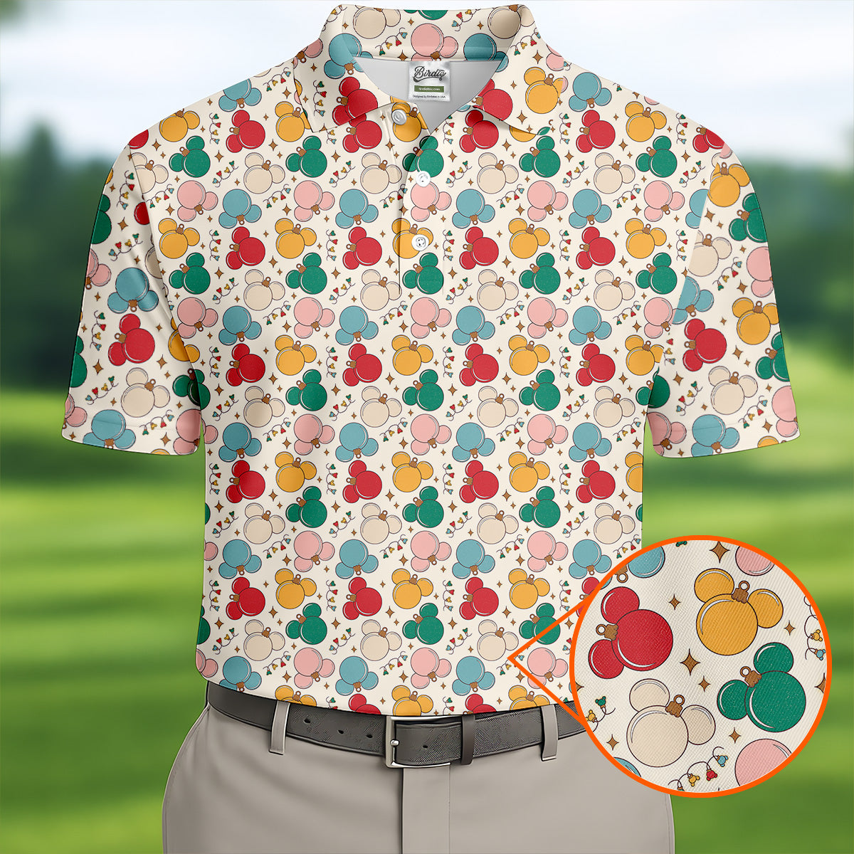 Colorful Christmas Fun Men's Golf Polos, Gifts For Golf Lovers, Polo Shirts For Men, Christmas Golf Shirt