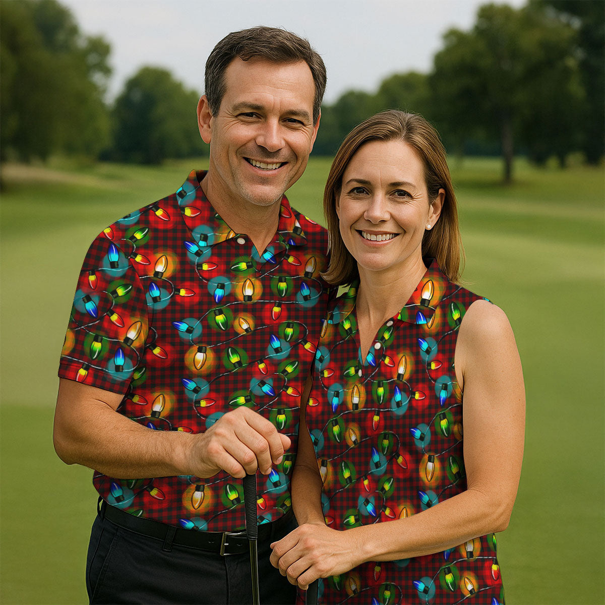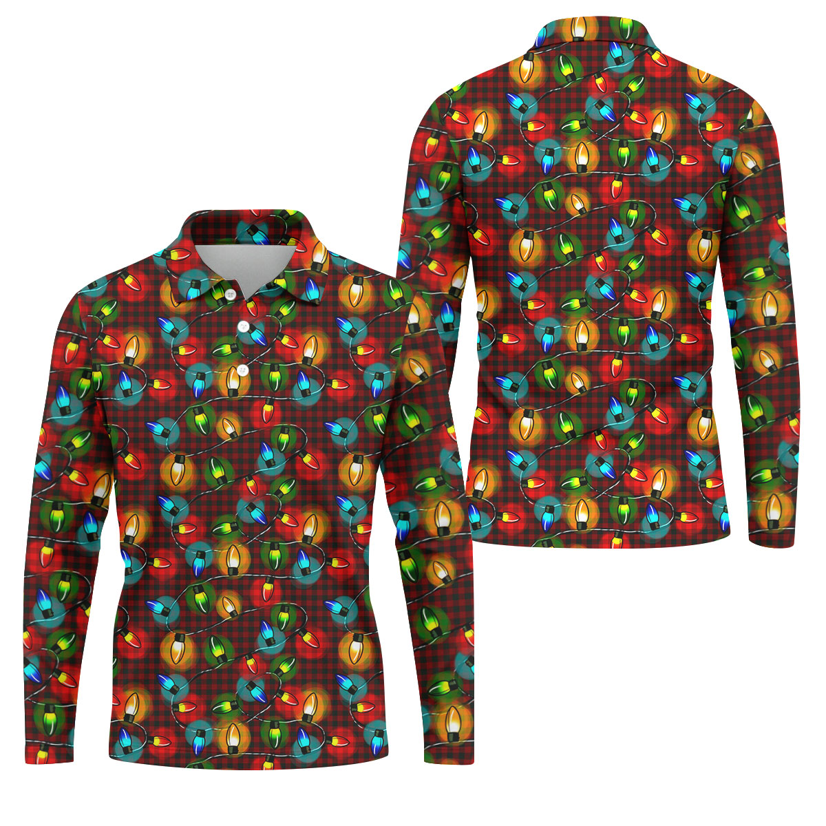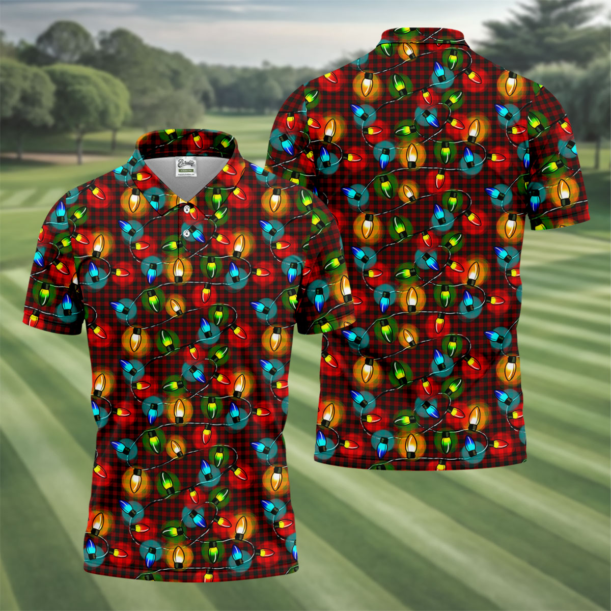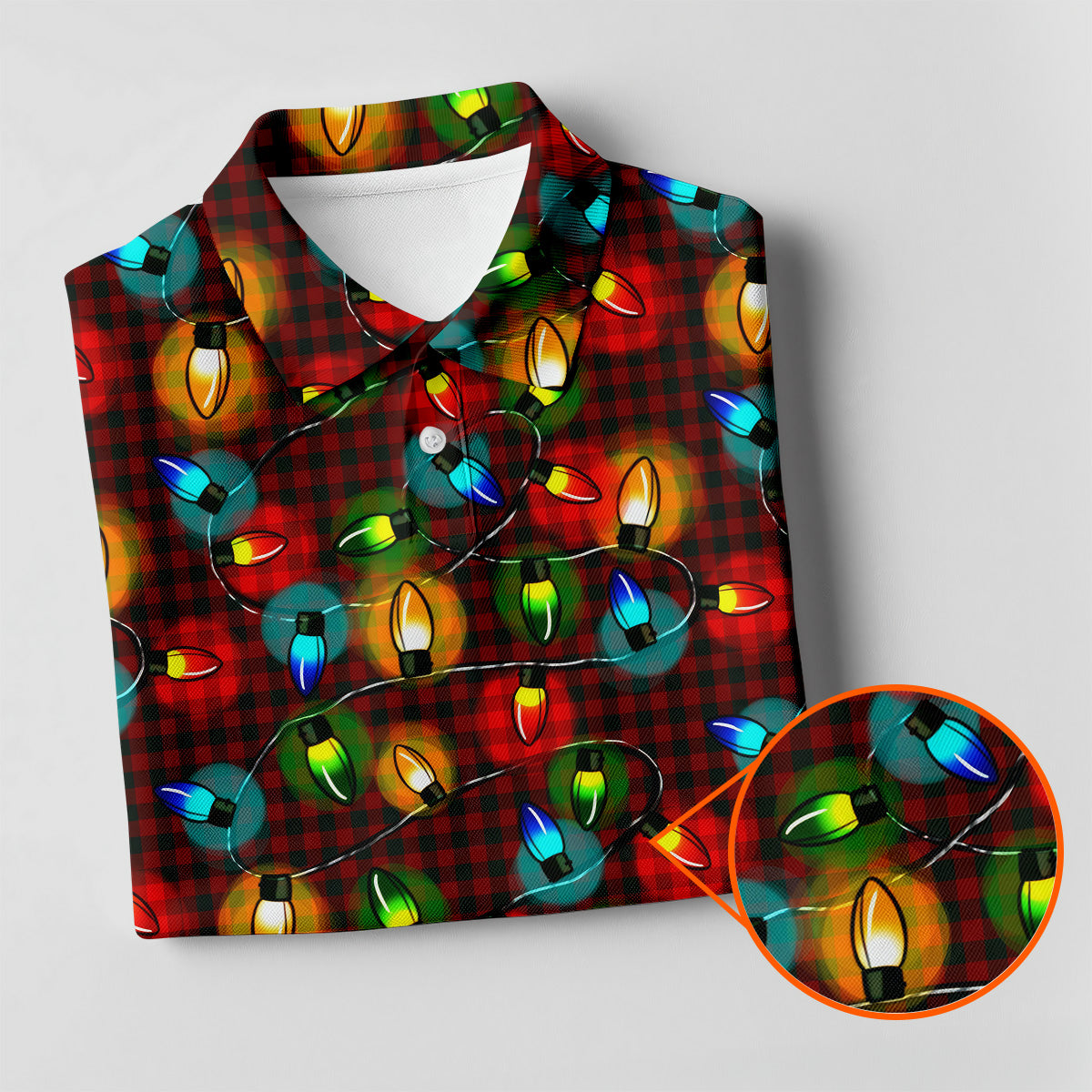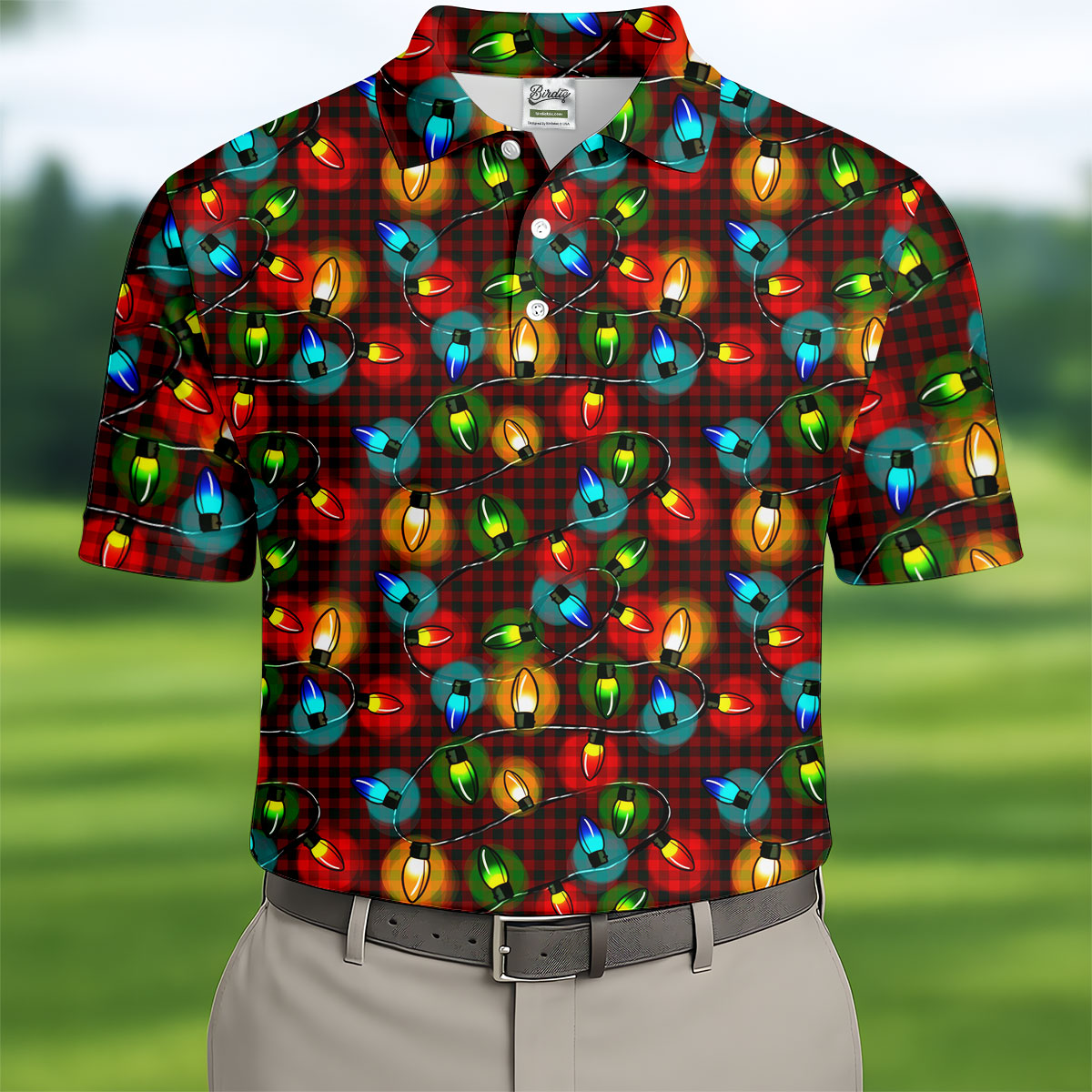 Colorful Christmas Light Plaid Men's Golf Polo Shirts, Christmas Golf Shirt, Polo Shirts For Men