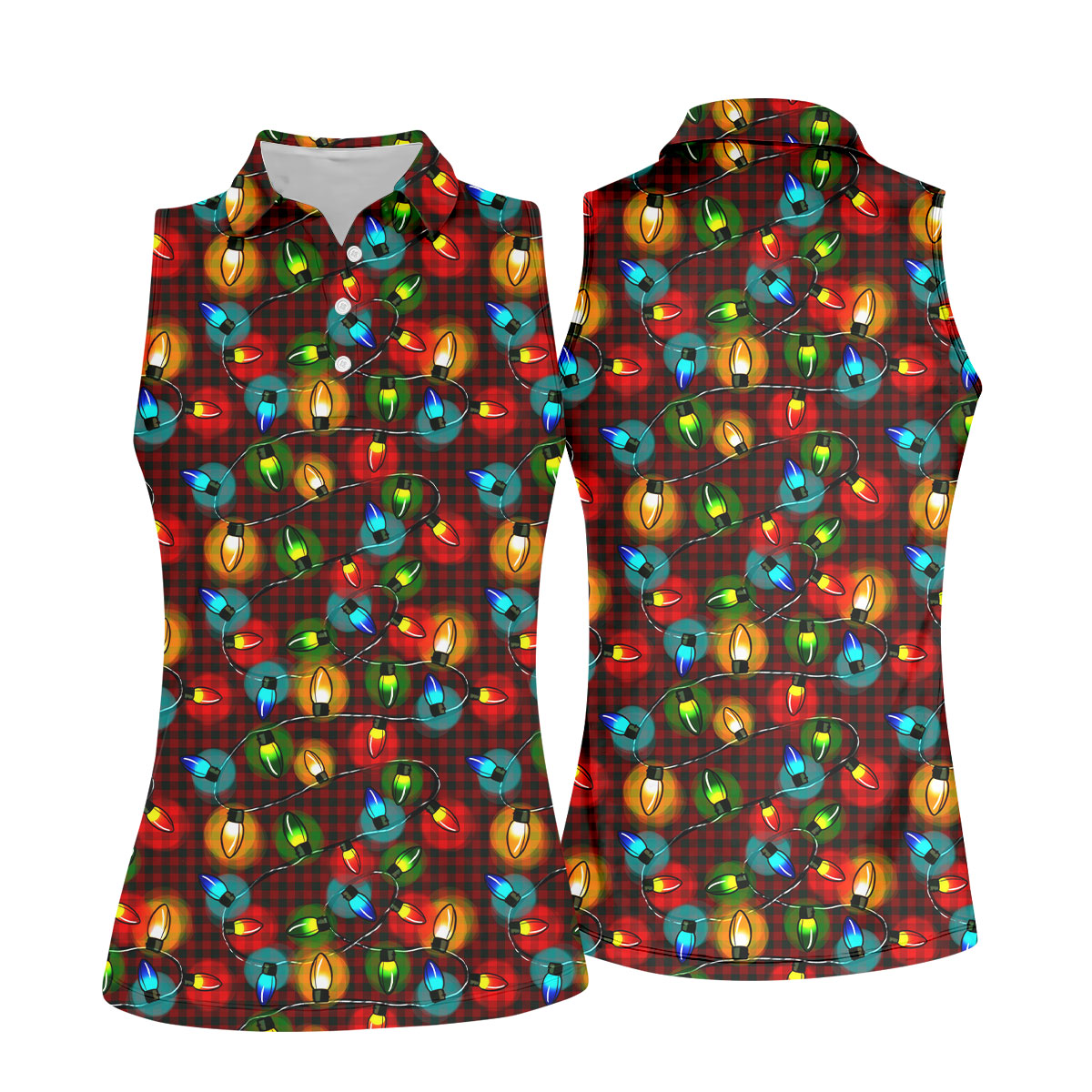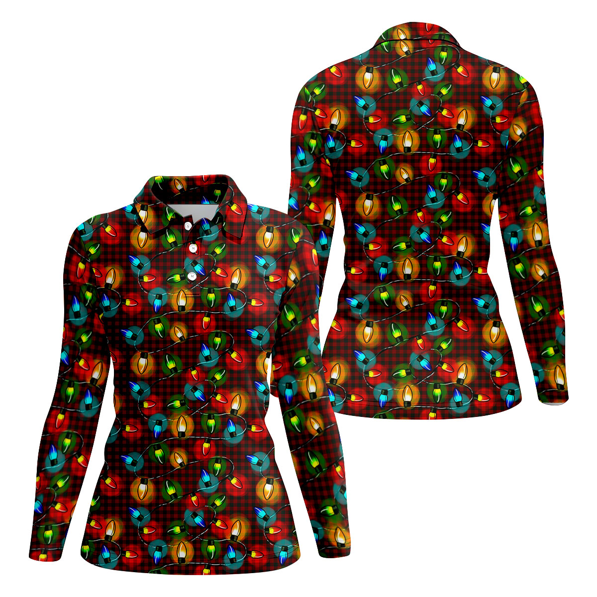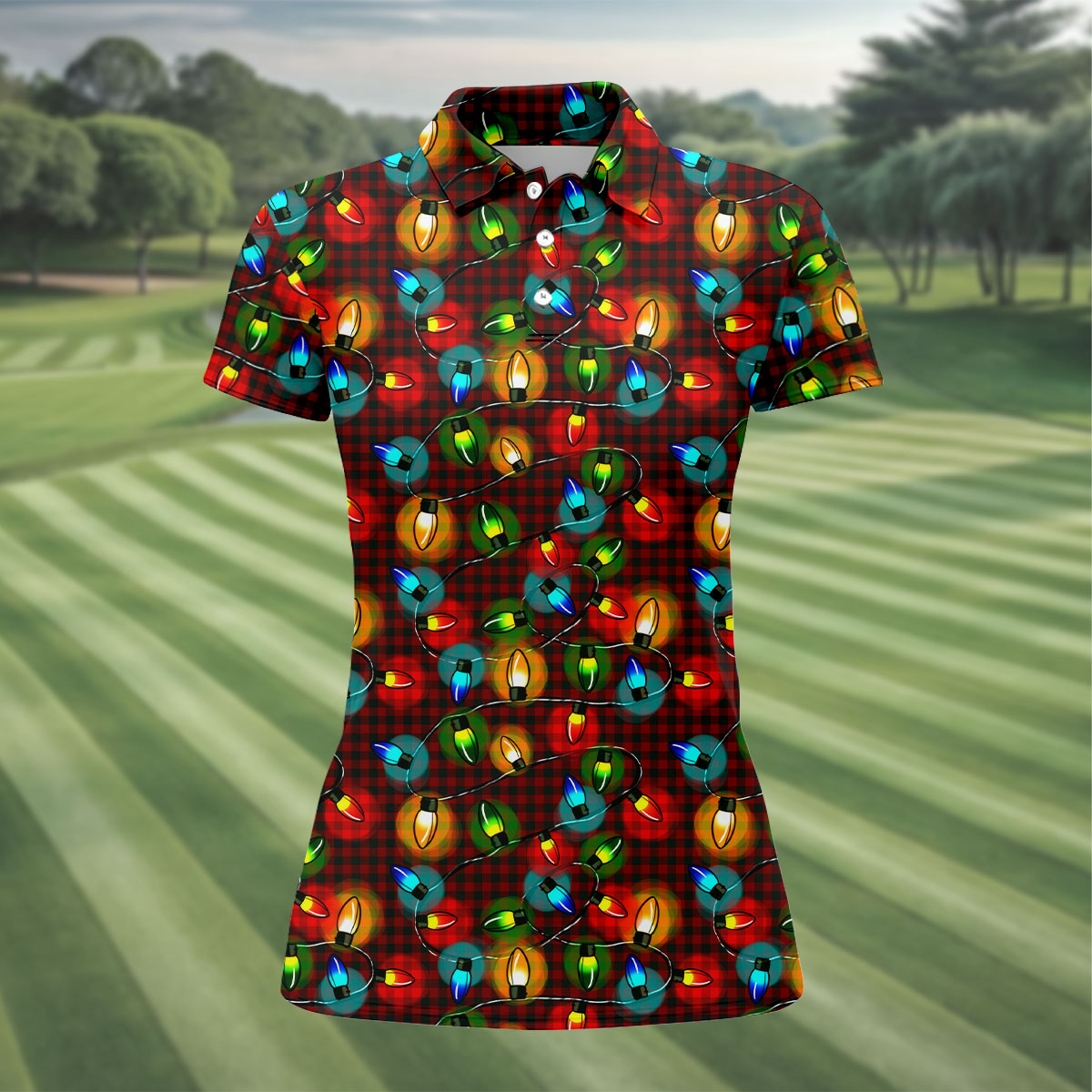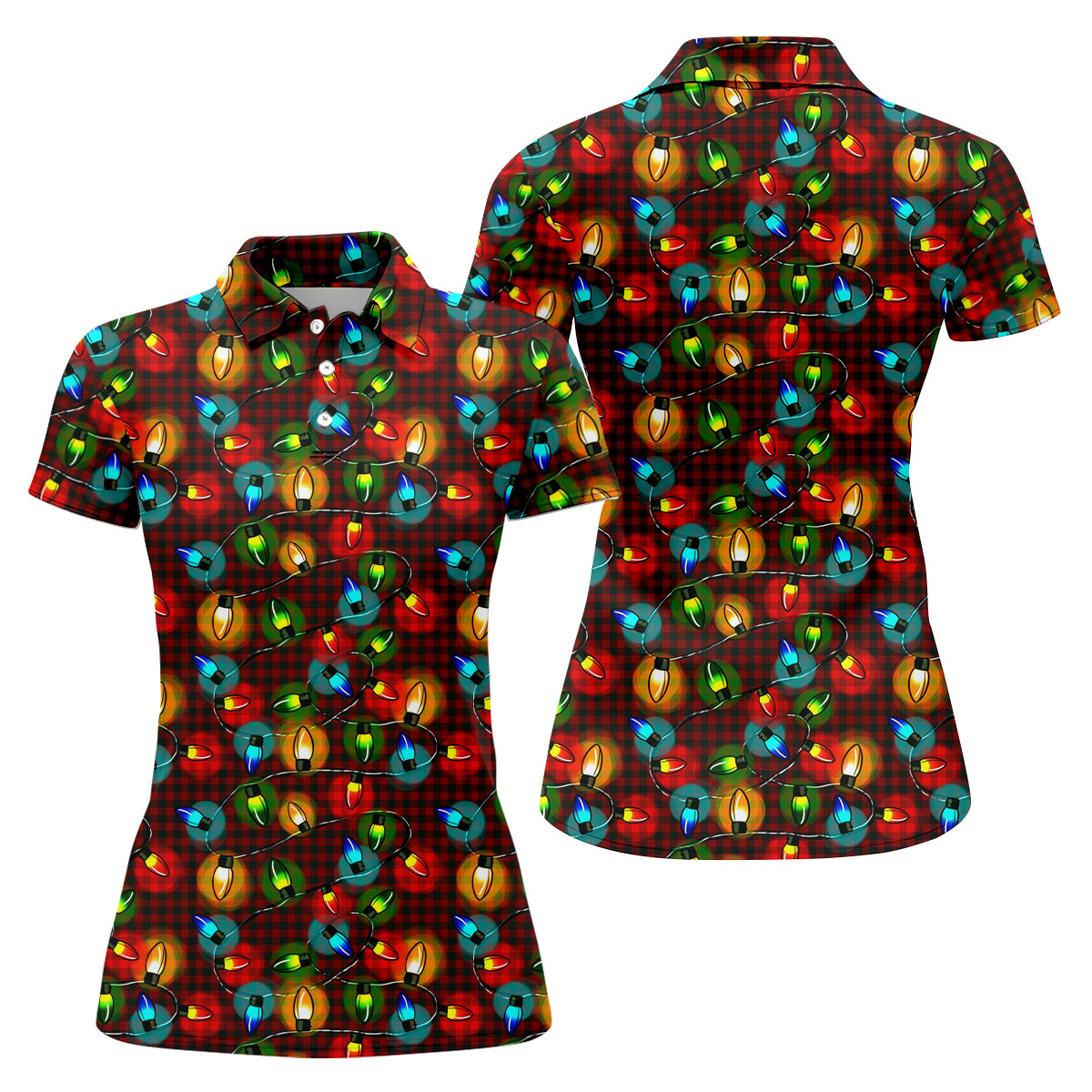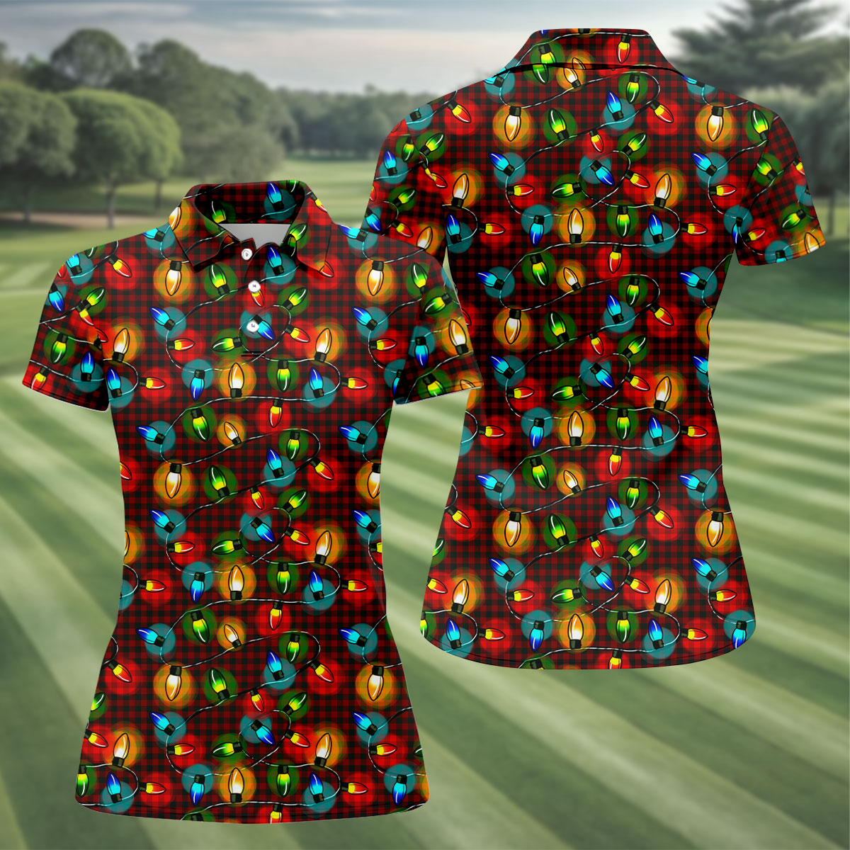 Colorful Christmas Light Plaid Women's Golf Tops, Christmas Golf Shirt, Golf Gift For Ladies