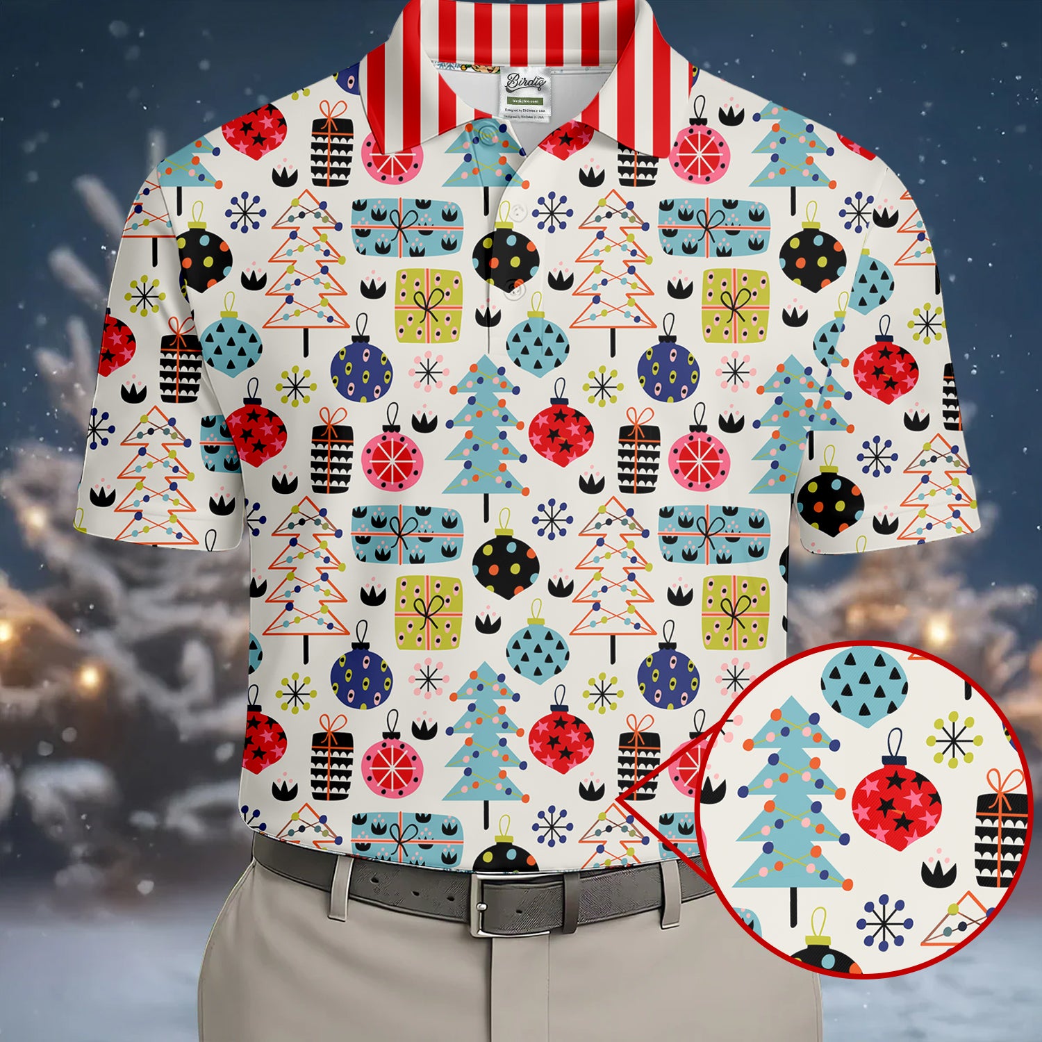 Colorful Christmas Men's Golf Polo Shirts, Christmas Golf Shirt, Cute Golf Outfit, Golf Gift For Men