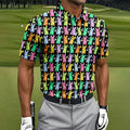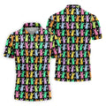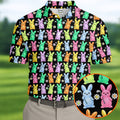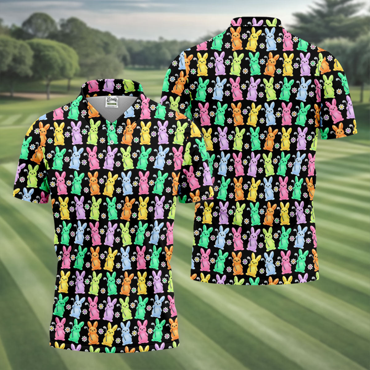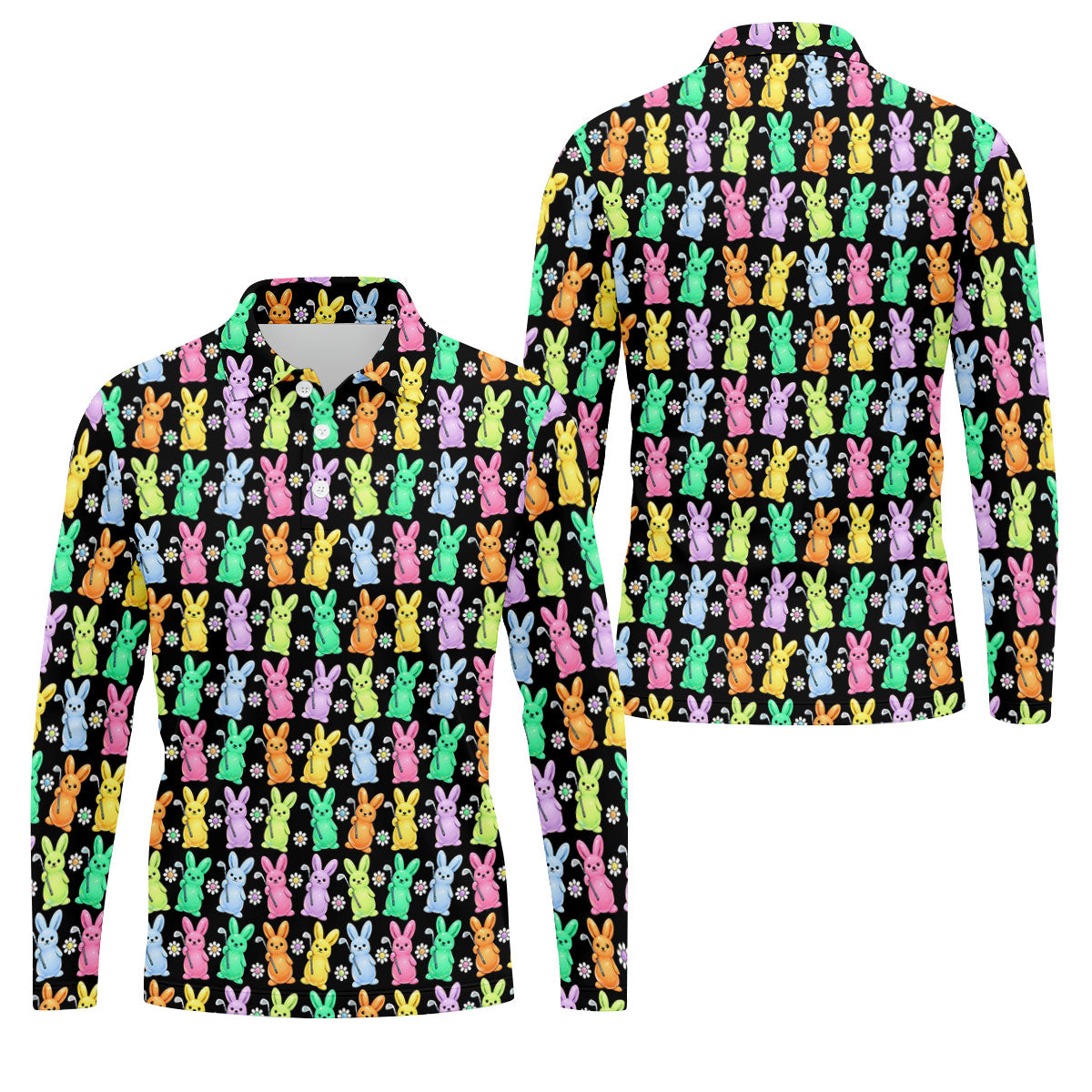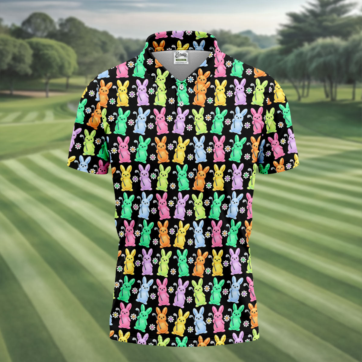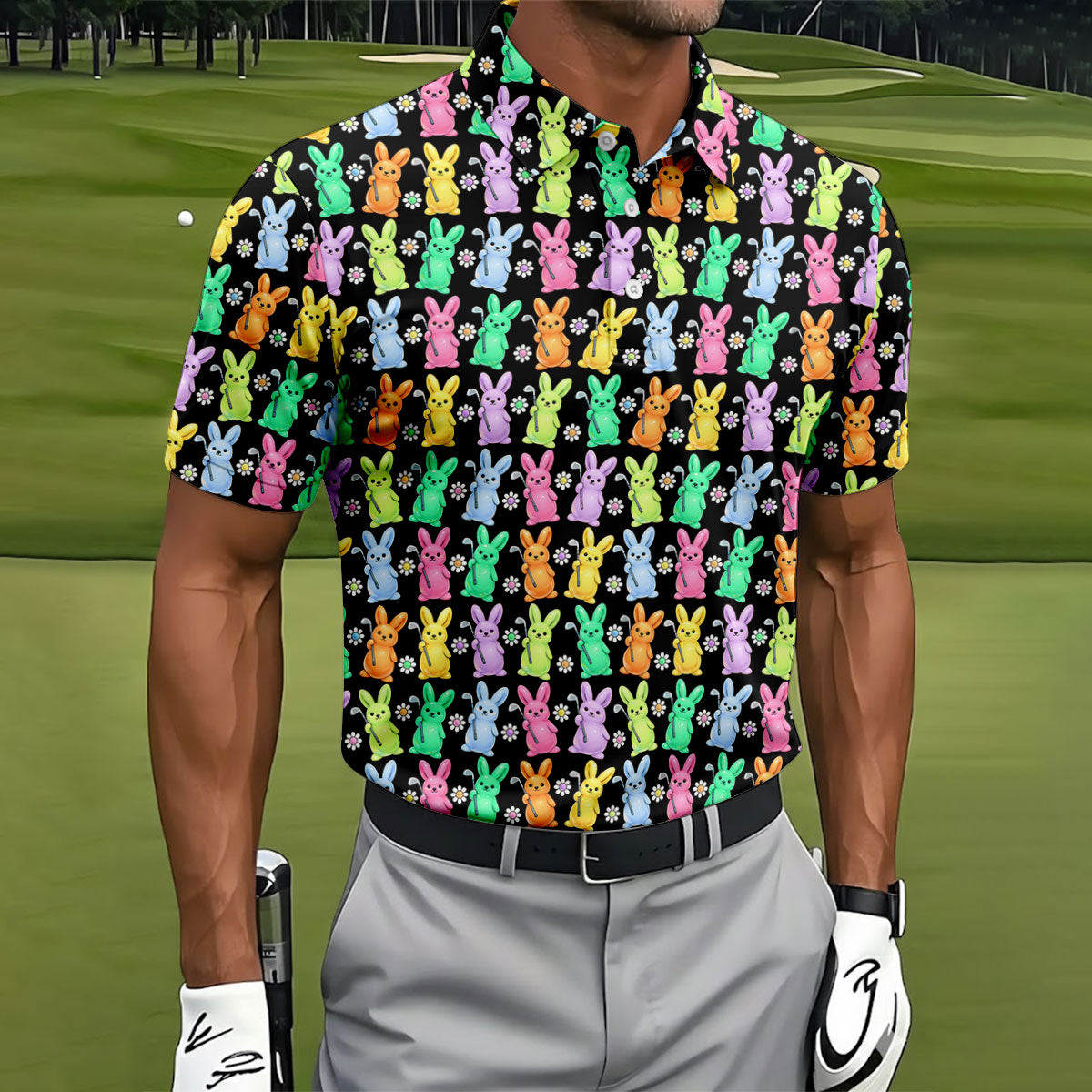Colorful Easter Bunny Black Golf Shirt, Cute Golf Outfit, Golf Shirts For Men, Golf Gift For Men