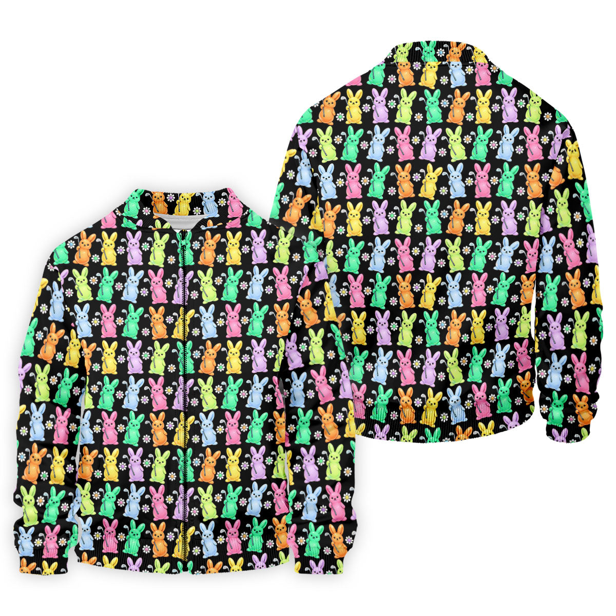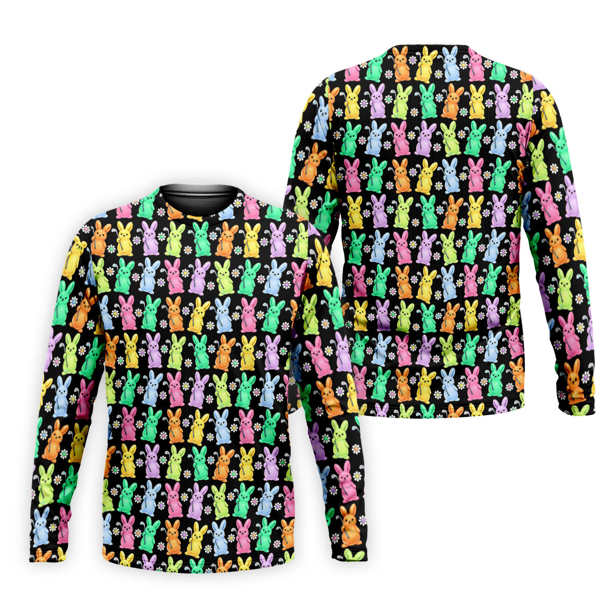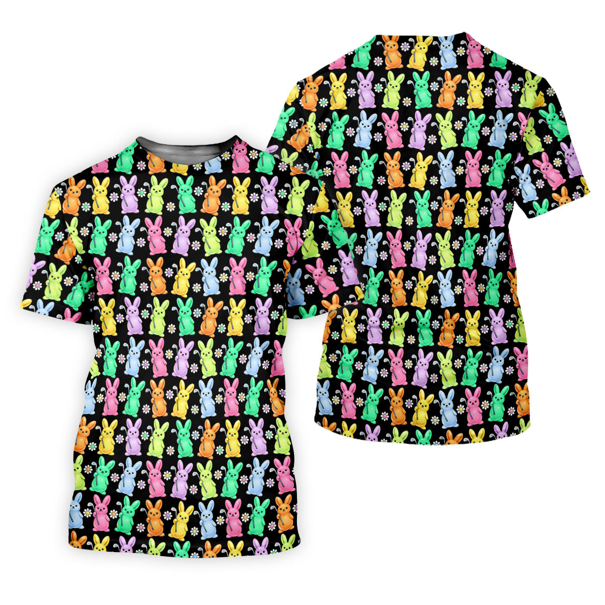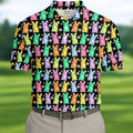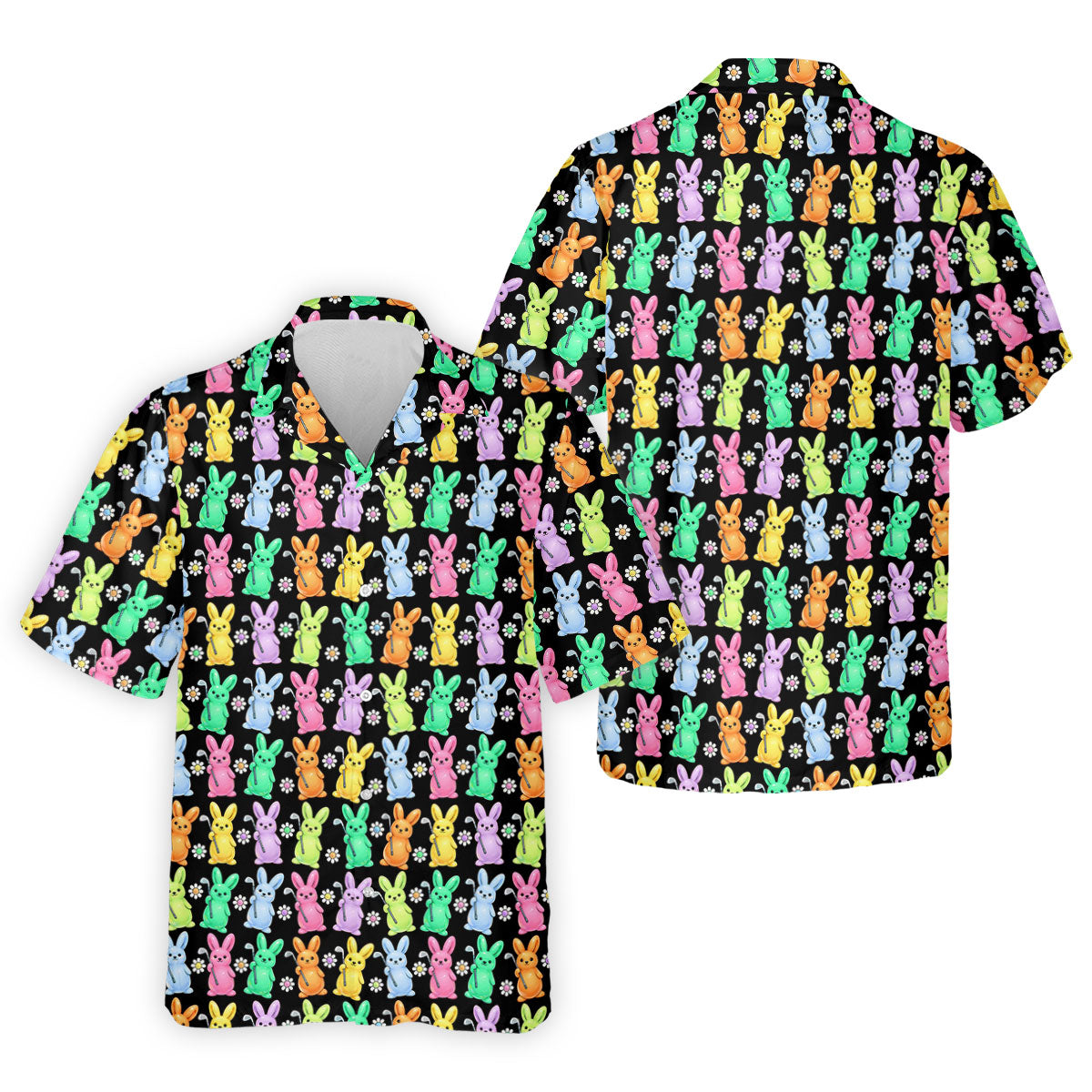 Colorful Easter Bunny Black Golf Shirt, Cute Golf Outfit, Golf Shirts For Men, Golf Gift For Men
