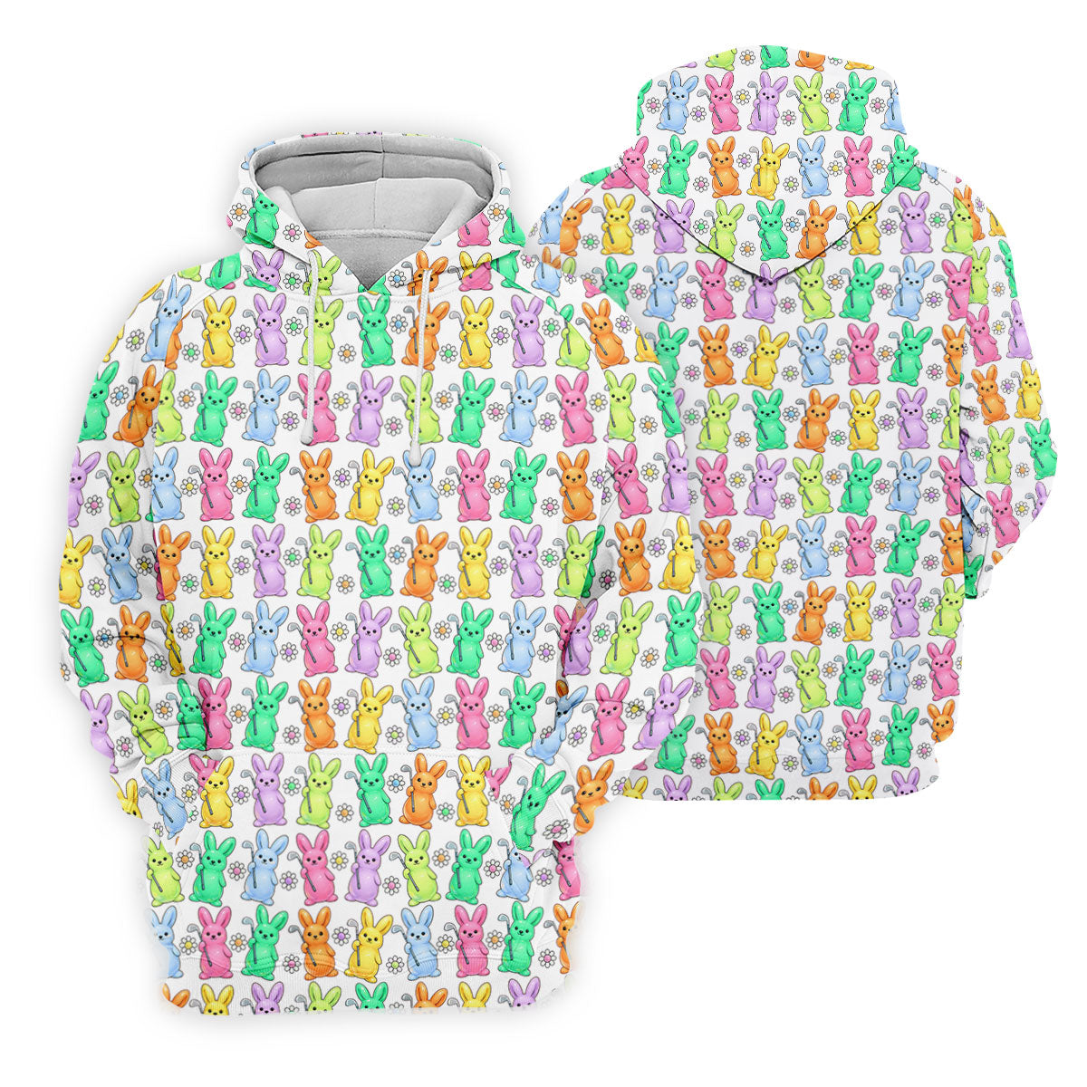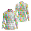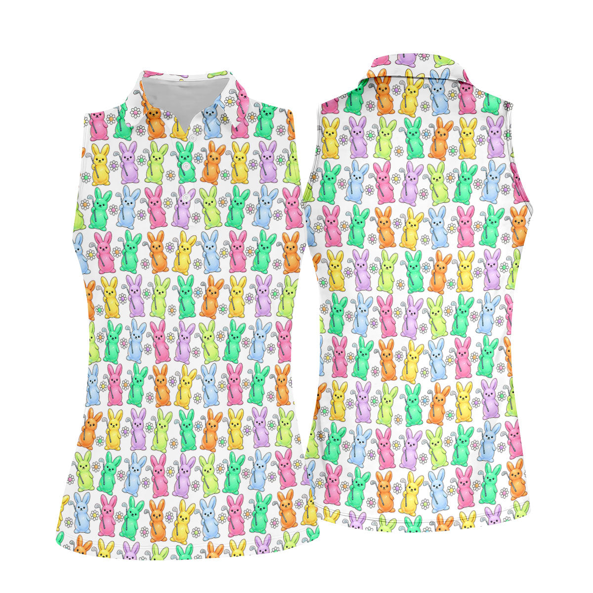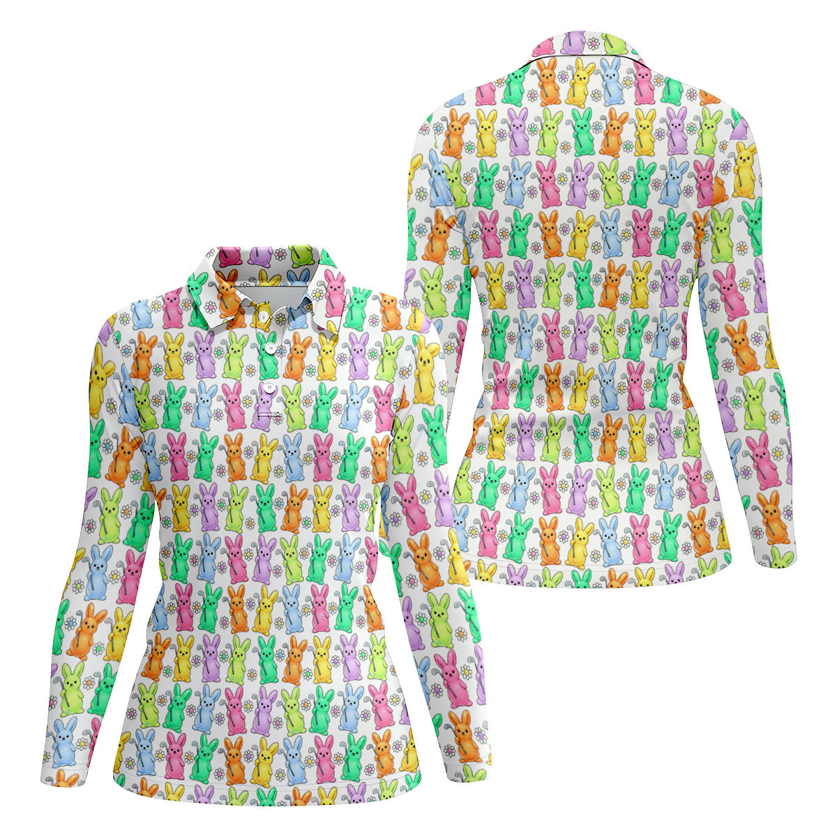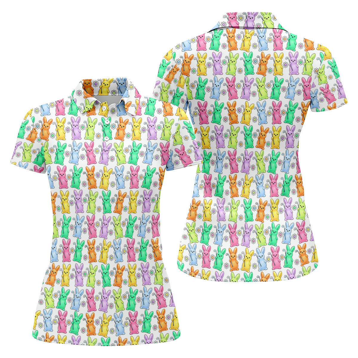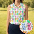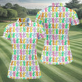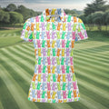 Colorful Easter Bunny White Golf Shirt, Cute Golf Outfit, Women's Golf Tops, Ladies Golf Shirts