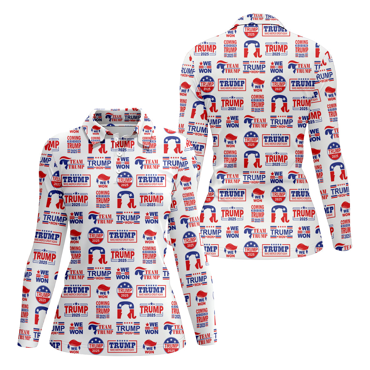 Coming Soon Trump Pattern Christmas Golf Tops For Women, Christmas Golf Shirt, Women Golf Apparel