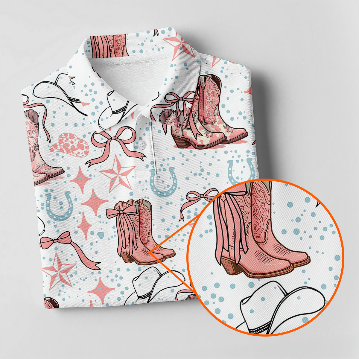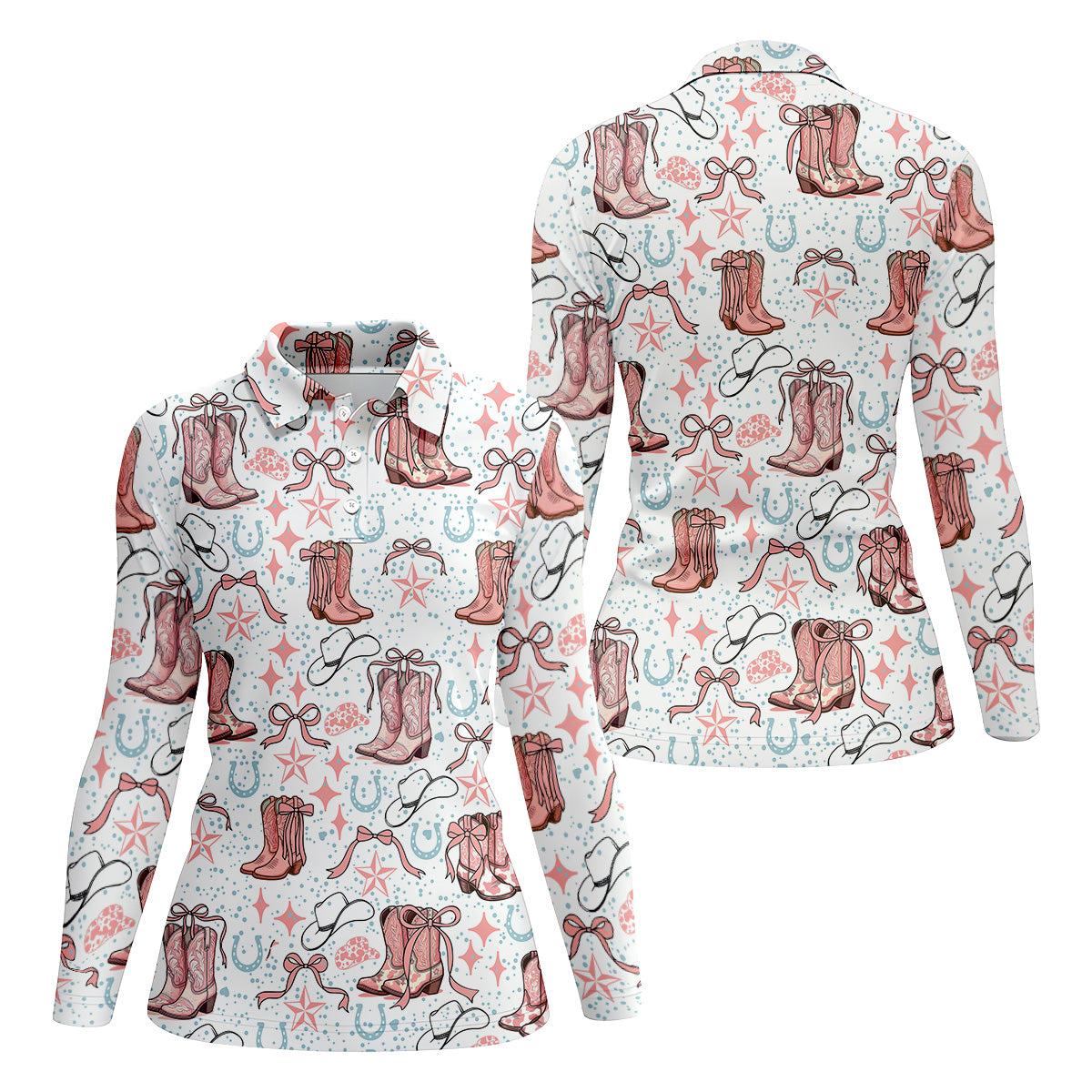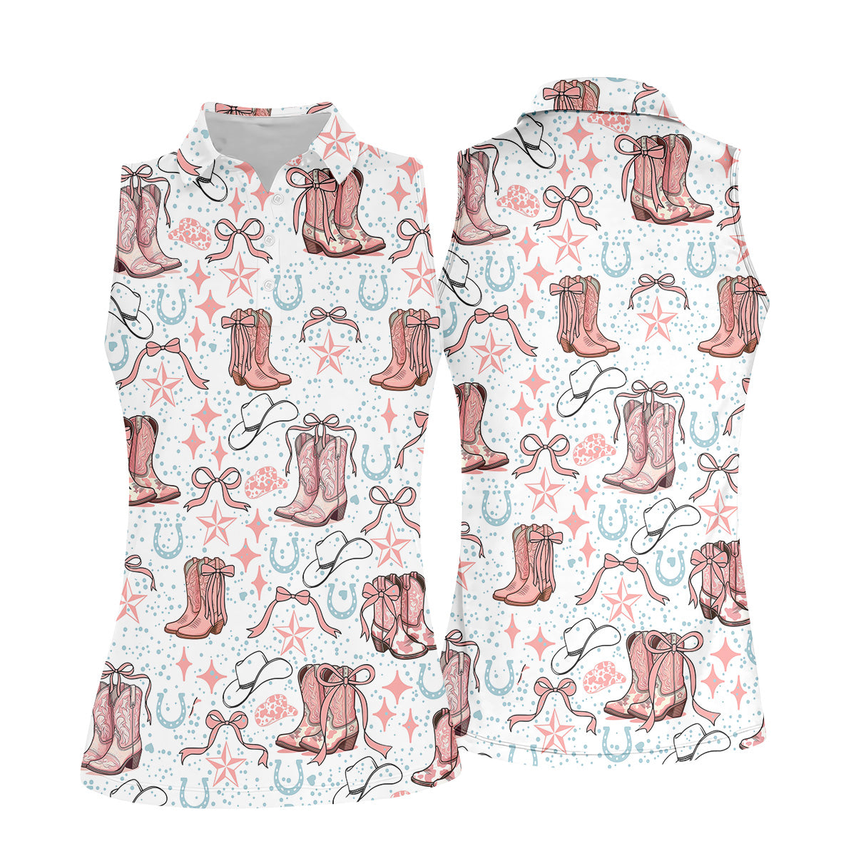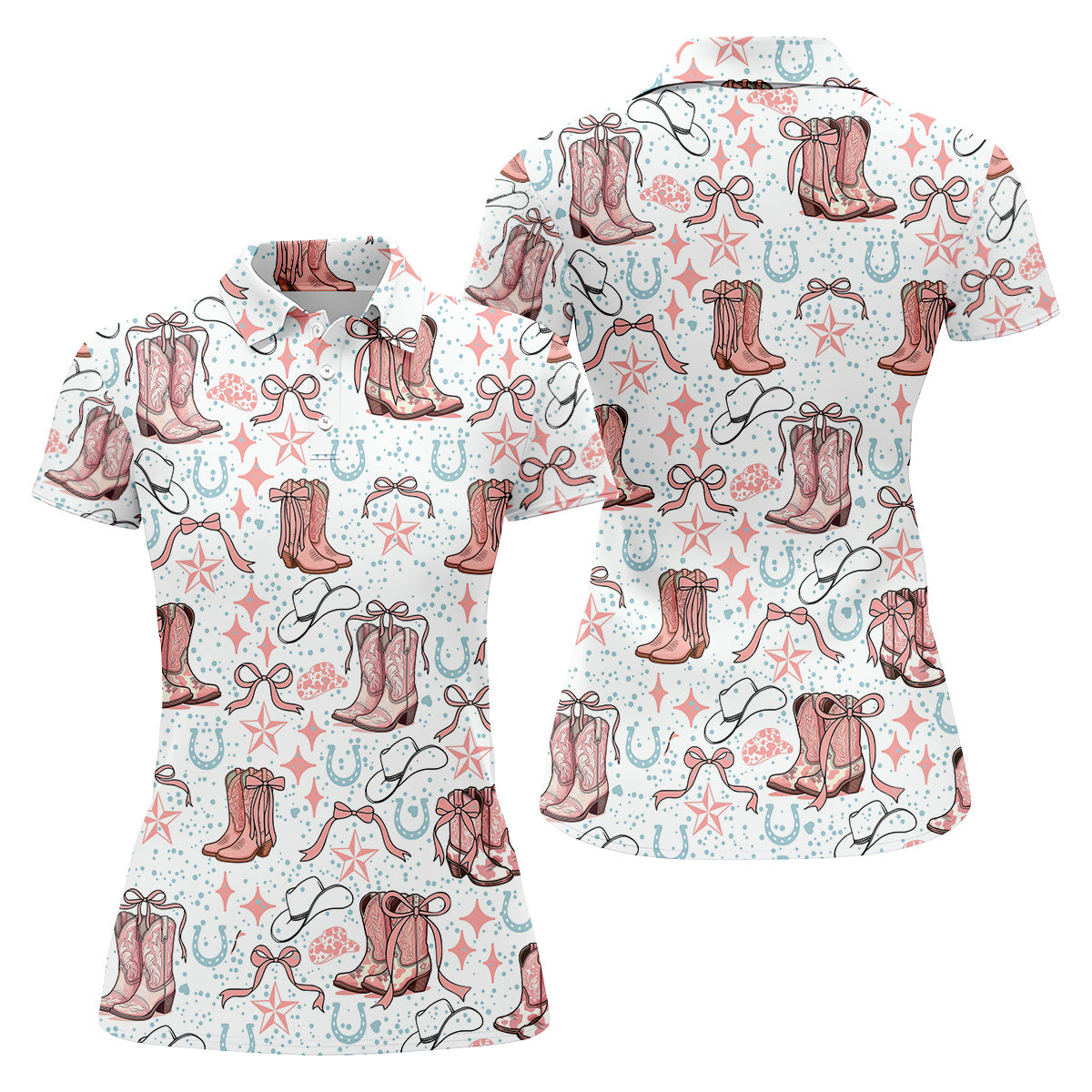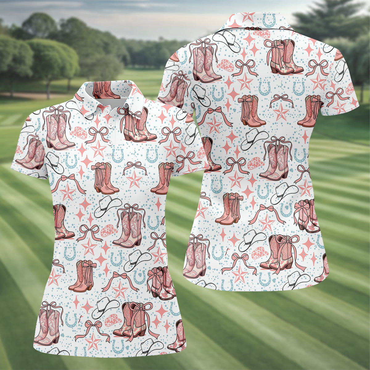 Coquette Cowgirl Boots Pink Western Womens Golf Shirts, Retro Golf Shirt, Ladies Golf Polos