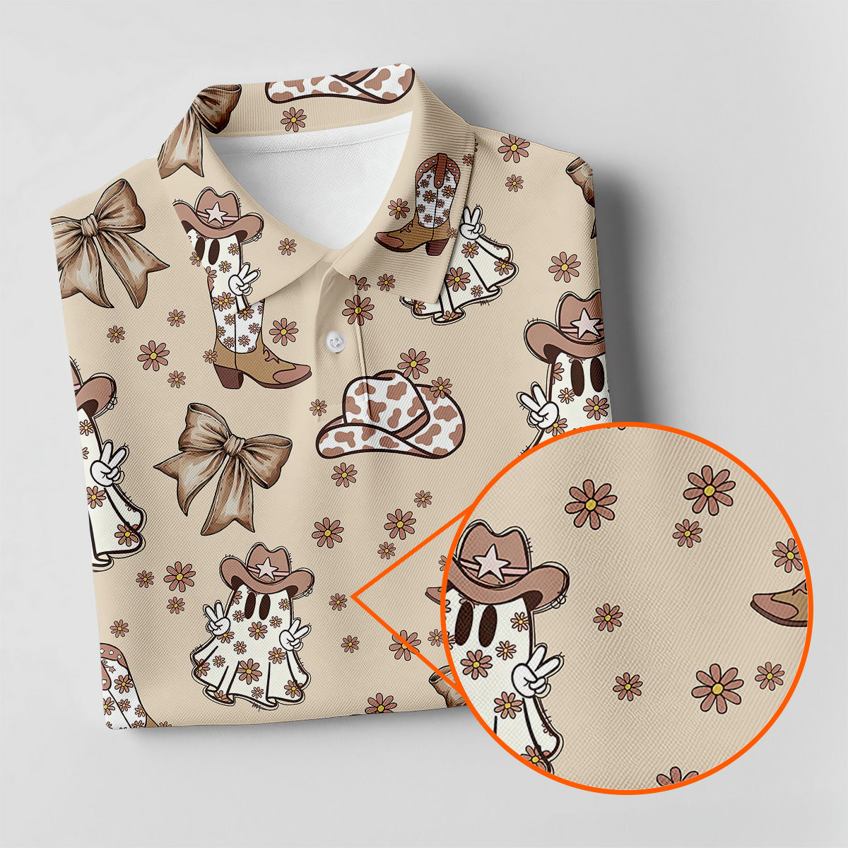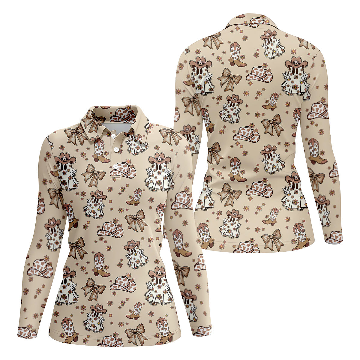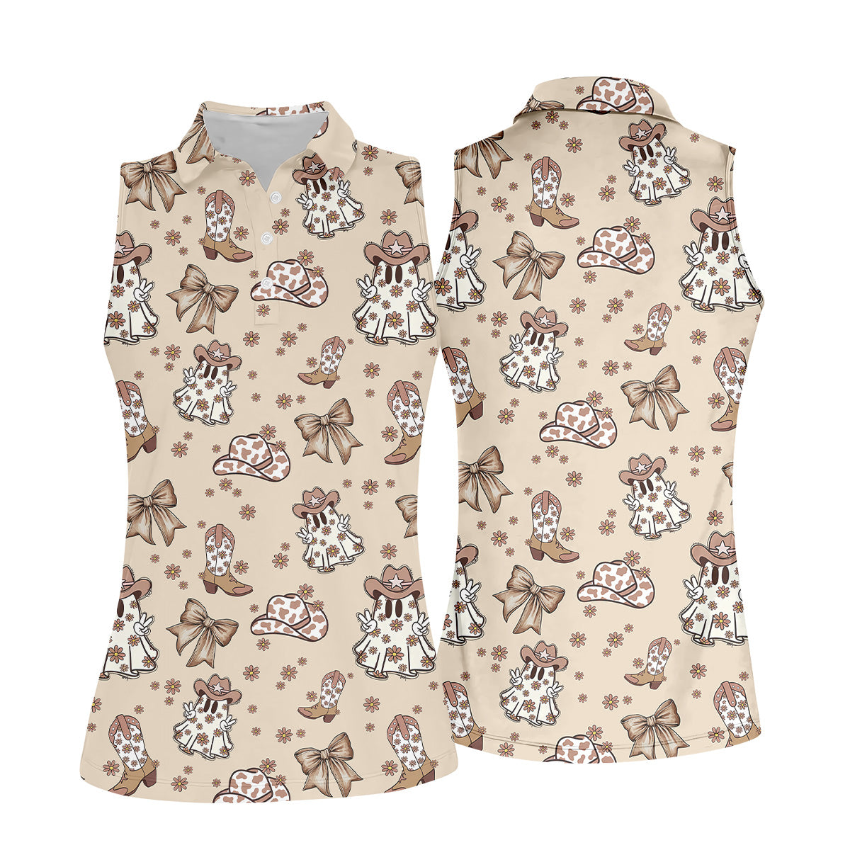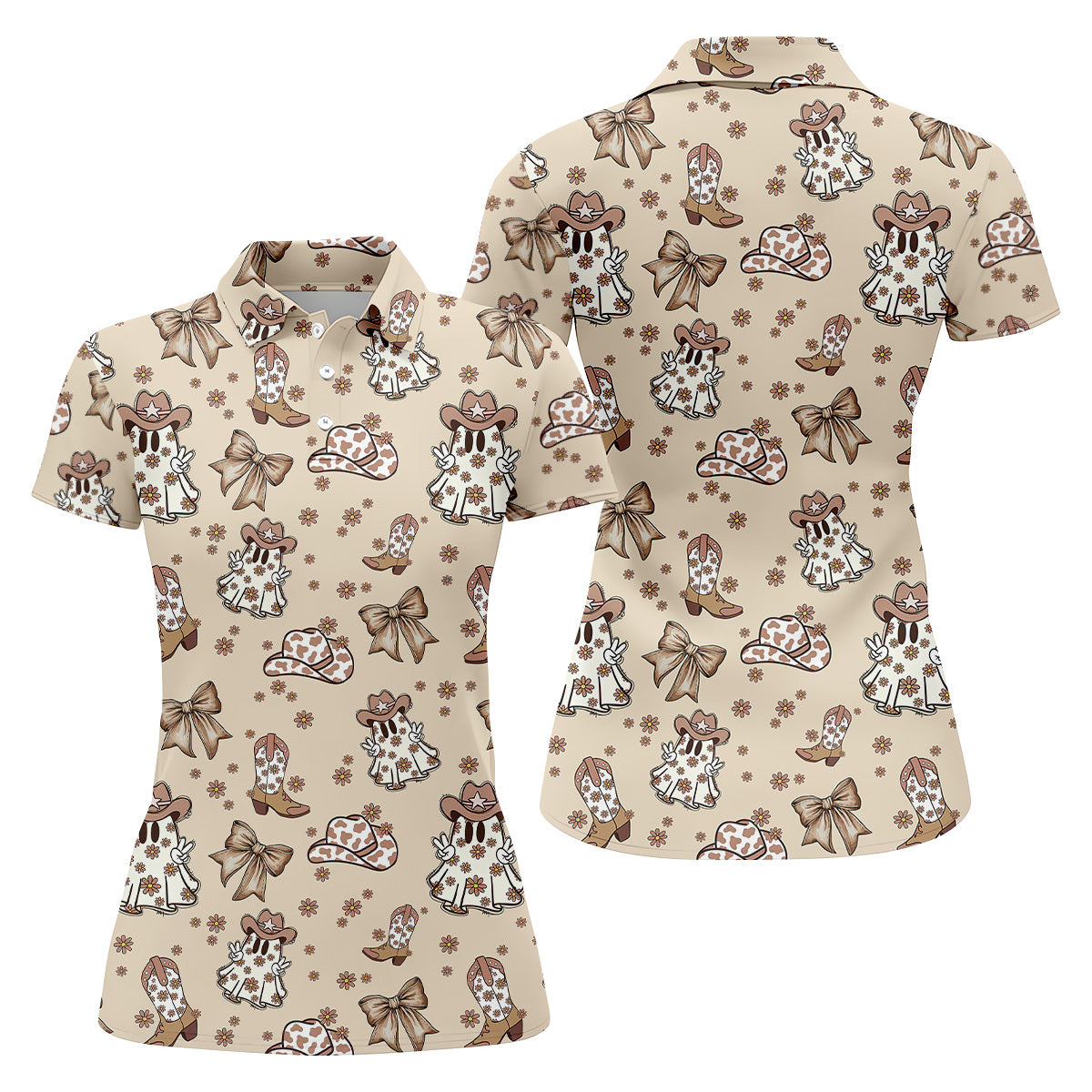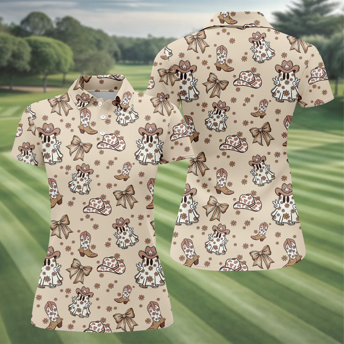 Coquette Halloween Cowboy Ghost Fun Womens Golf Shirts, Ladies Sleeveless Polo, Ladies Golf Shirts