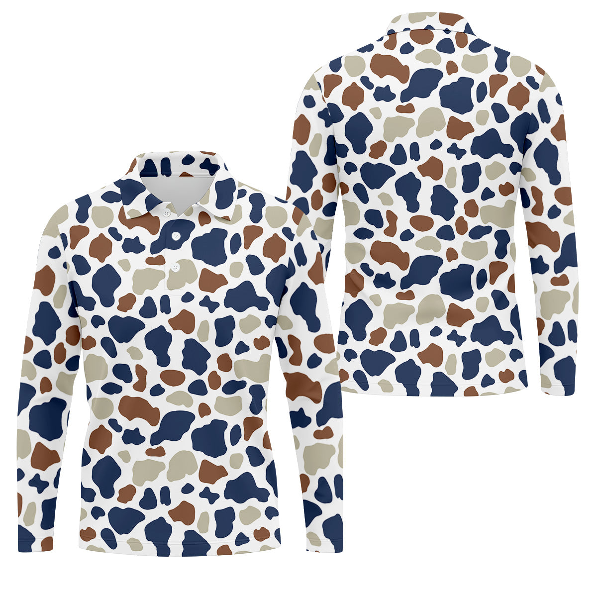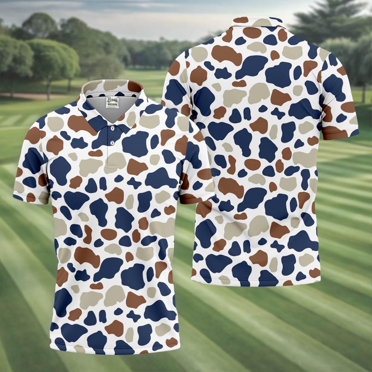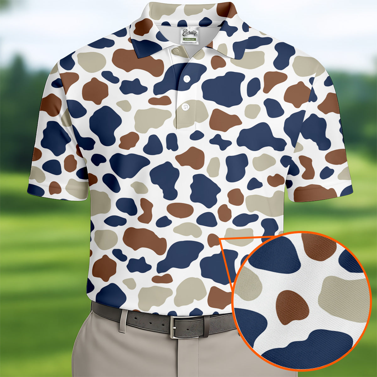Cow Print Pattern Golf Polo Shirt, Fun Golf Shirts For Men, Polo Shirts For Men, Golfing Apparel