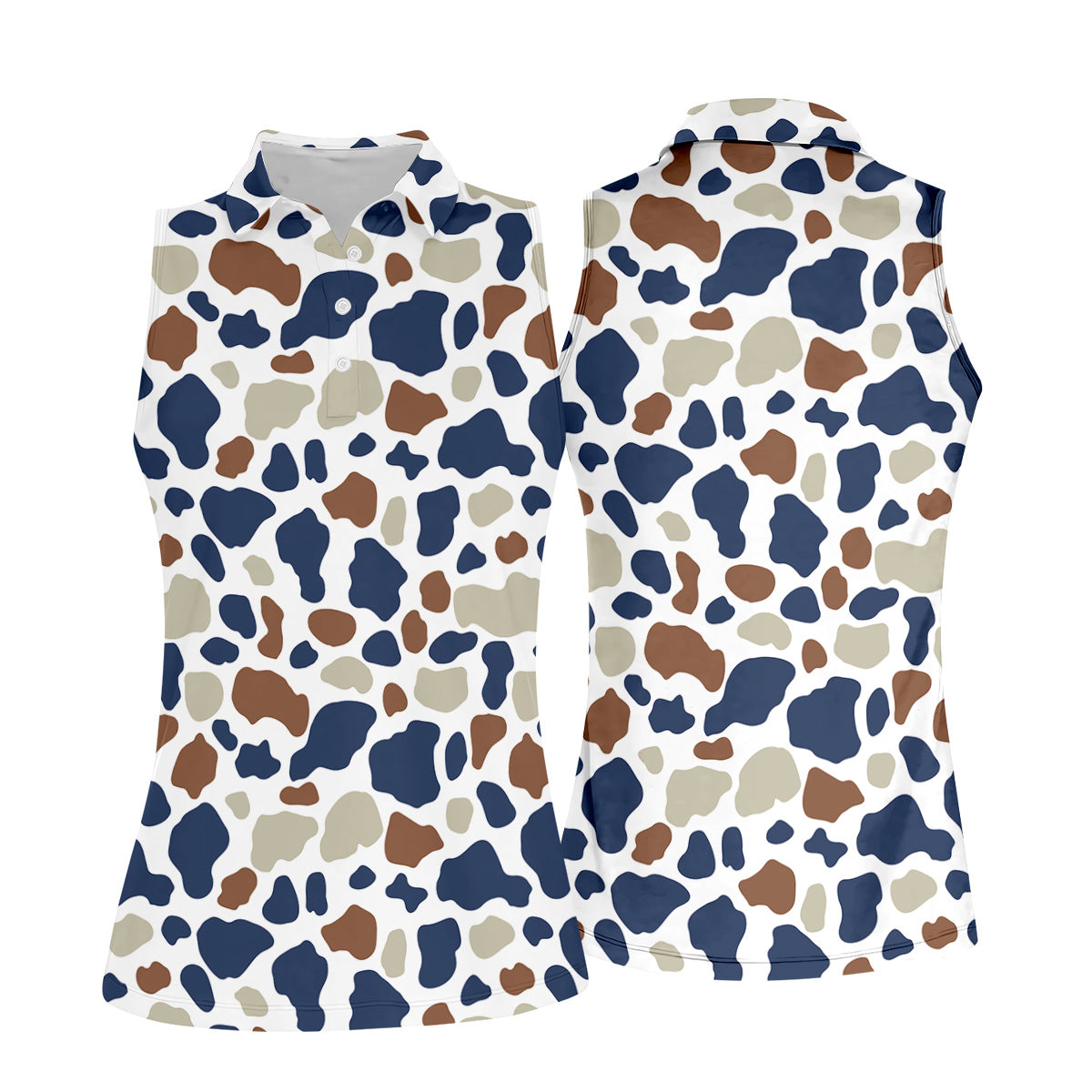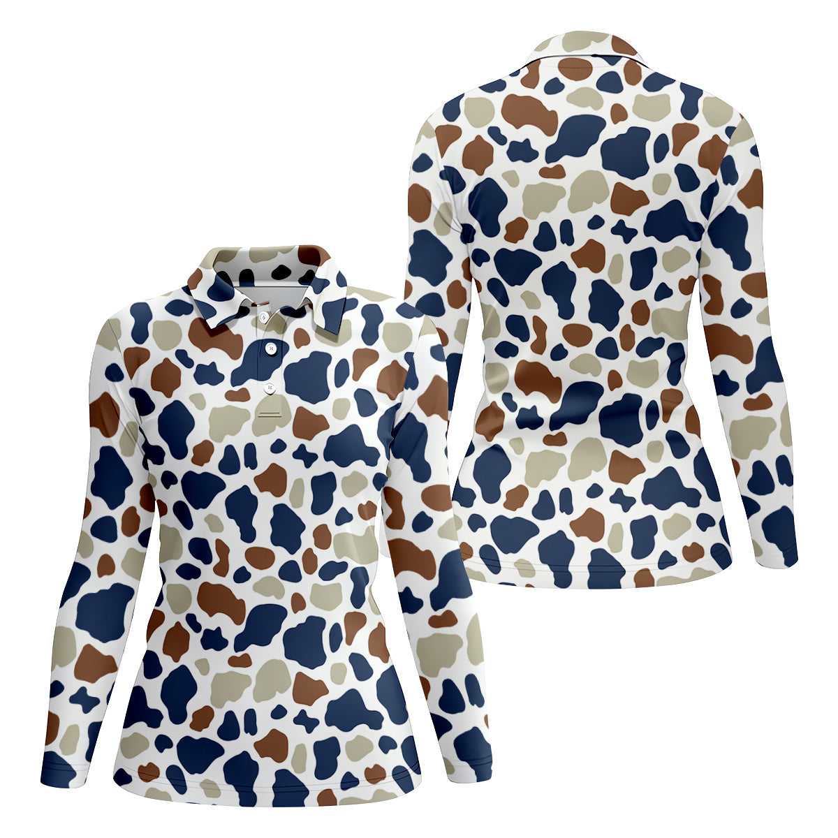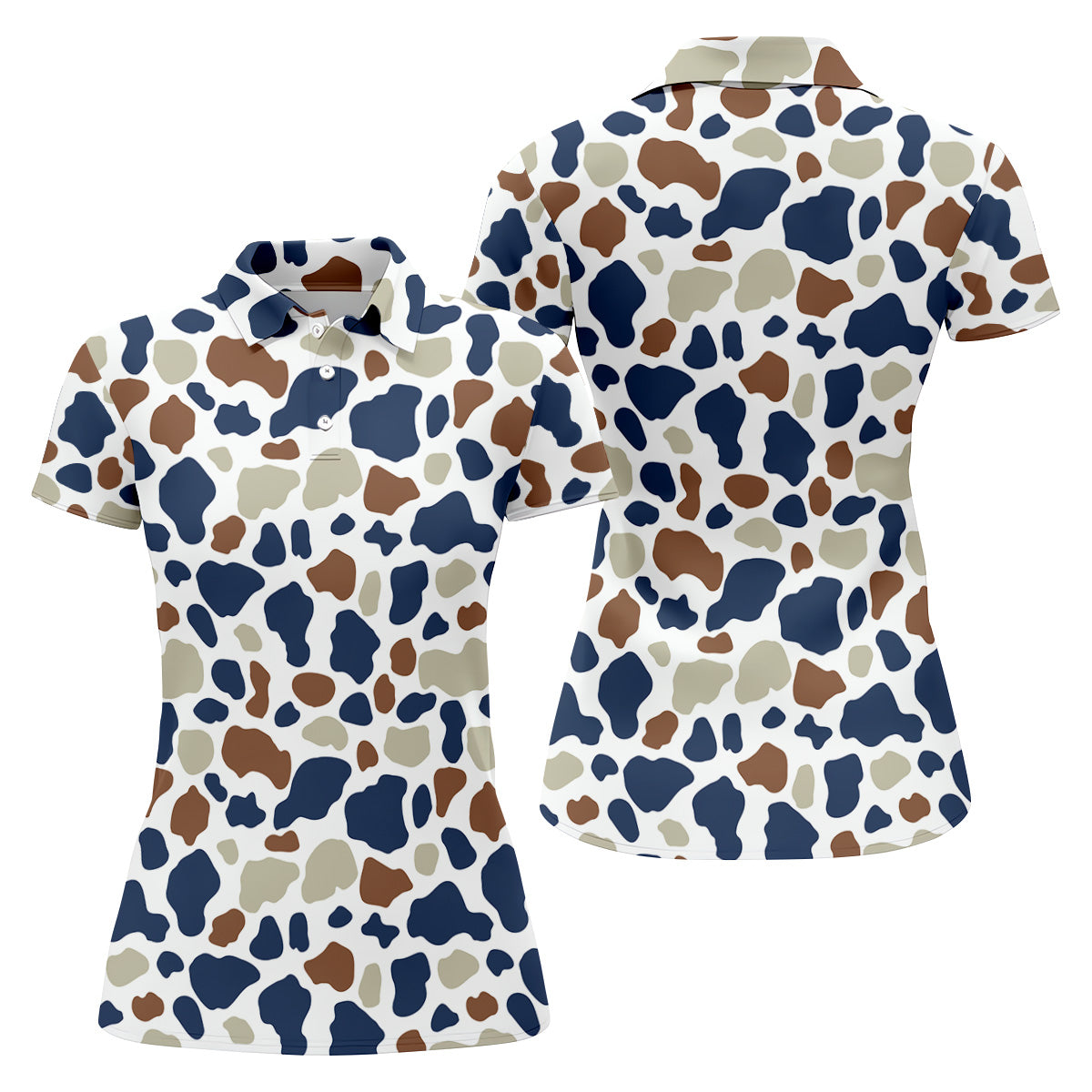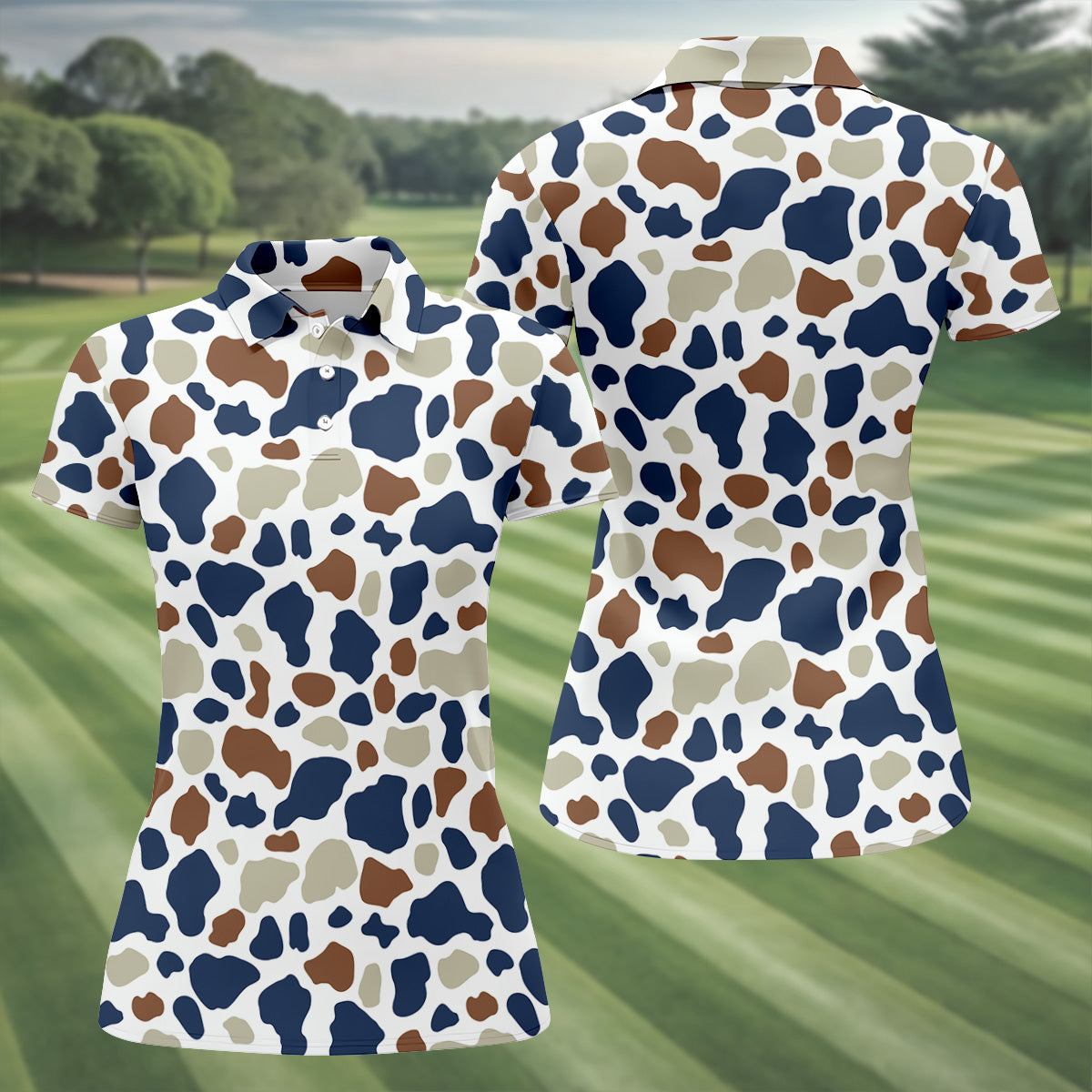 Cow Print Pattern Golf Polo Shirt, Fun Women's Golf Shirts, Ladies Golf Polos, Golfing Apparel