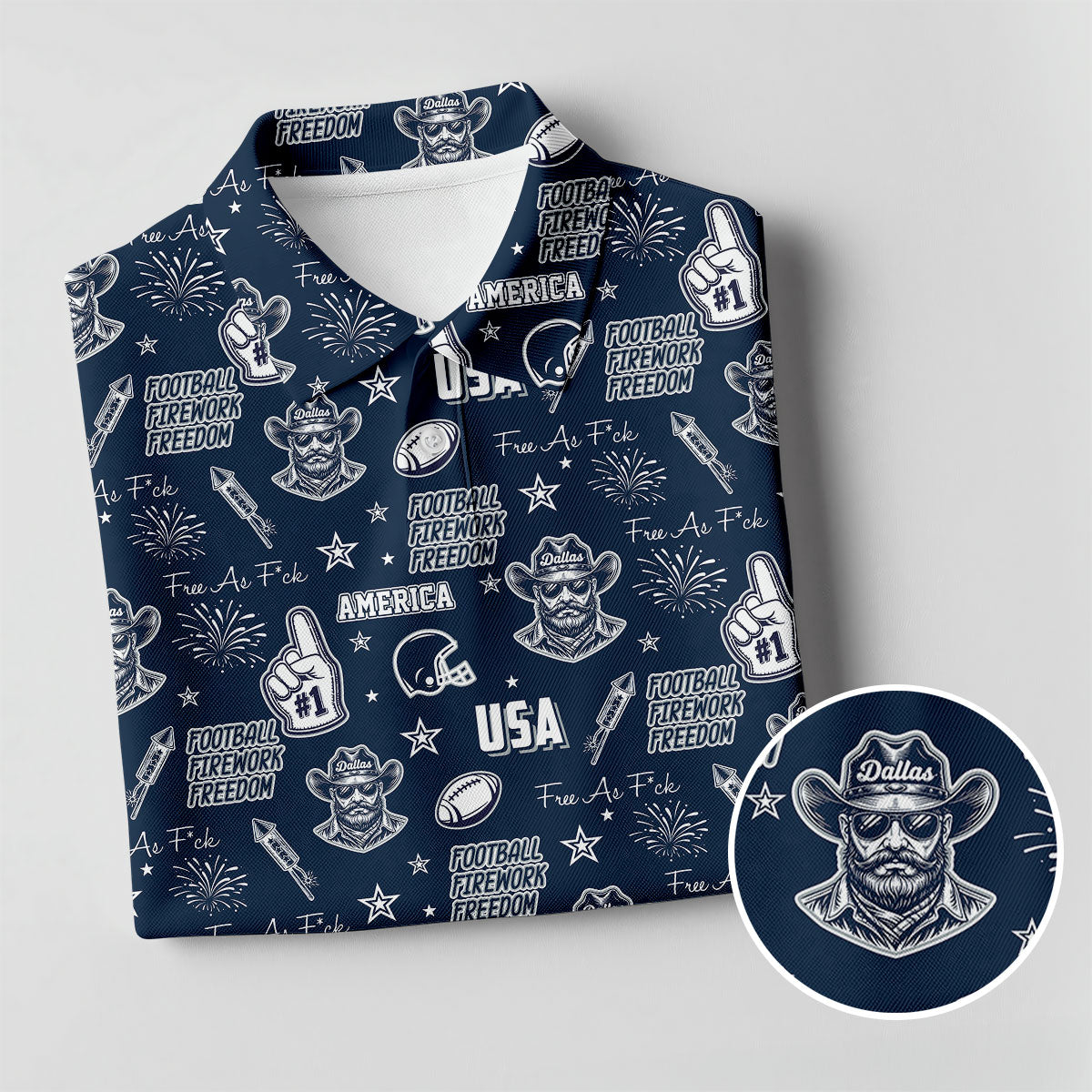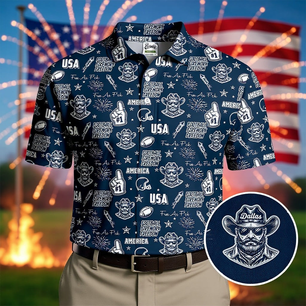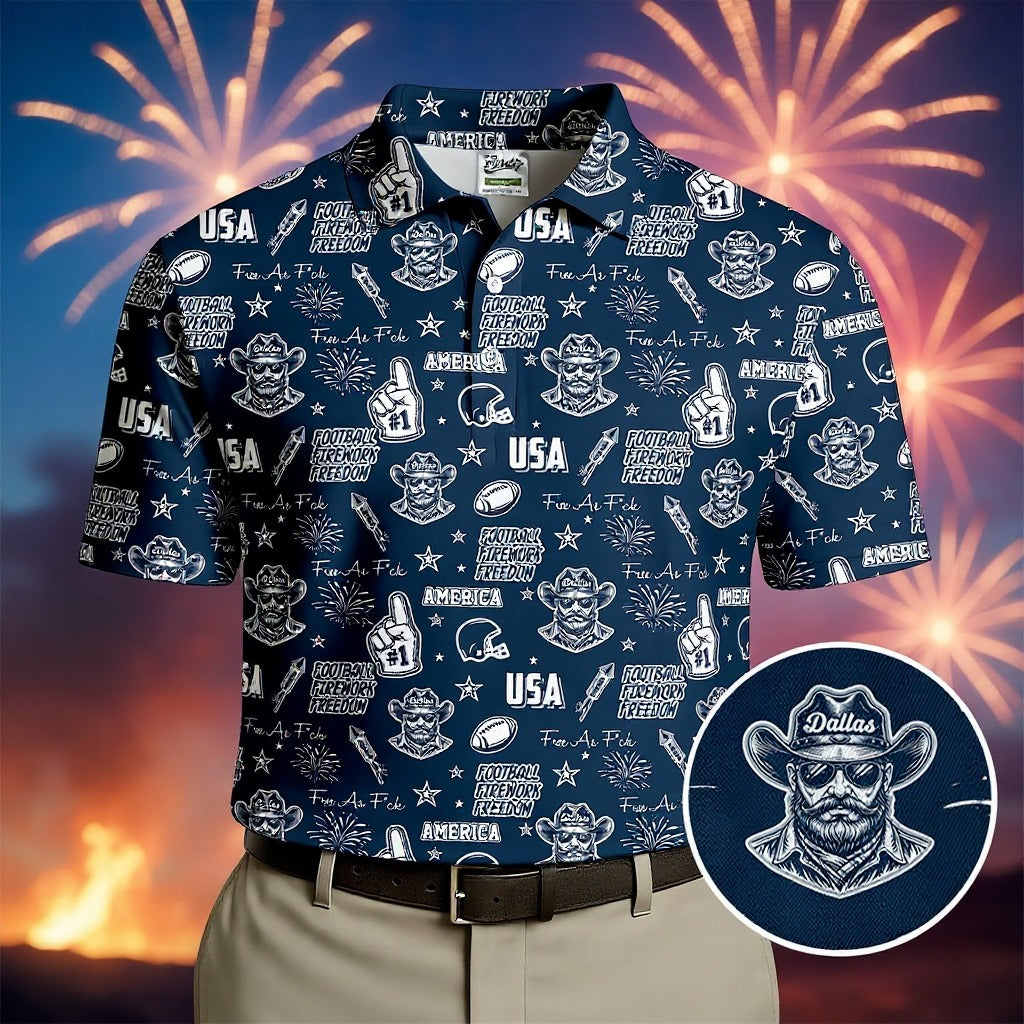 Cowboy Football Team Navy Blue And White Sport Polo, American Football League Gift Ideas For Football Fans