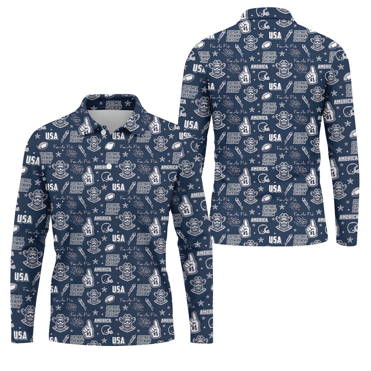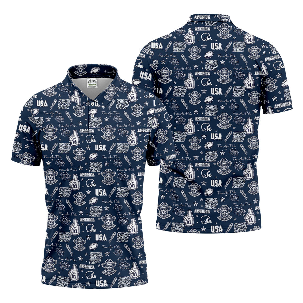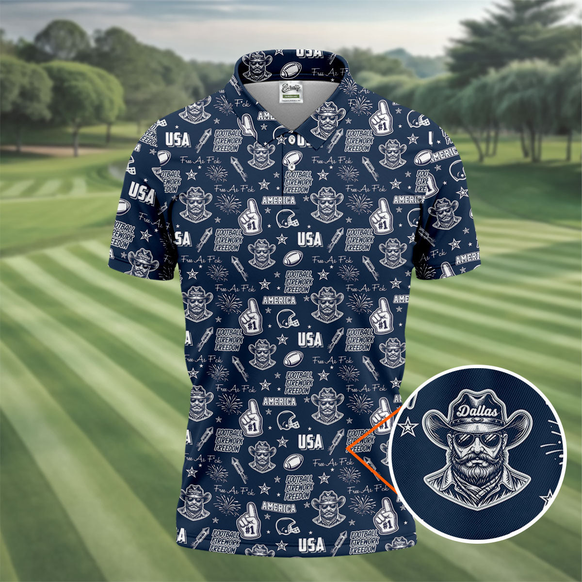 Cowboy Football Team Navy Blue And White Sport Polo, American Football League Gift Ideas For Football Fans