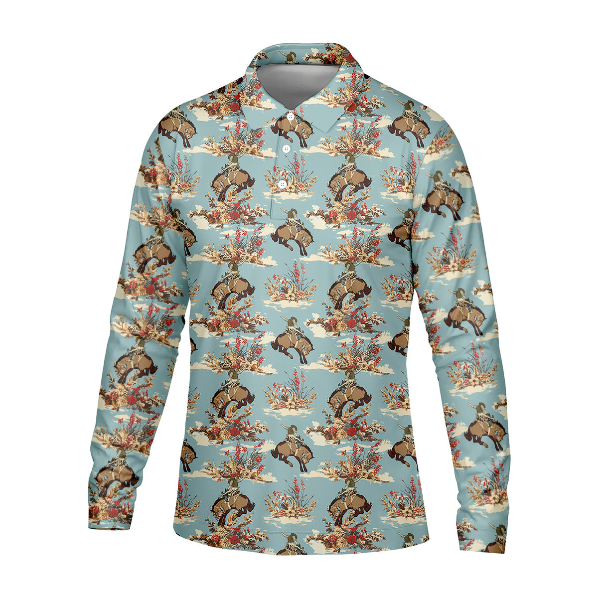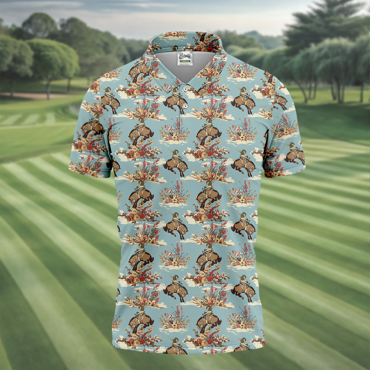 Meet the Cowboy Pattern Vintage Blue Golf Shirt, Golf Tops For Men, Golf Polo Shirt, Golfing Apparel – a shirt so bold it makes argyle cry in the corner. Designed for golfers who'd rather make a fashion statement than follow dress codes, this polo is your ticket to turning heads, raising eyebrows, and maybe distracting your buddies just enough to win a few holes. (We’re not saying it’s cheating... we’re saying it’s strategy.)