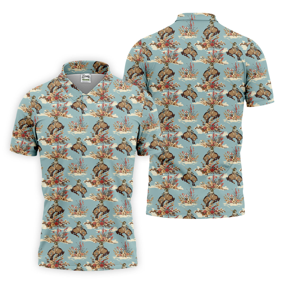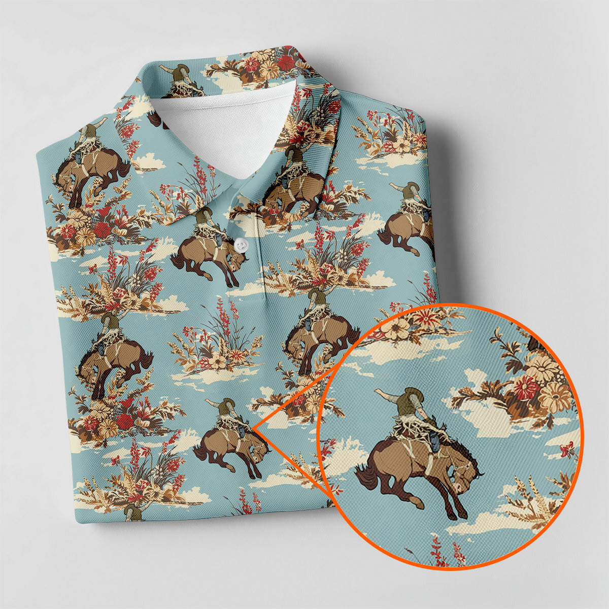 Cowboy Pattern Vintage Blue Golf Shirt, Golf Tops For Men, Golf Polo Shirt, Golfing Apparel