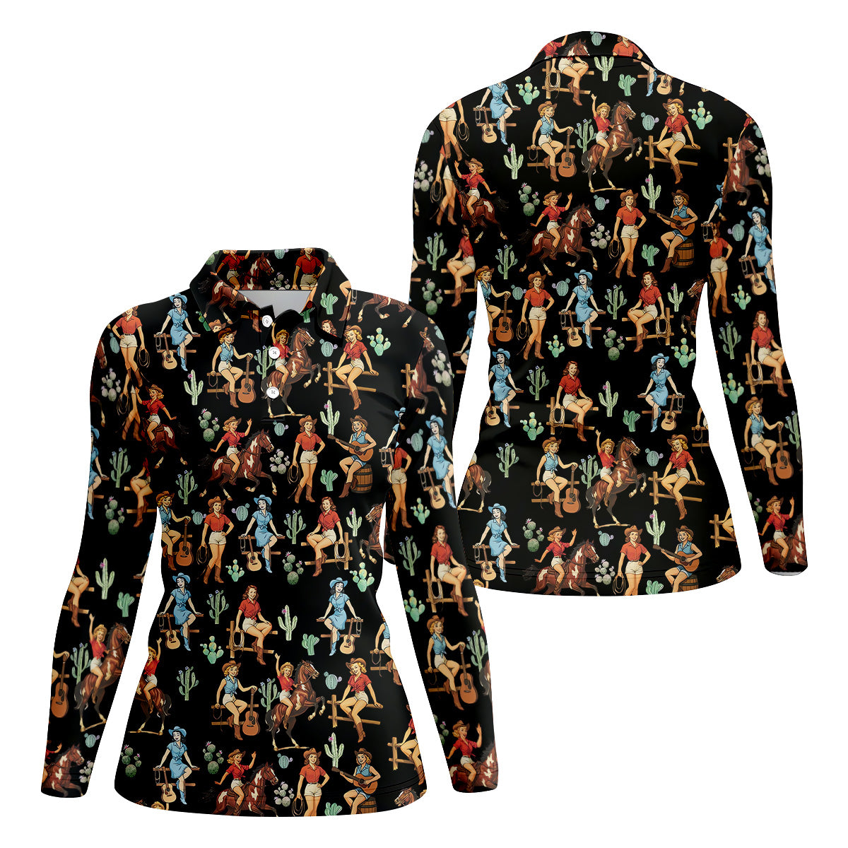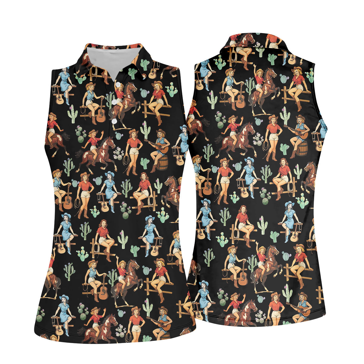 Cowgirl Sleeveless Womens Golf Shirts, Western Golf Shirts Women, Black Golf Shirt, Women Golf Top