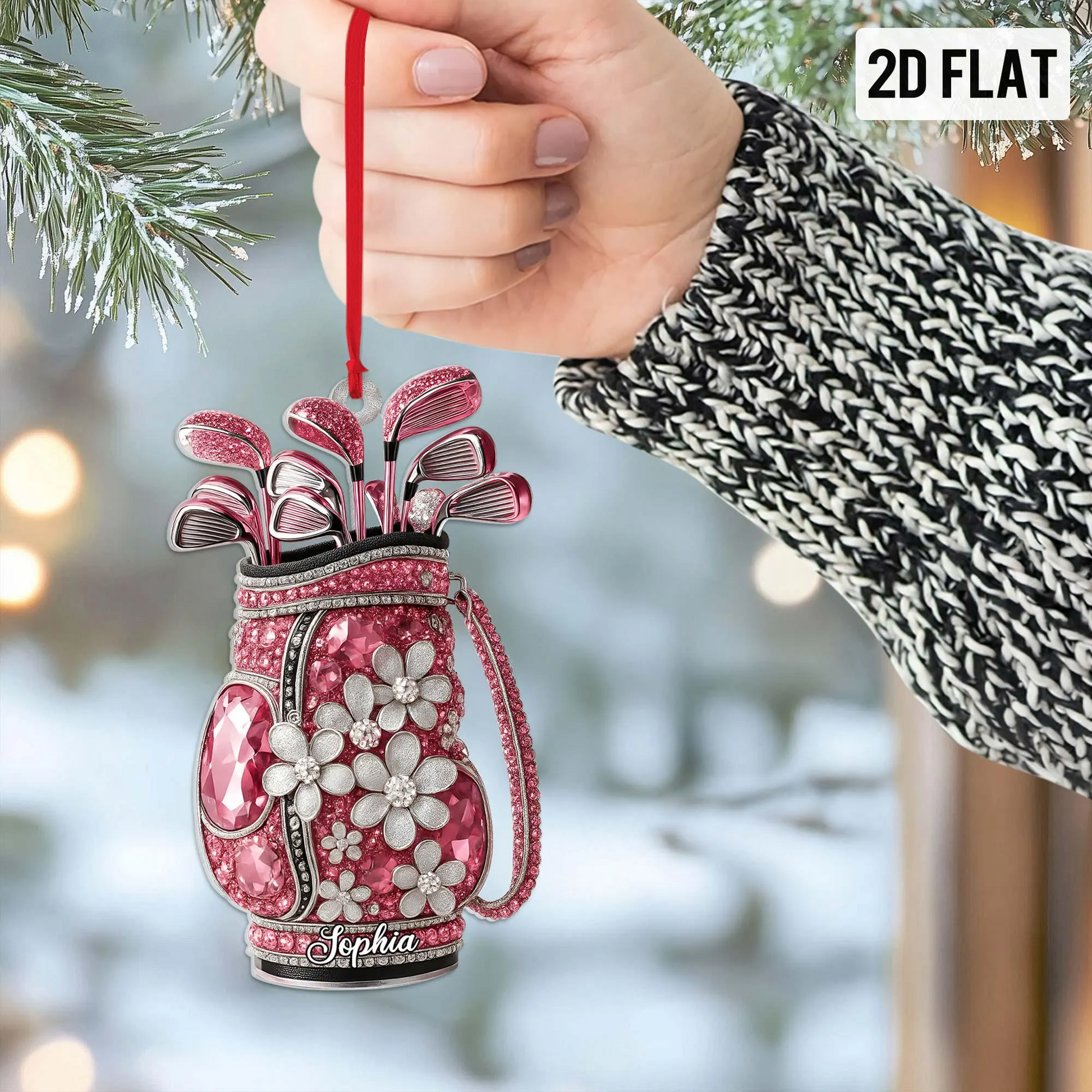 Crystal Print Pink Golf Bag Acrylic Ornament, Golf Christmas Ornaments, Christmas Golf Gift, Golf Decor