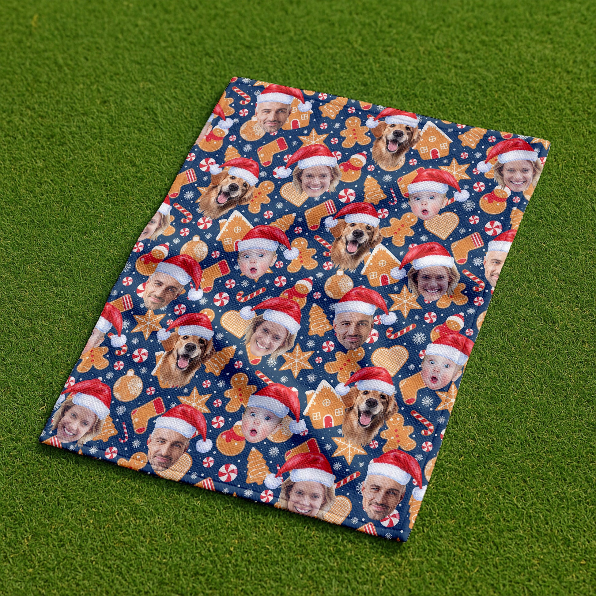 Custom Face Christmas Sweets Navy Golf Towel, Christmas Golf Gift, Golf Gift Idea