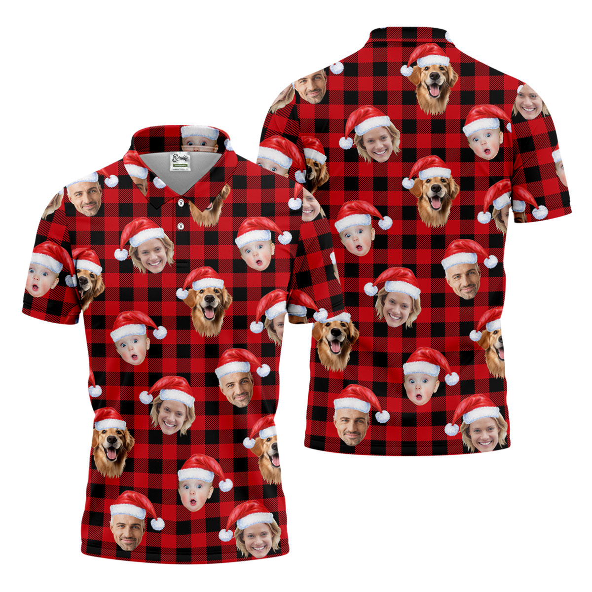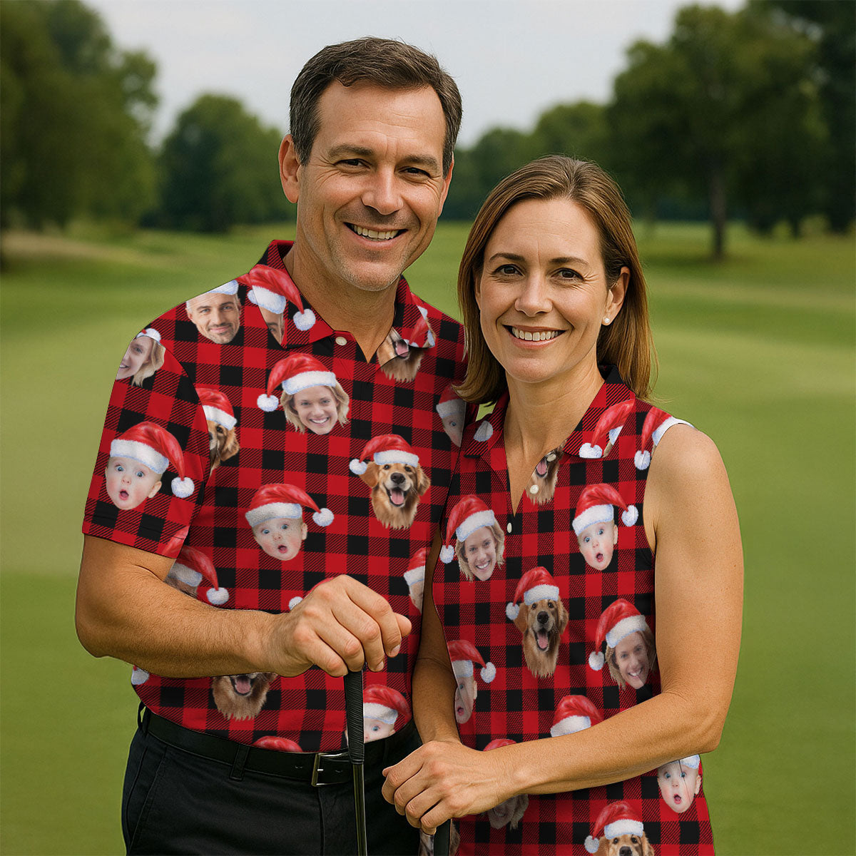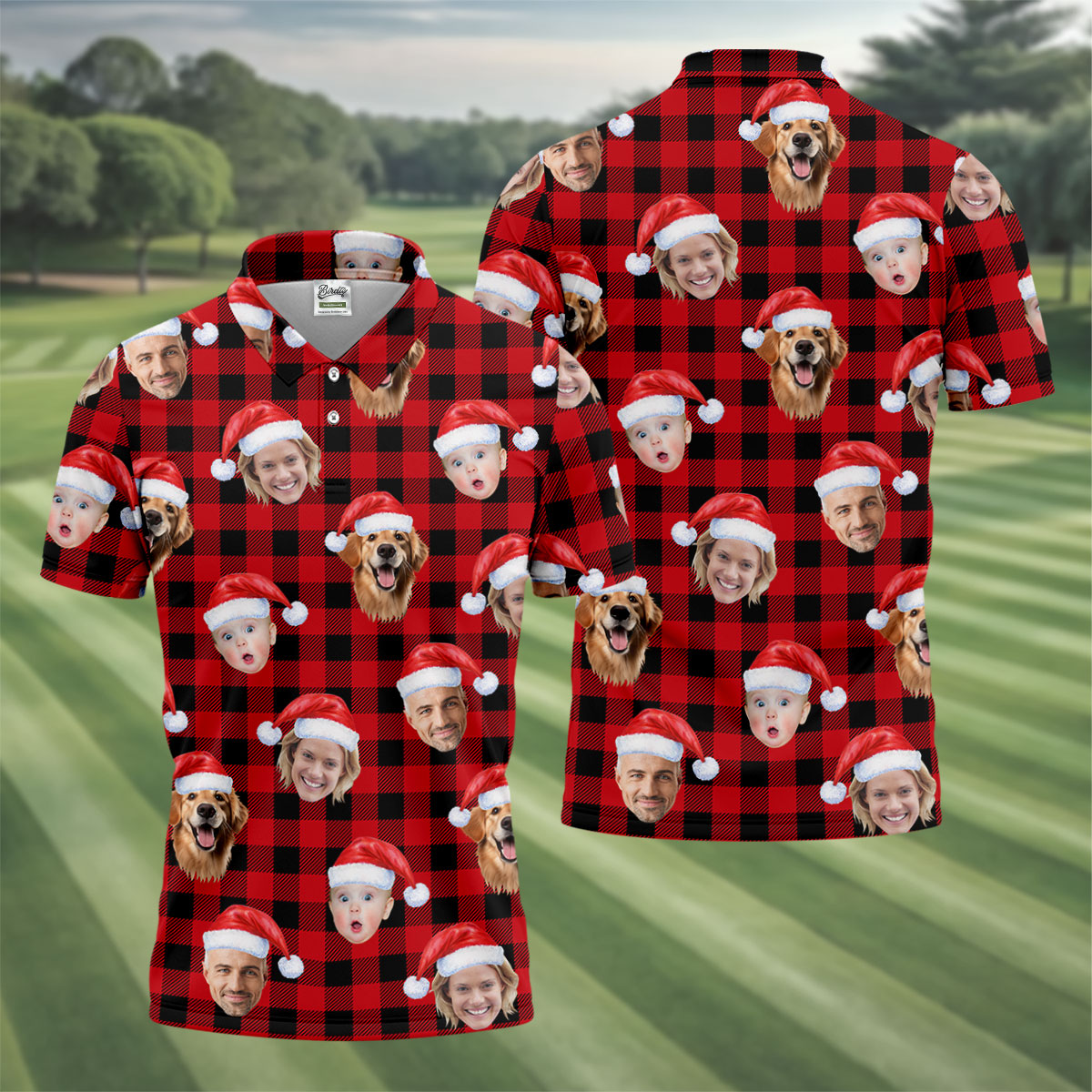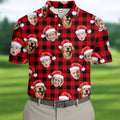 Custom Face Black And Red Checkered Christmas Golf Shirt, Golf Gift For Men, Golf Shirts For Men