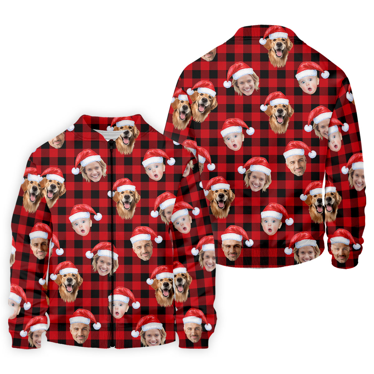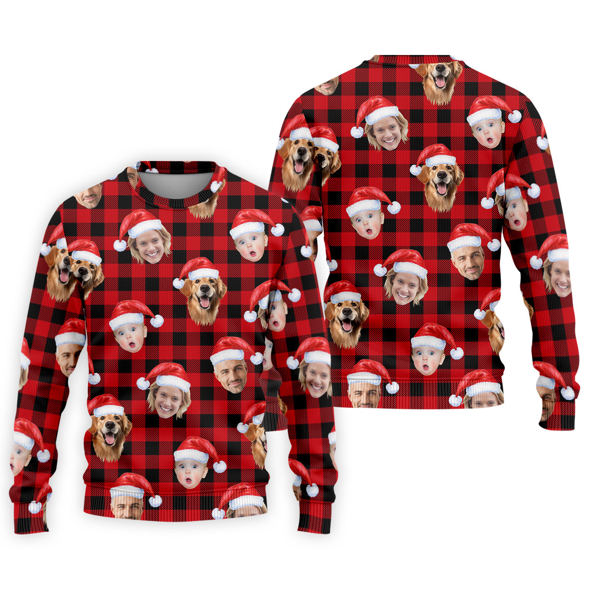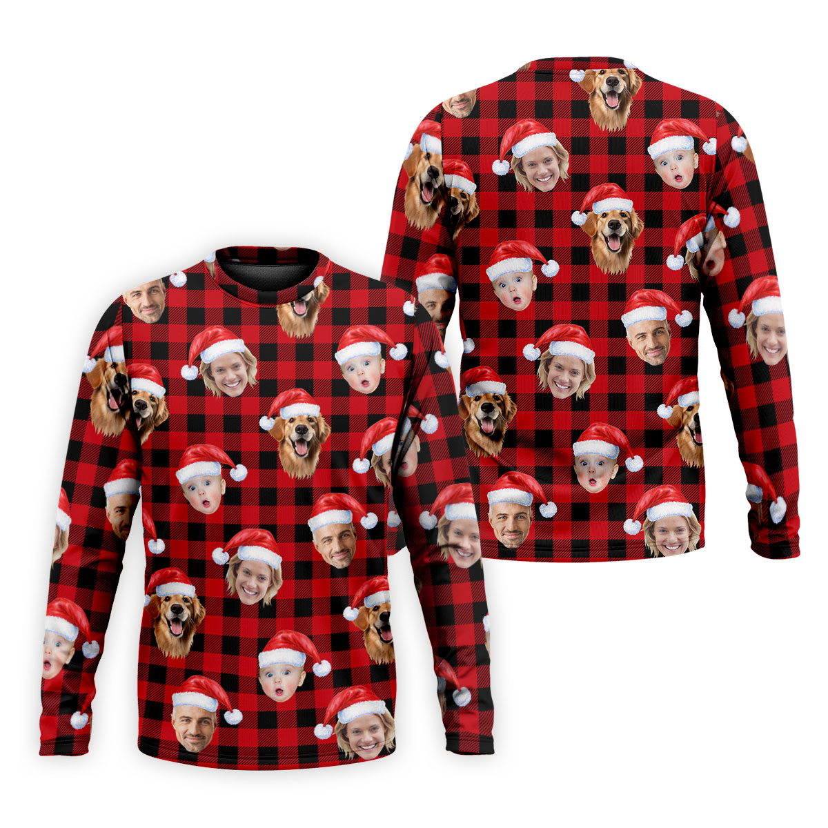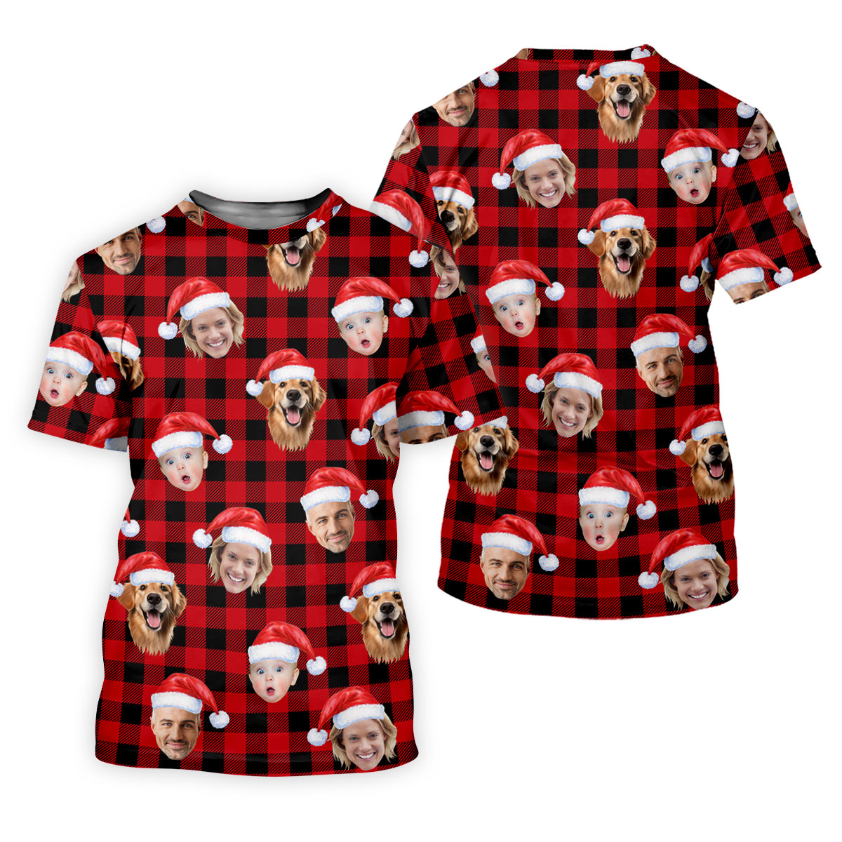 Custom Face Black And Red Checkered Christmas Golf Shirt, Golf Gift For Men, Golf Shirts For Men