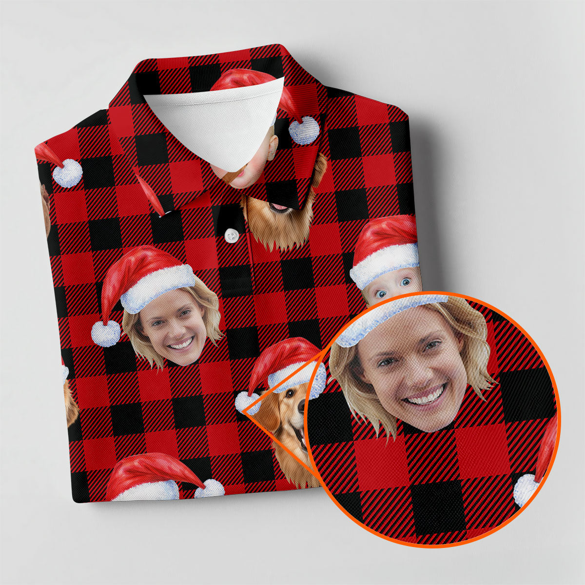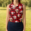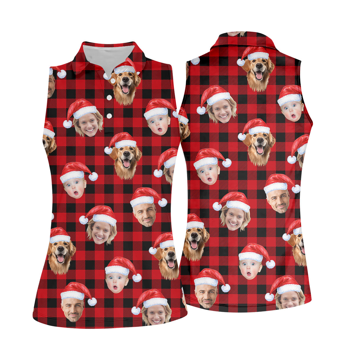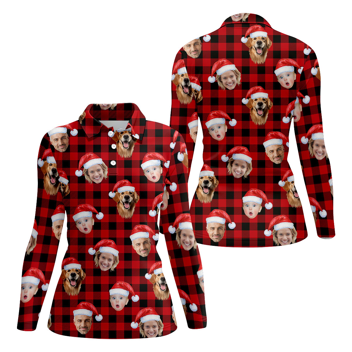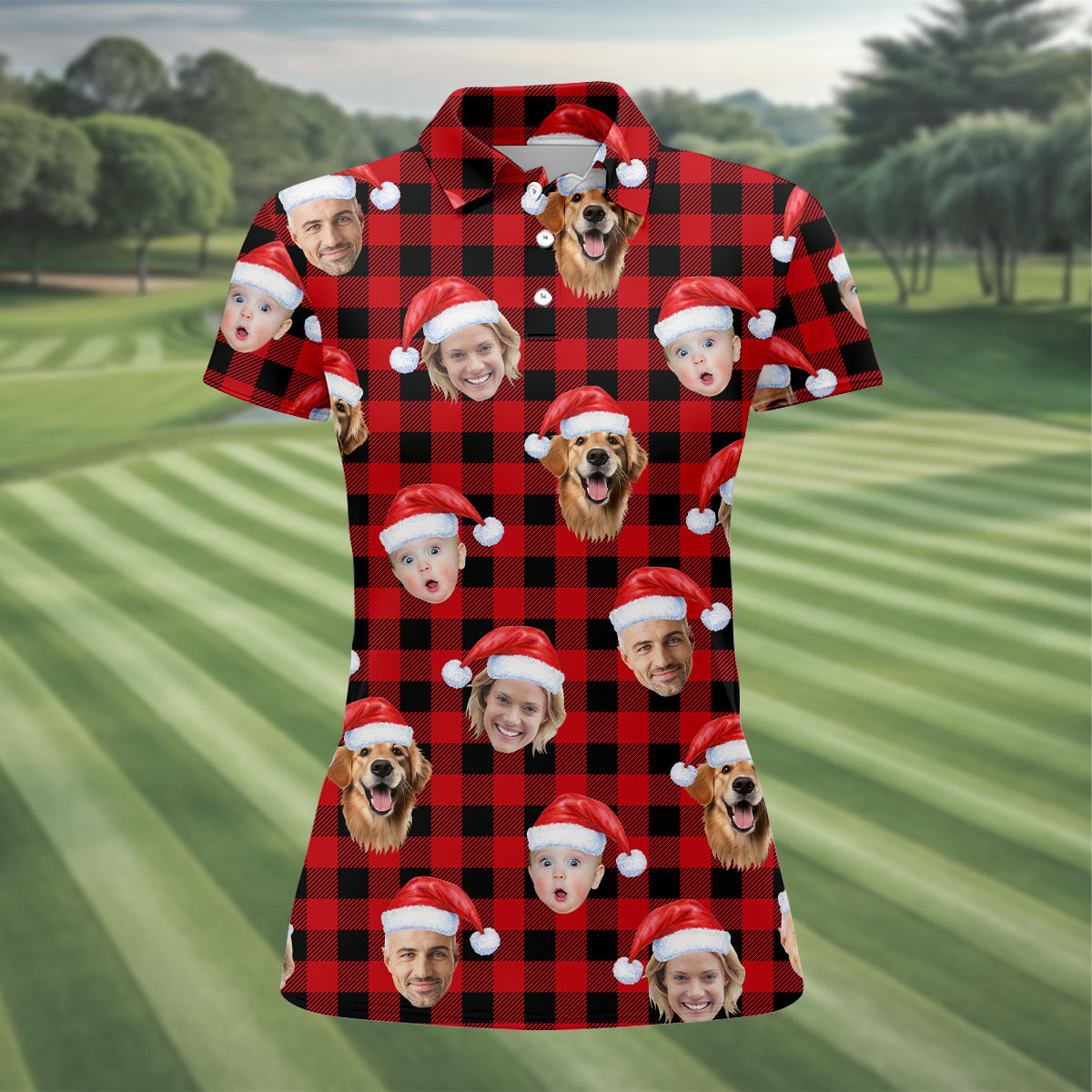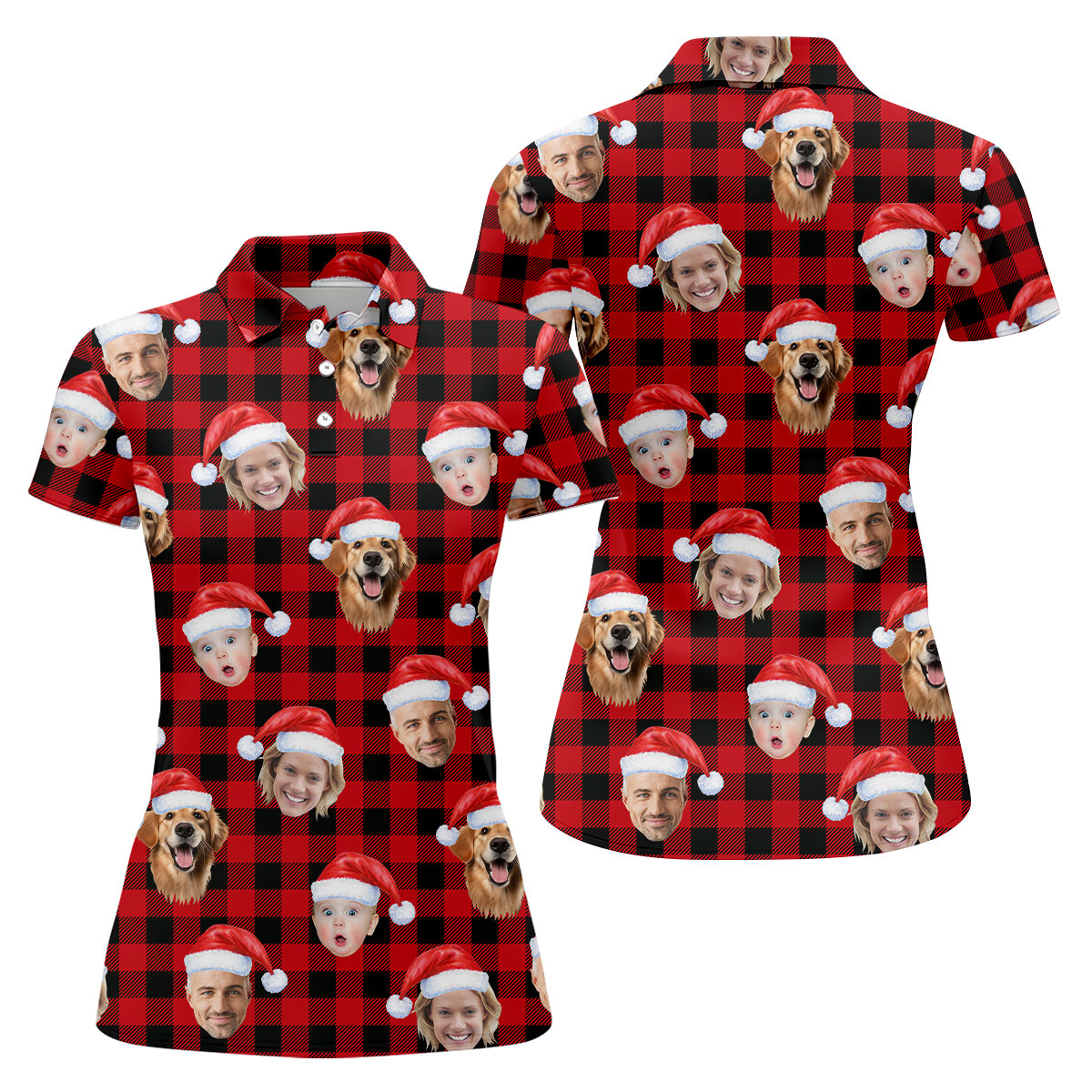 Custom Face Black And Red Checkered Christmas Golf Shirt, Ladies Golf Tops, Golf Gifts For Women