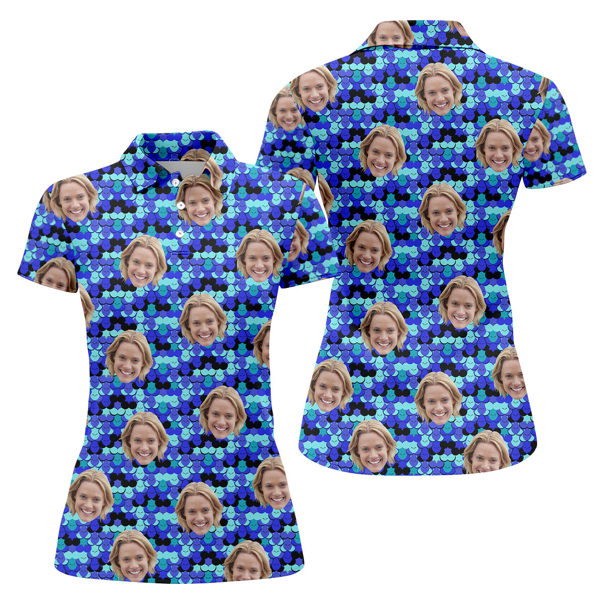 Meet the Custom Face Blue Fun Women's Golf Shirts, Ladies Sleeveless Polo, Golfing Apparel – a shirt so bold it makes argyle cry in the corner. Designed for golfers who'd rather make a fashion statement than follow dress codes, this polo is your ticket to turning heads, raising eyebrows, and maybe distracting your buddies just enough to win a few holes. (We’re not saying it’s cheating... we’re saying it’s strategy.)