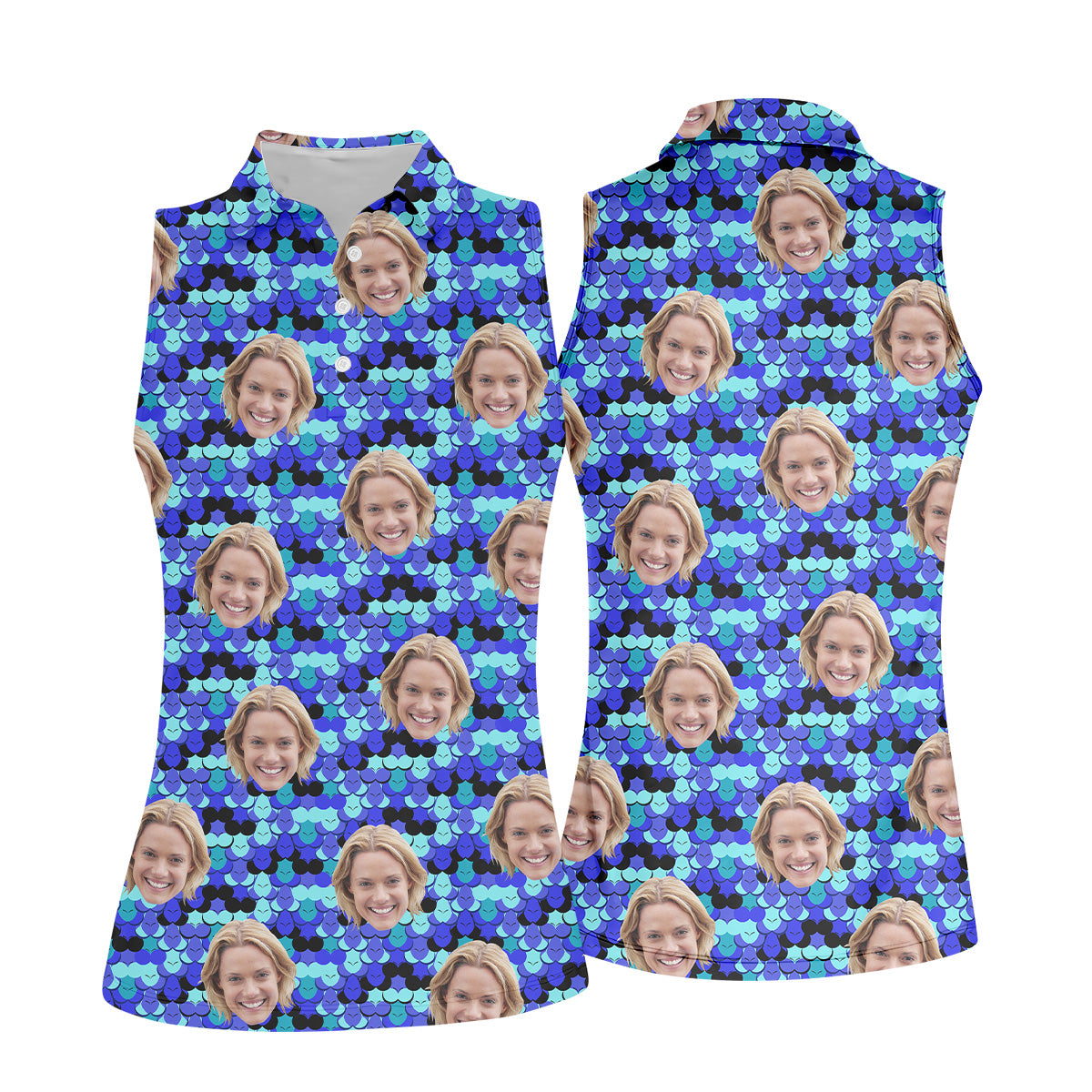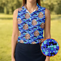 Custom Face Blue Fun Women's Golf Shirts, Ladies Sleeveless Polo, Golfing Apparel