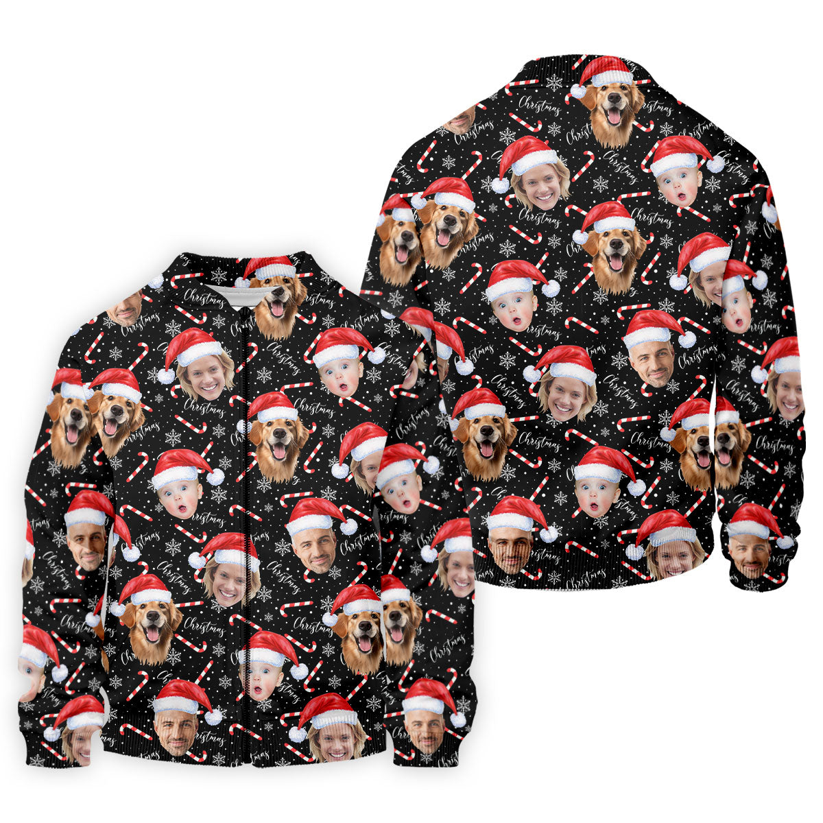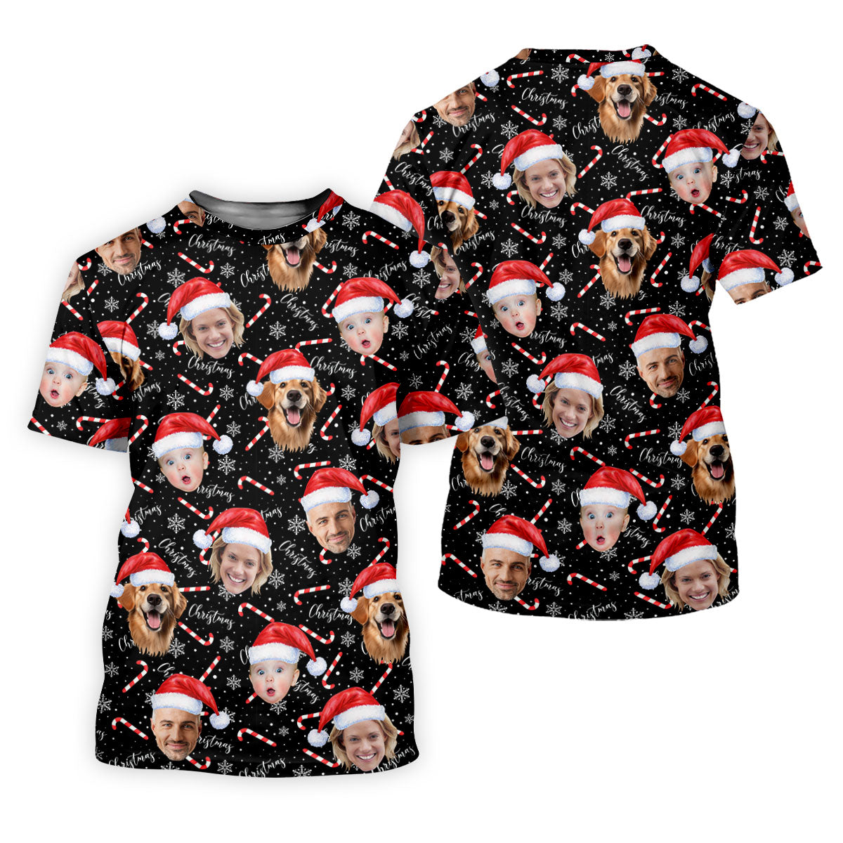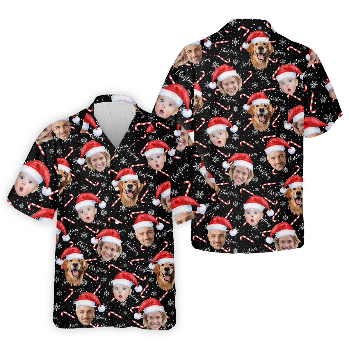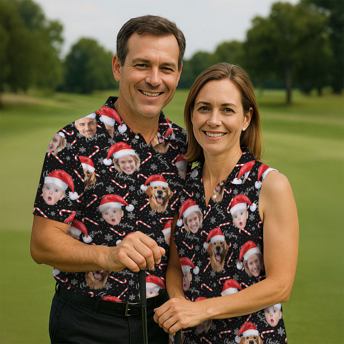 Custom Face Candy Cane Christmas Black Golf Shirt, Christmas Golf Shirt, Golf Gift For Men, Golf Shirts For Men