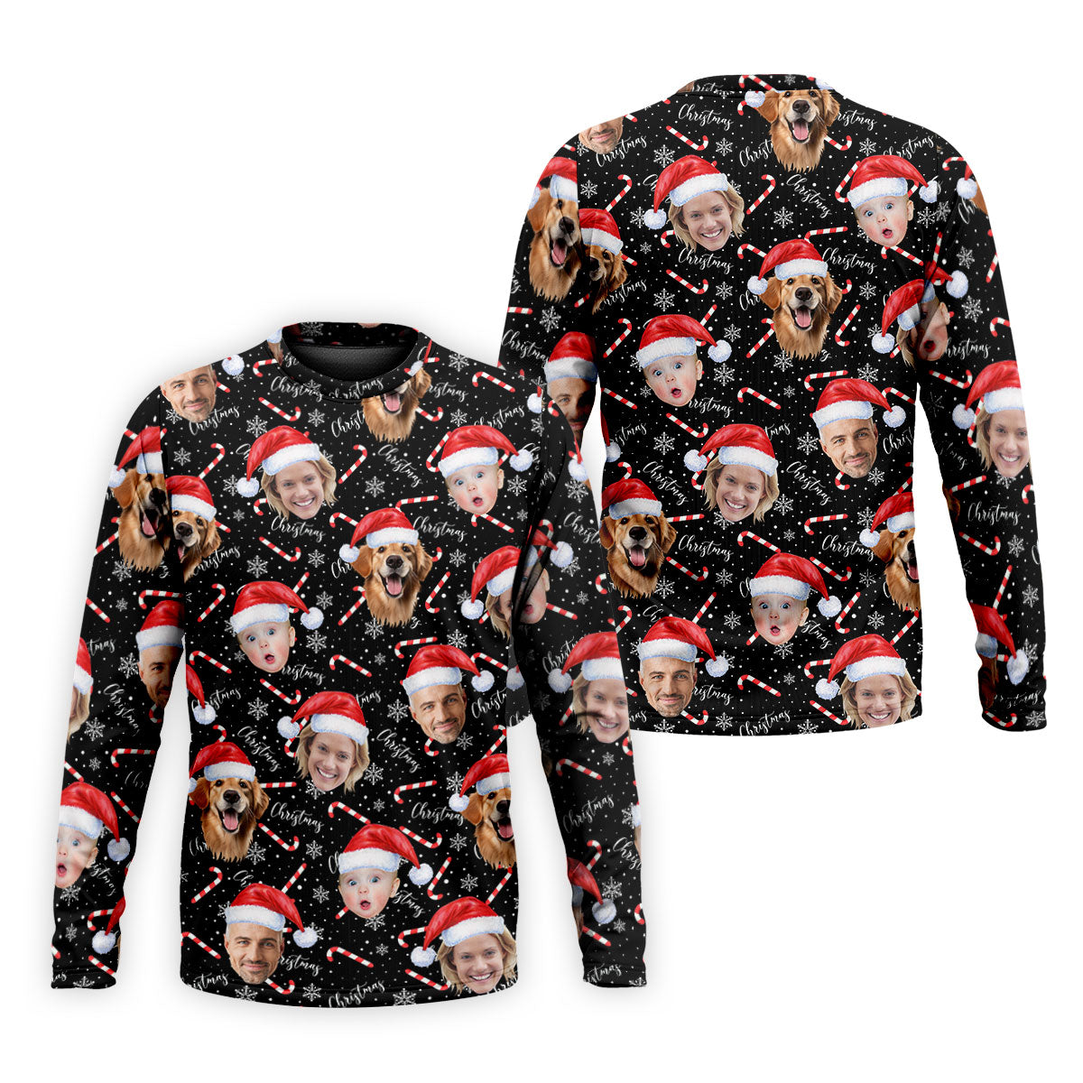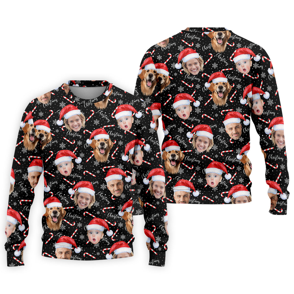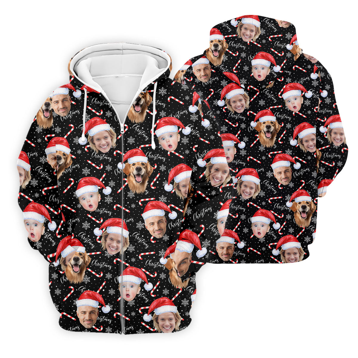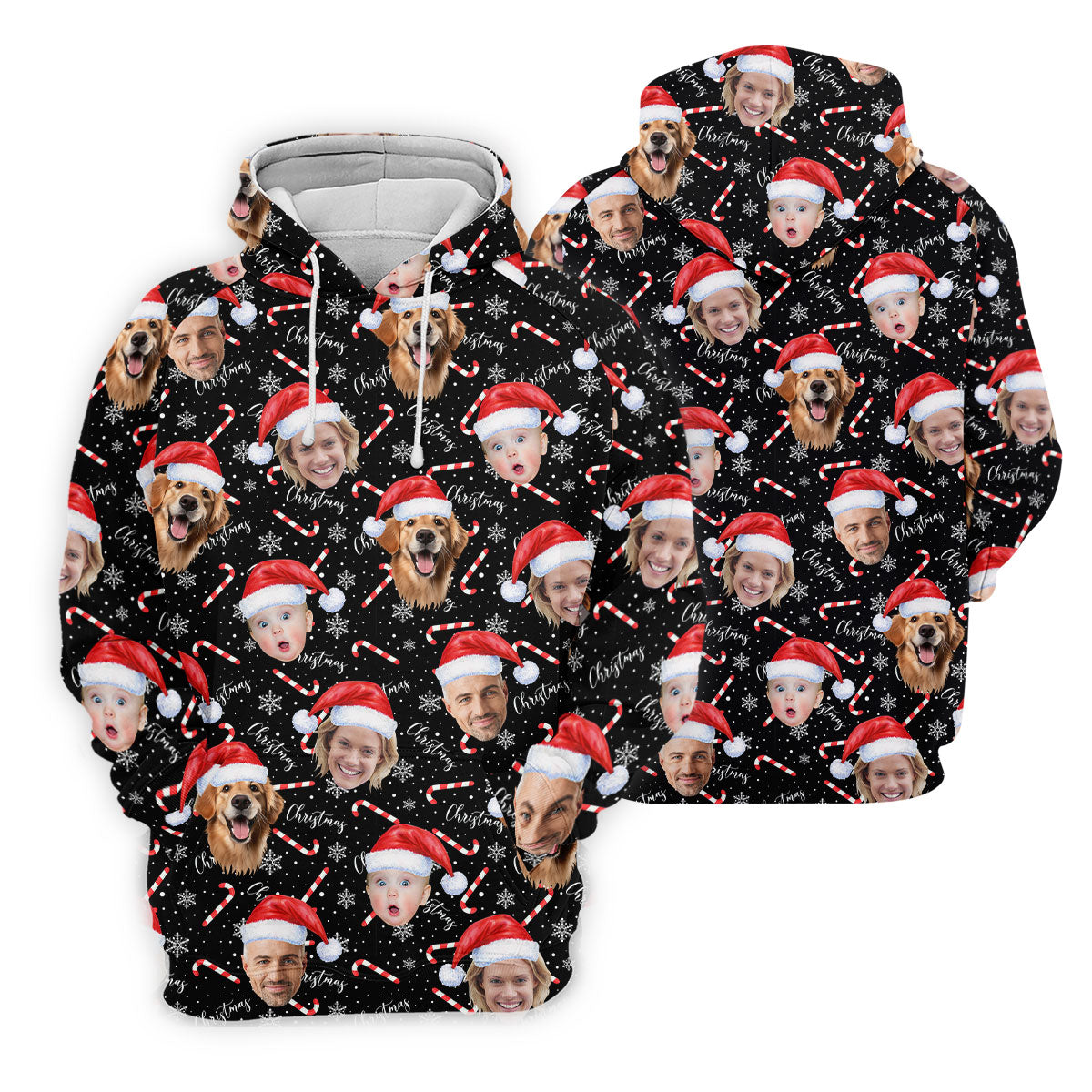 Custom Face Candy Cane Christmas Black Golf Shirt, Christmas Golf Shirt, Golf Gift For Men, Golf Shirts For Men