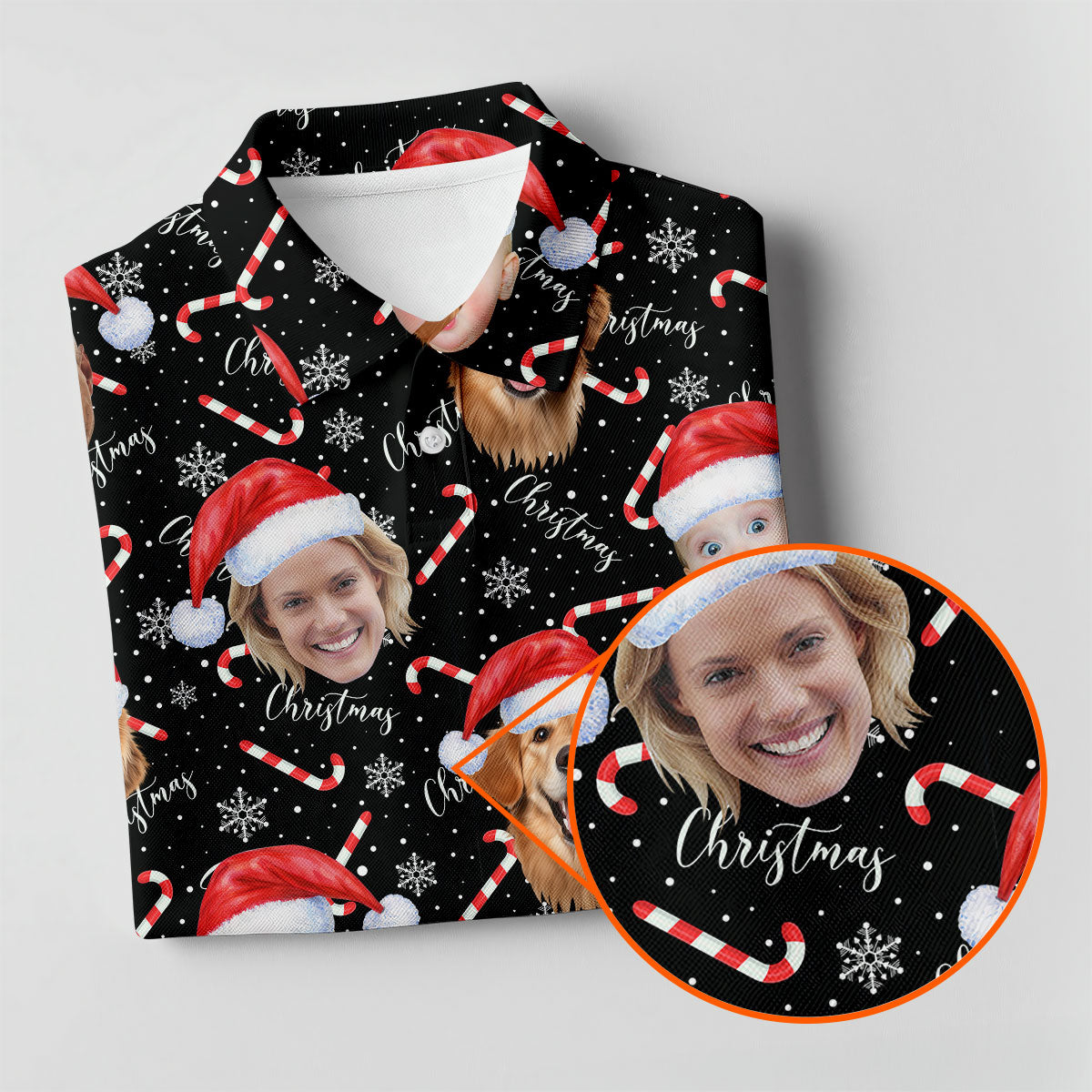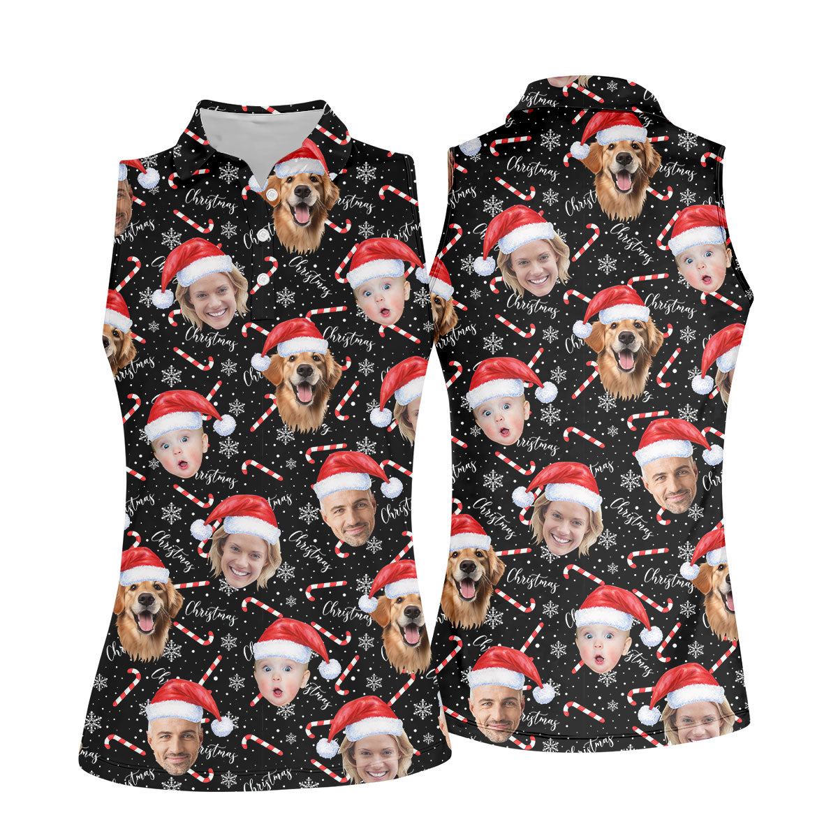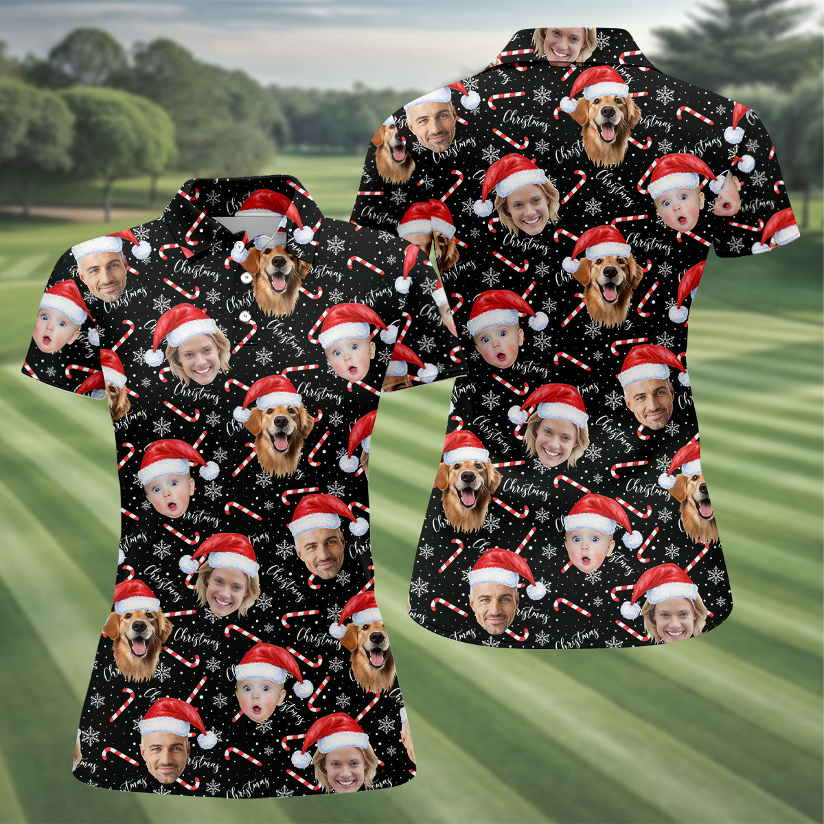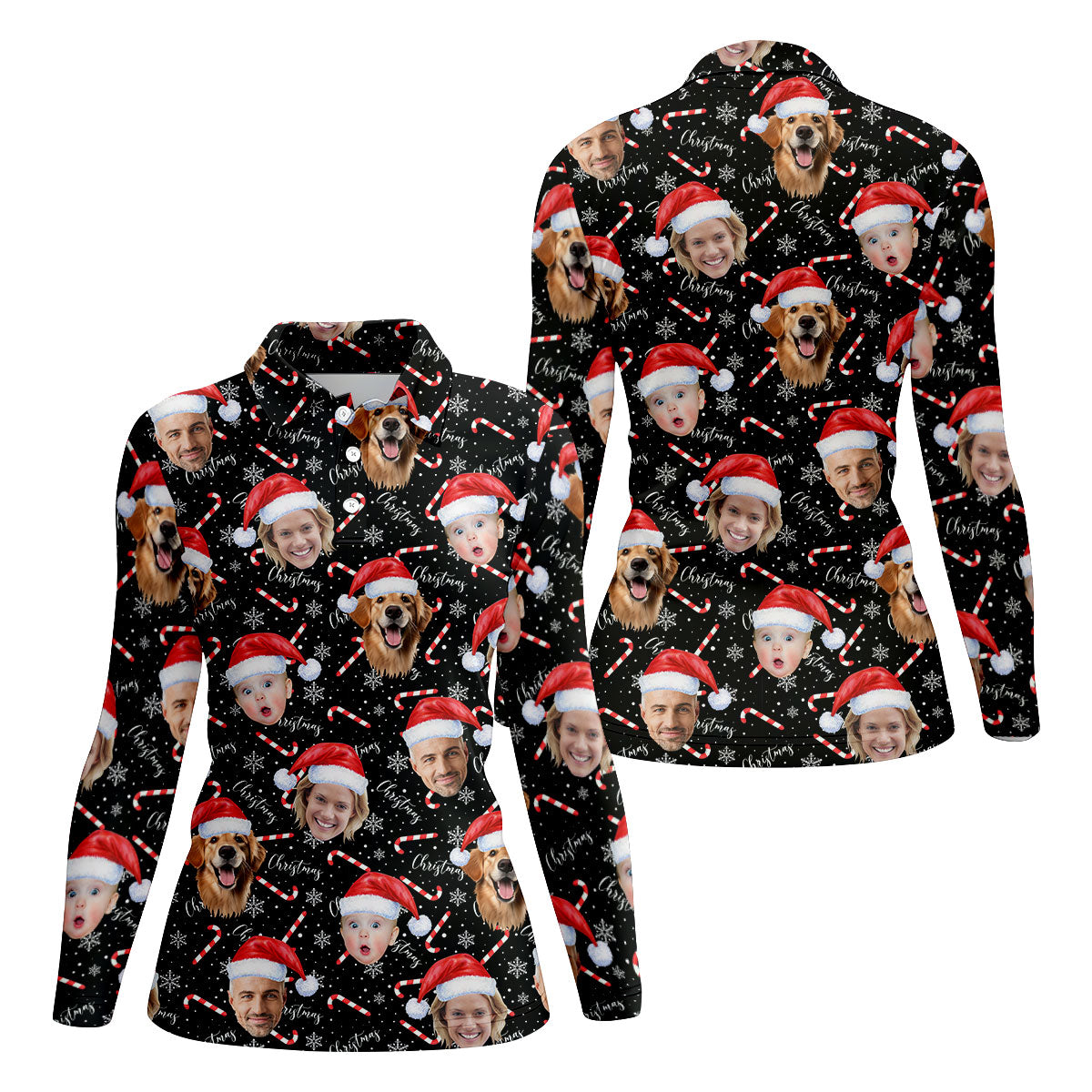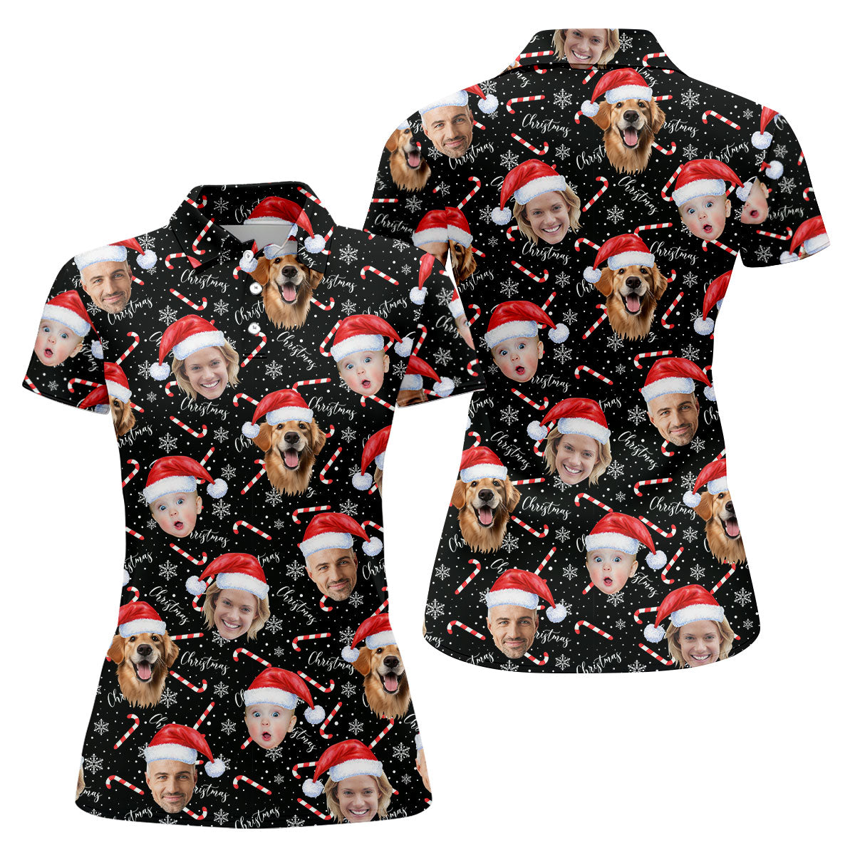 Custom Face Candy Cane Christmas Black Golf Shirt, Christmas Golf Shirt, Ladies Golf Tops, Golf Gifts For Women