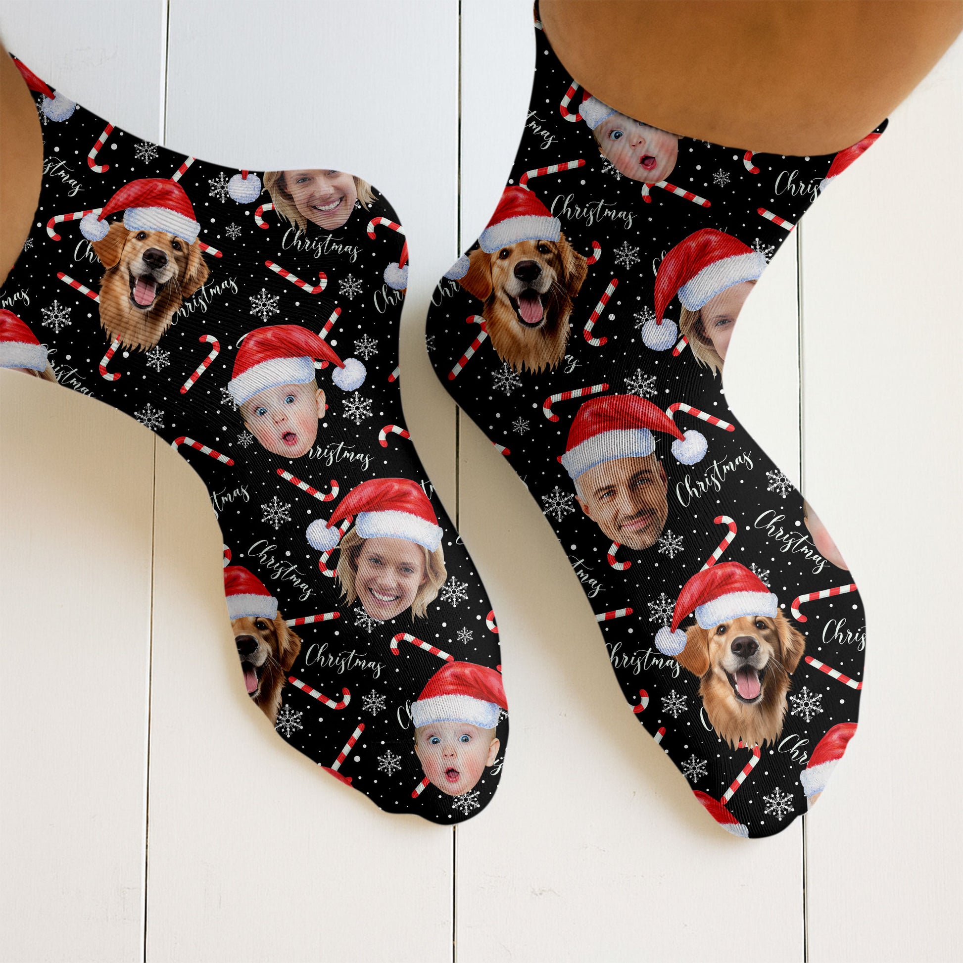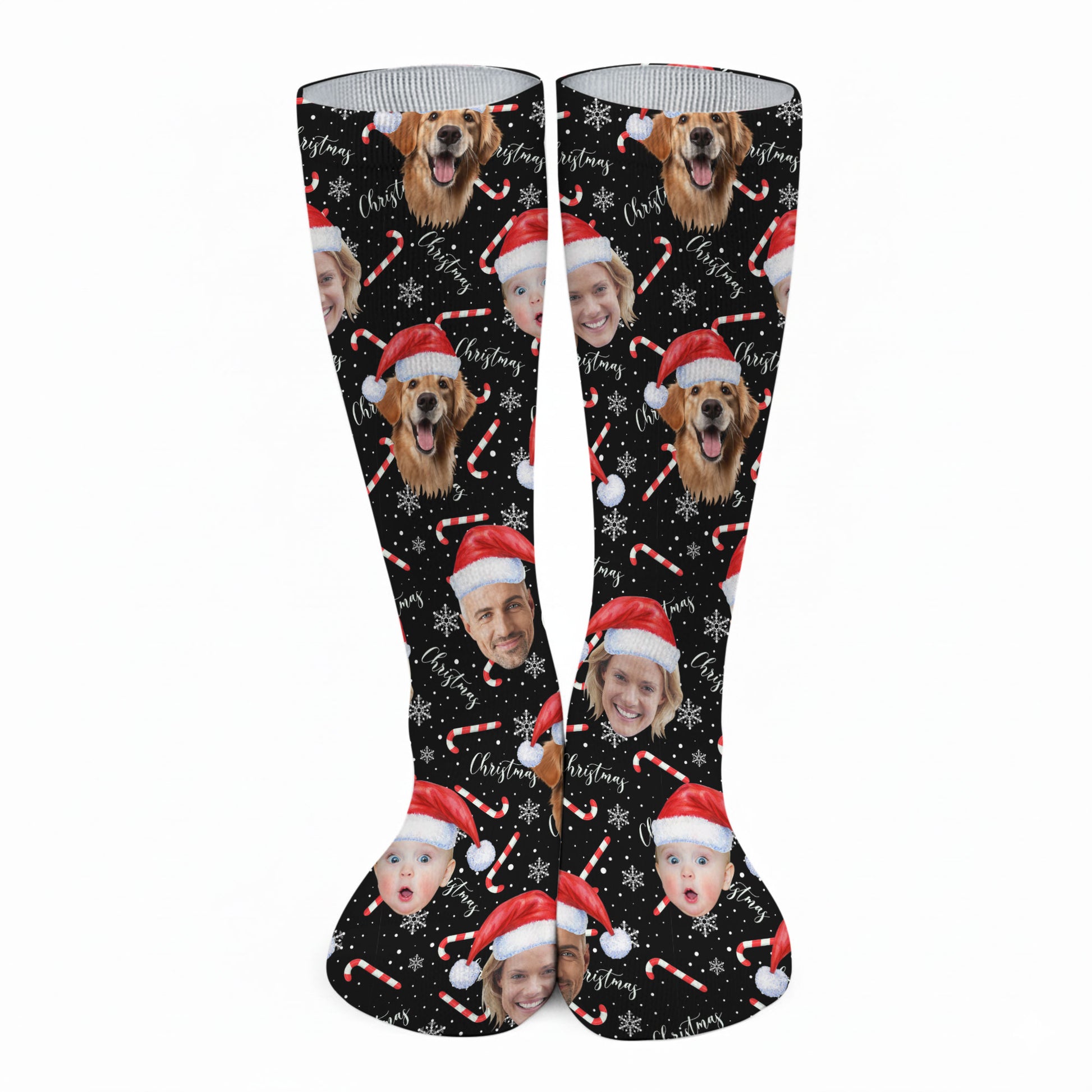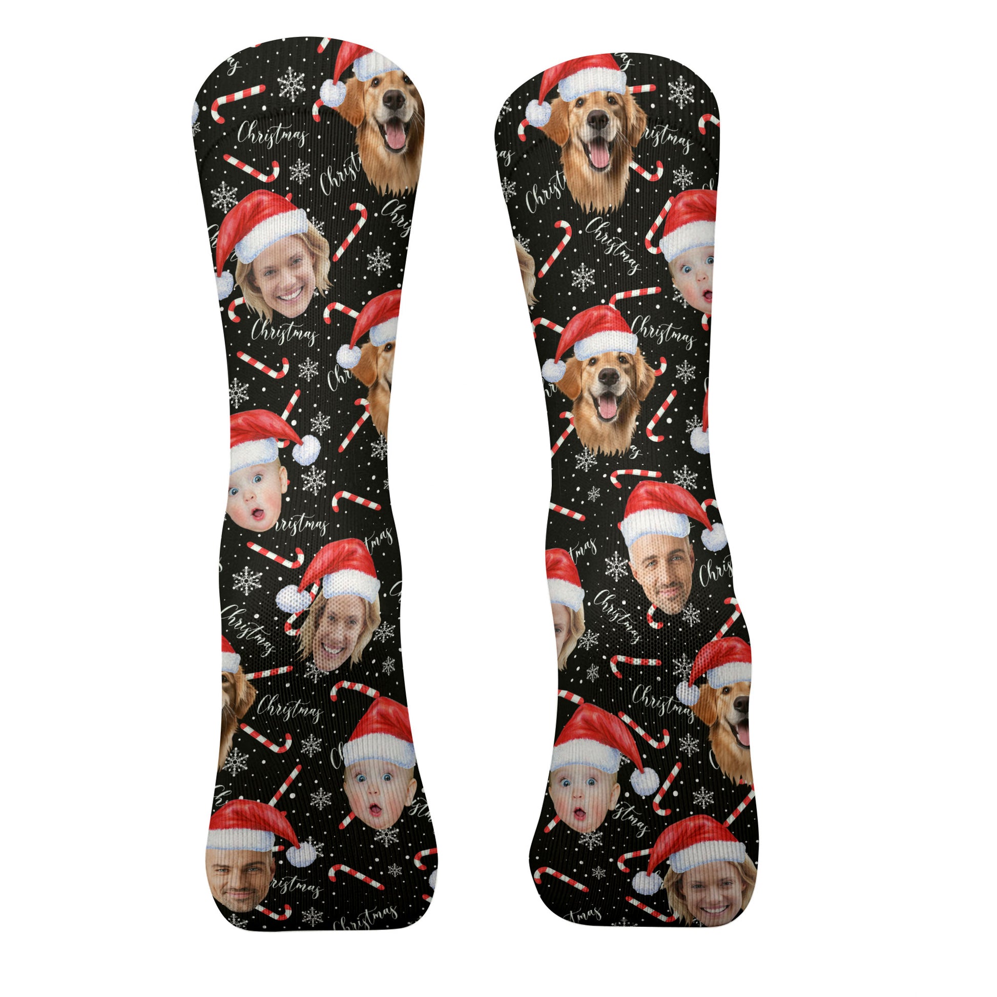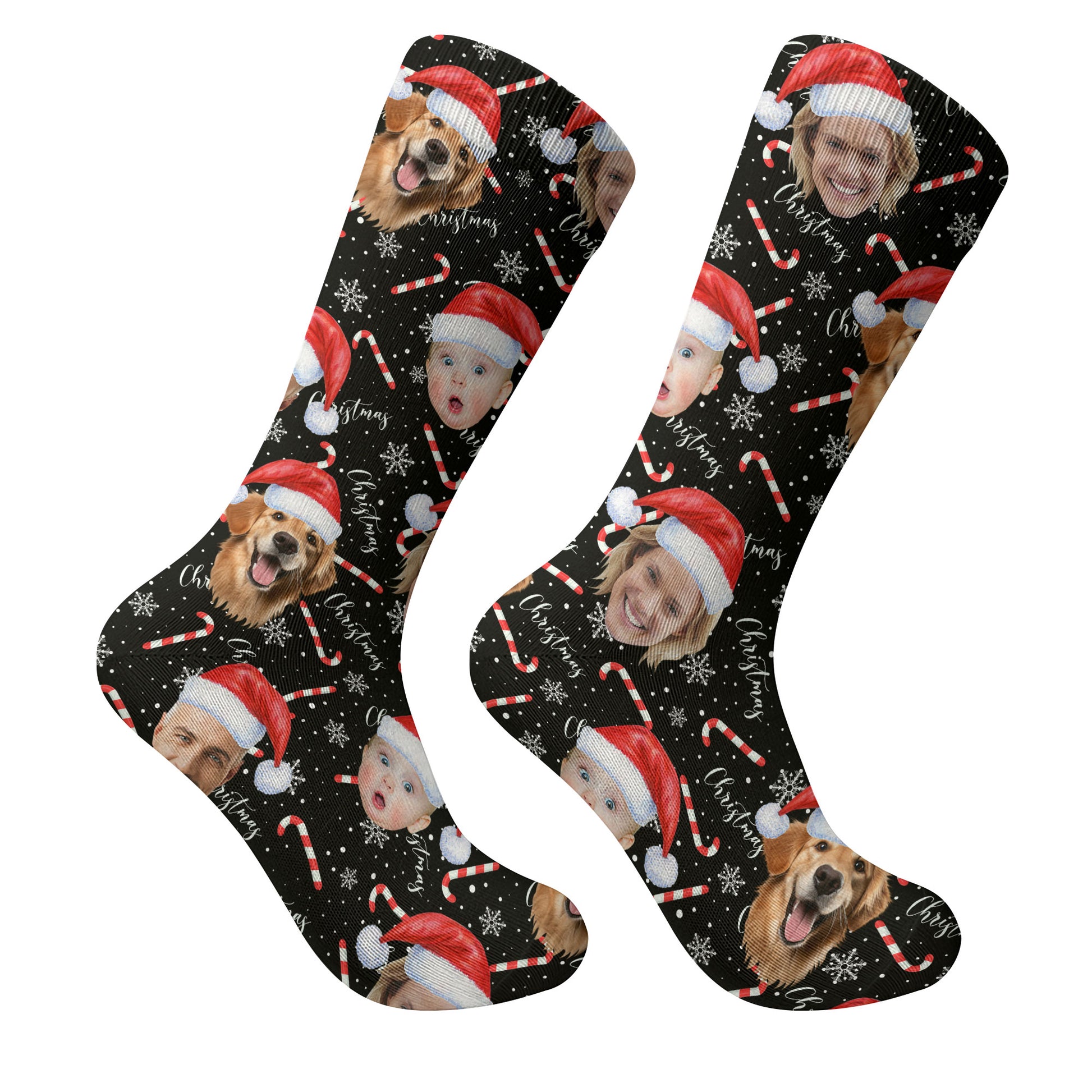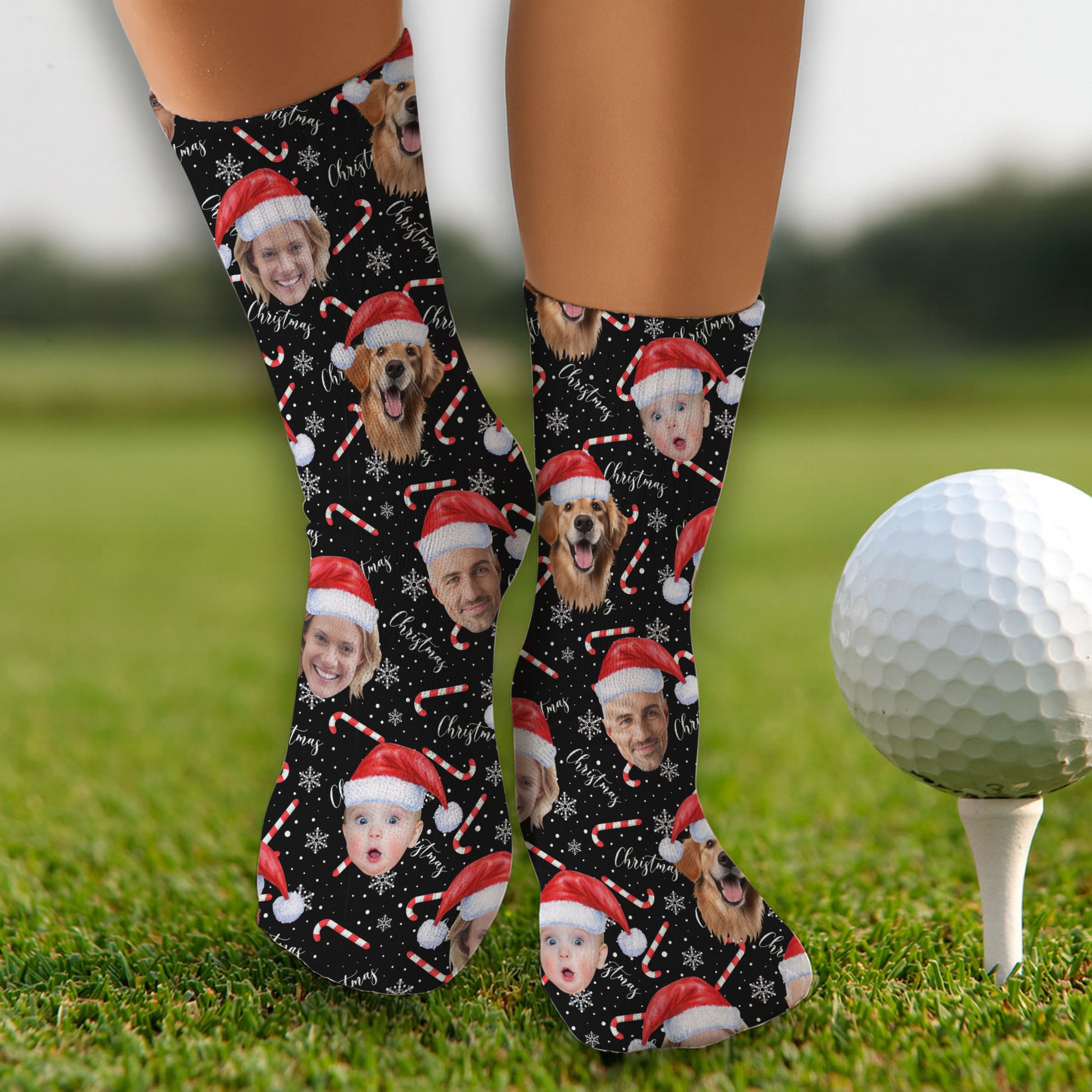 Custom Face Candy Cane Christmas Black Golf Socks, Christmas Golf Gift, Custom Golf Accessories