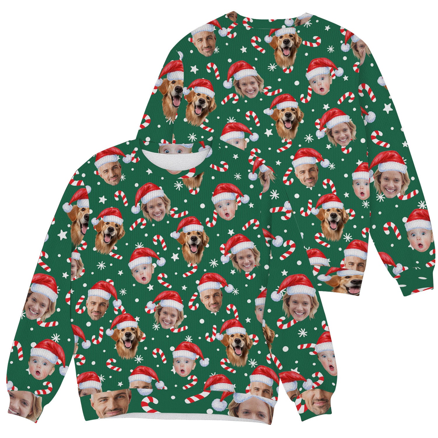 Introducing the Custom Face Candy Cane Pattern Green Golf Ugly Sweater, Golf Ugly Christmas Sweater, Christmas Golf Shirt, where bad shots meet good vibes and Christmas spirit takes a full swing.