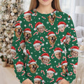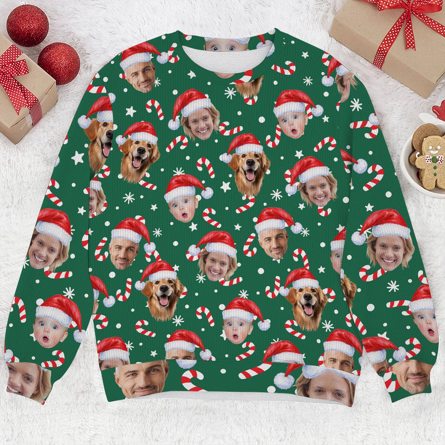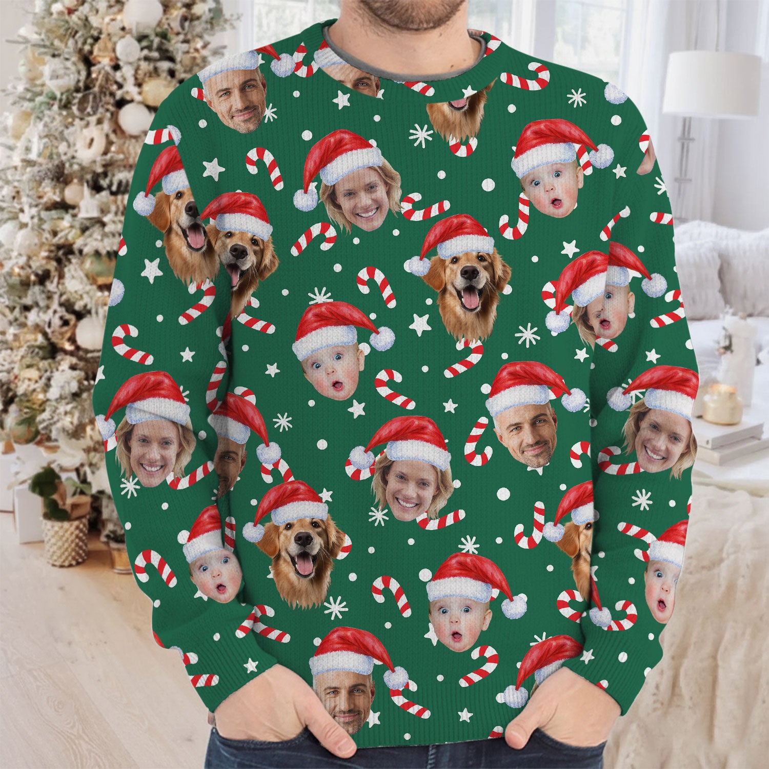 Custom Face Candy Cane Pattern Green Golf Ugly Sweater, Golf Ugly Christmas Sweater, Christmas Golf Shirt