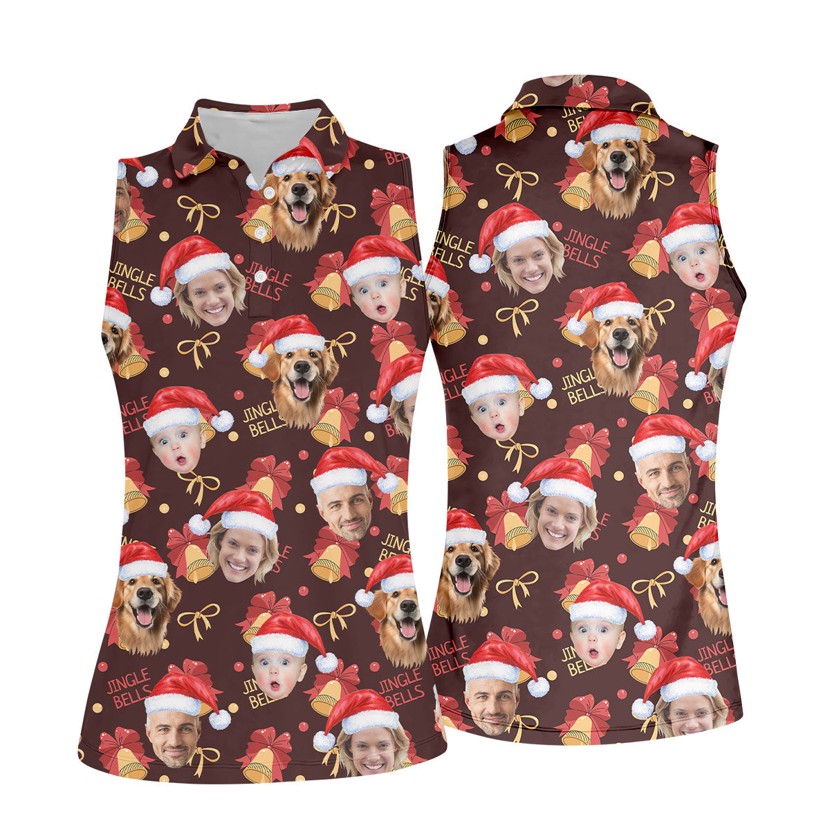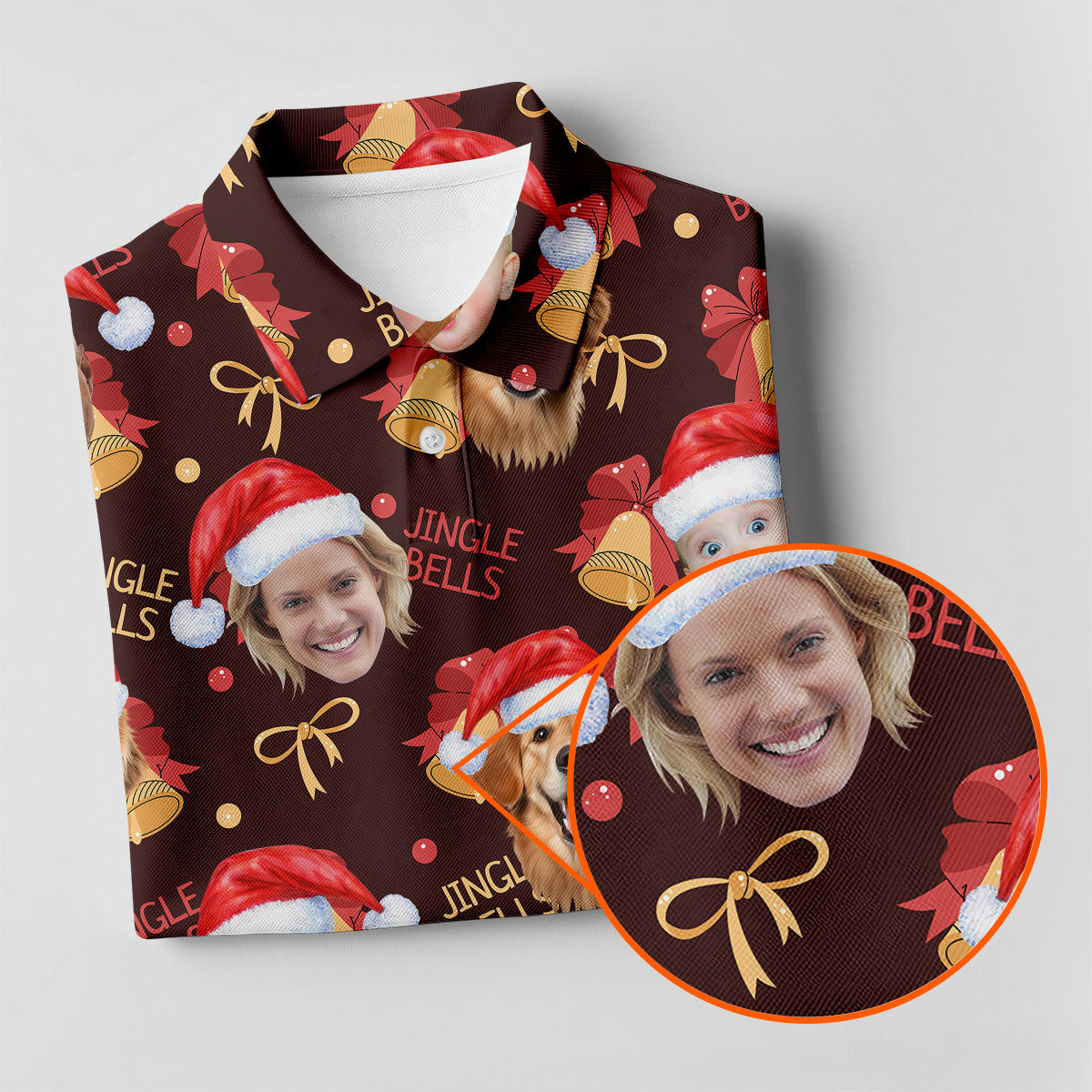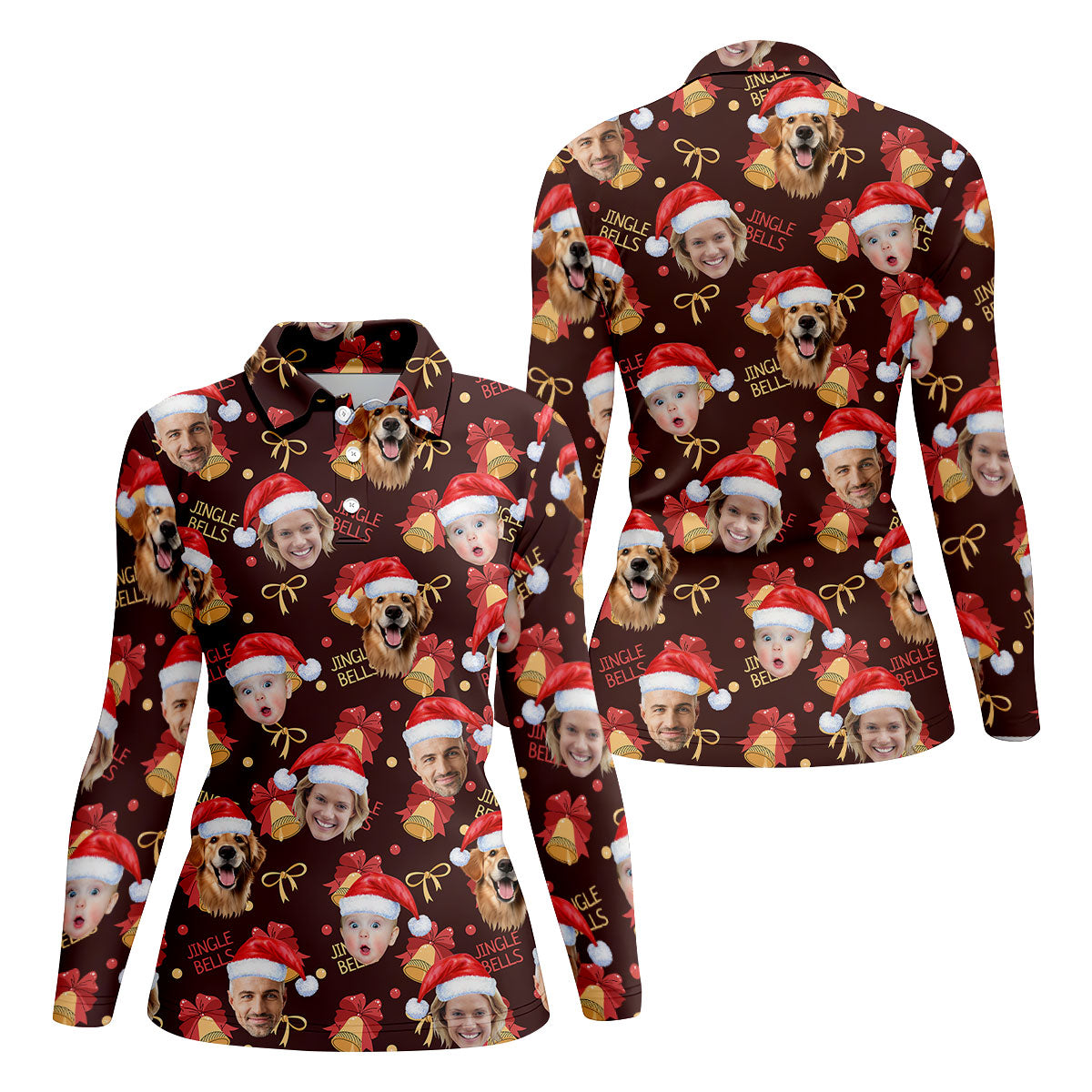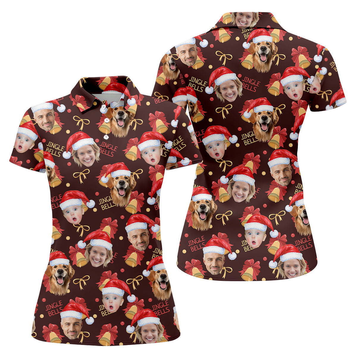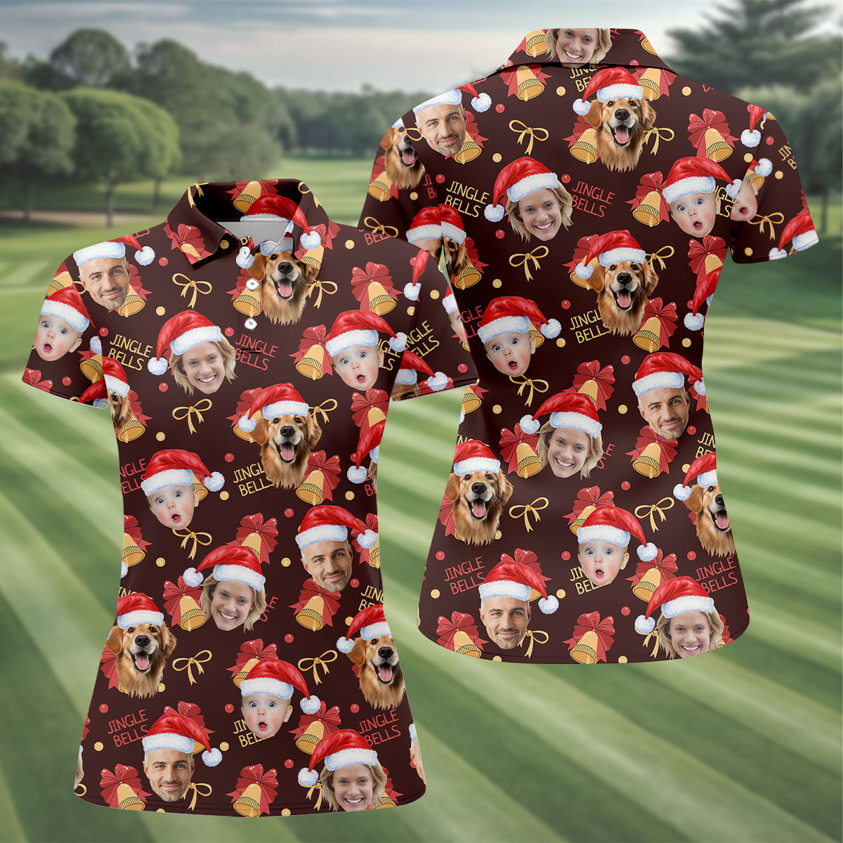 Custom Face Christmas Jingle Bells Brown Golf Shirt, Christmas Golf Shirt, Golf Gifts For Women