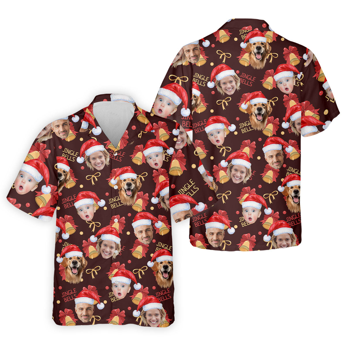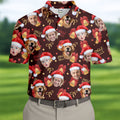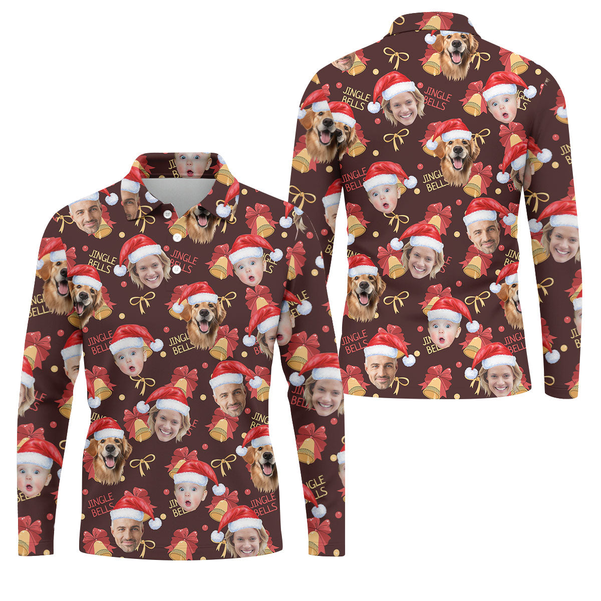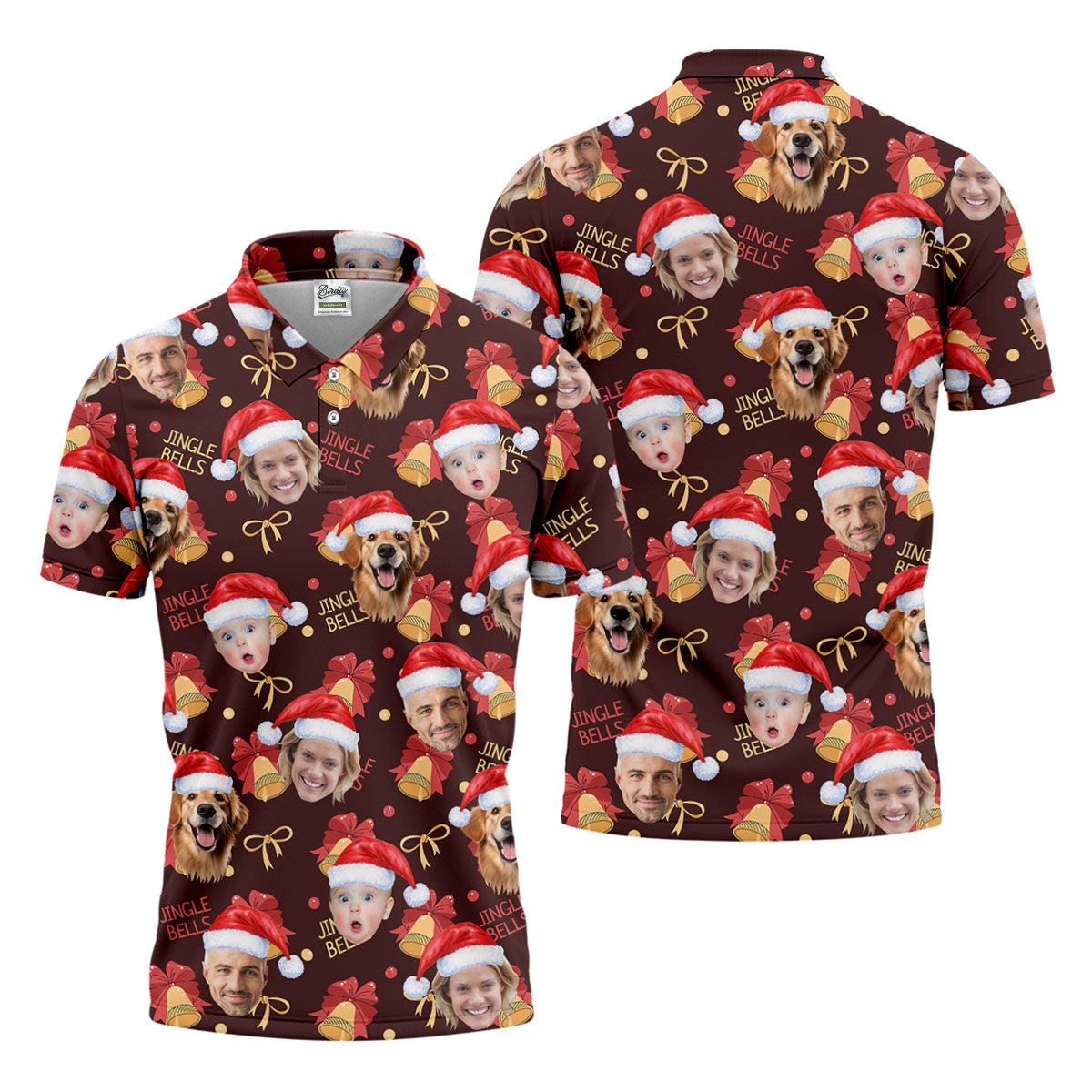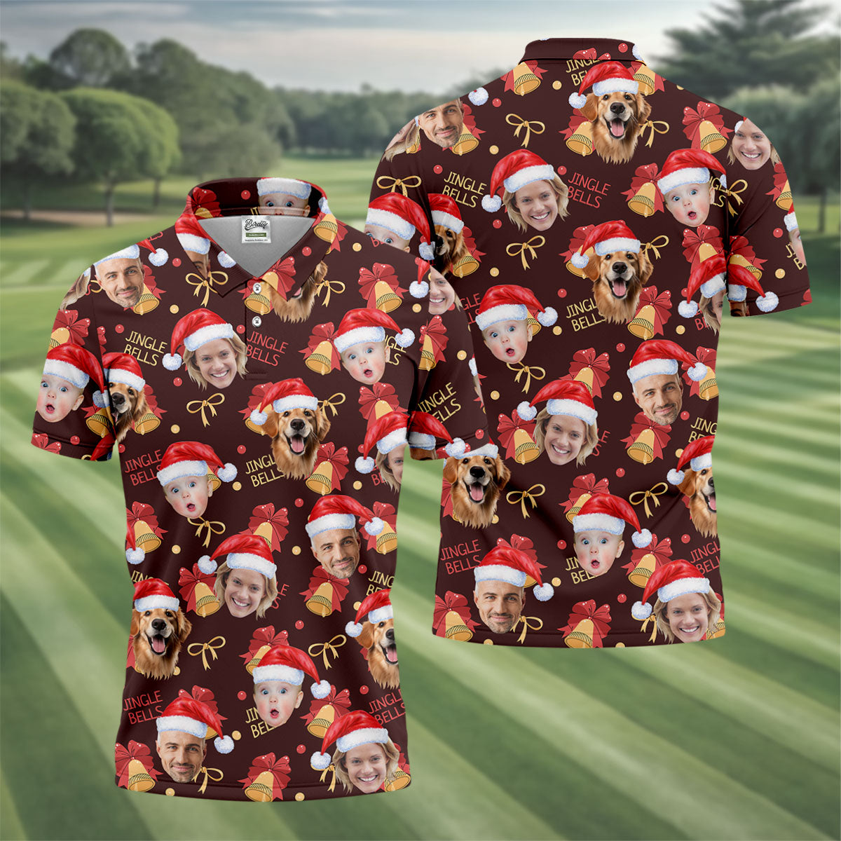Custom Face Christmas Jingle Bells Brown Golf Shirt, Christmas Golf Shirt, Golf Shirts For Men, Golf Gift For Men
