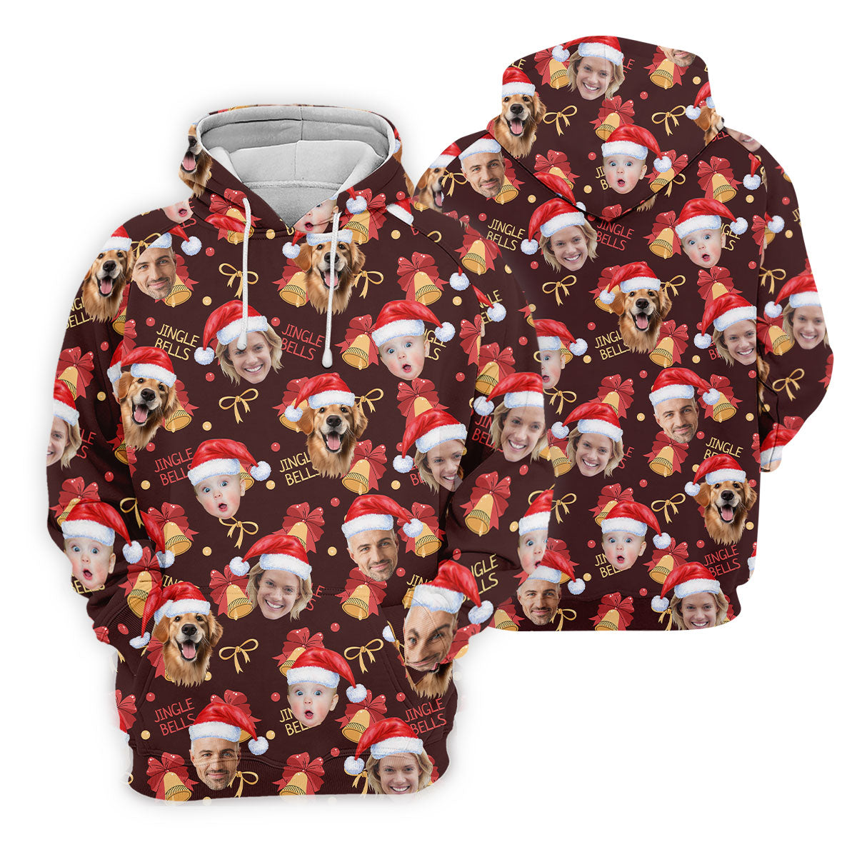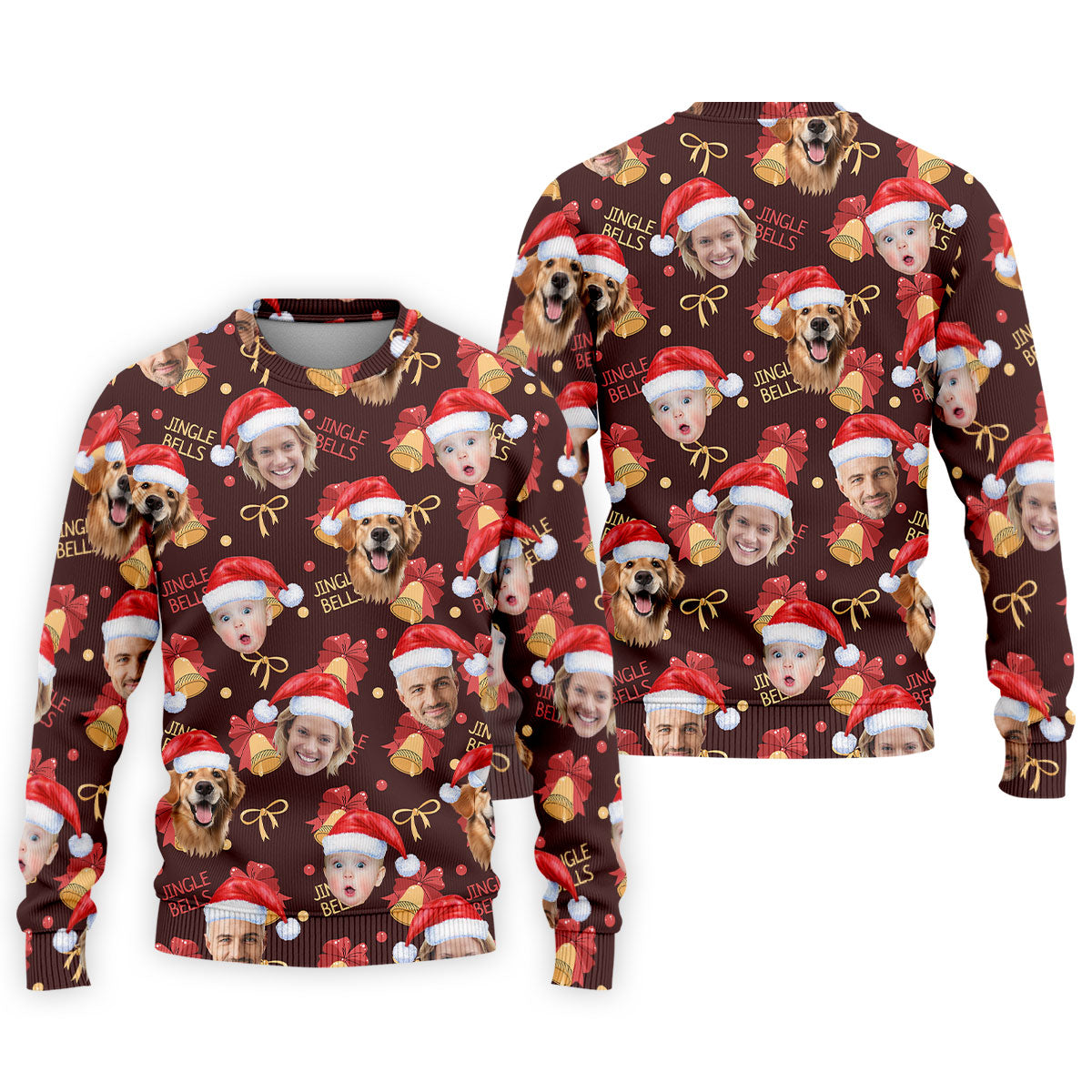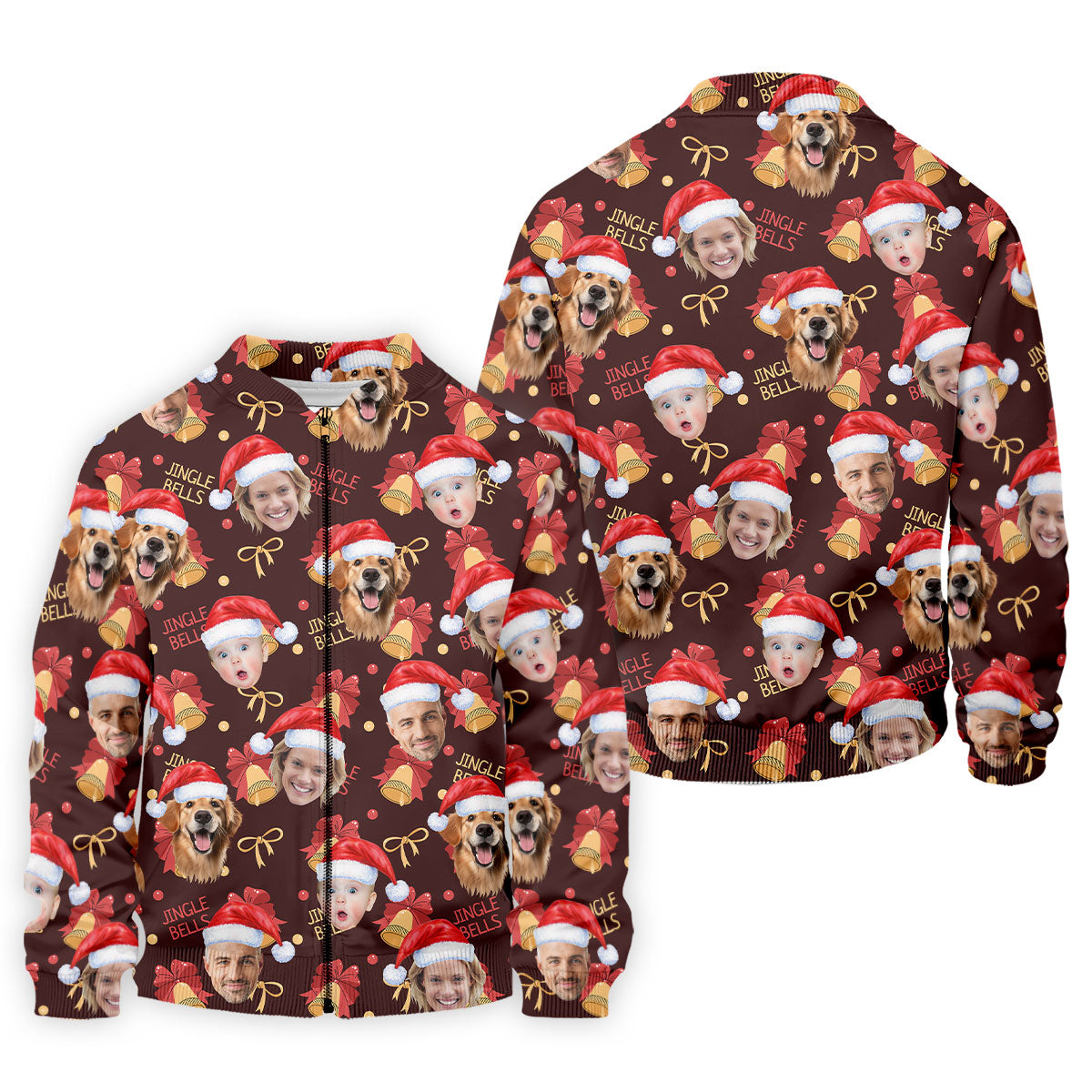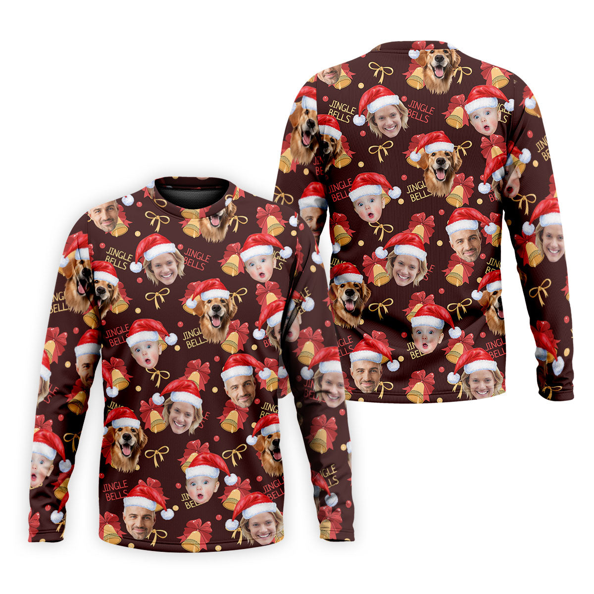Custom Face Christmas Jingle Bells Brown Golf Shirt, Christmas Golf Shirt, Golf Shirts For Men, Golf Gift For Men
