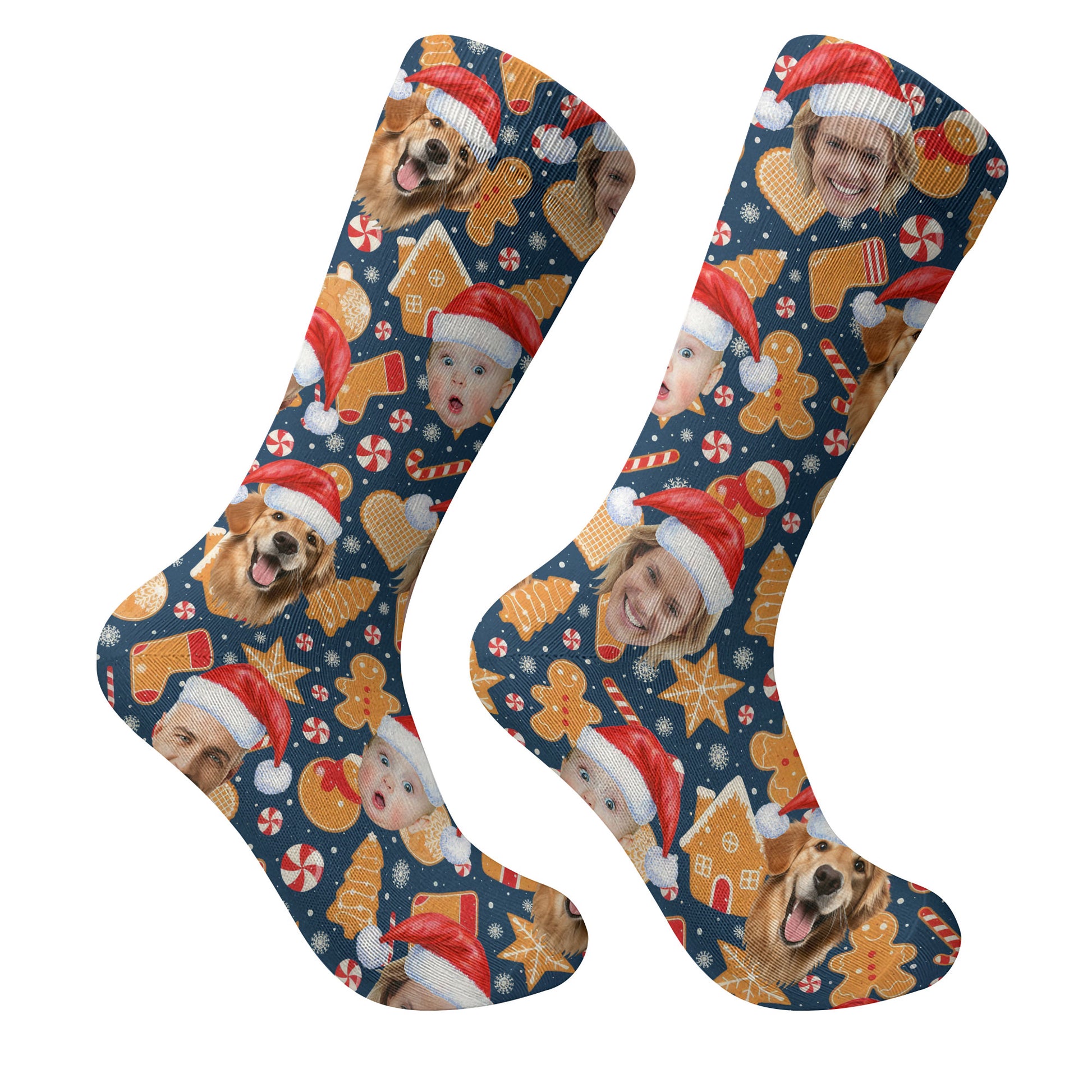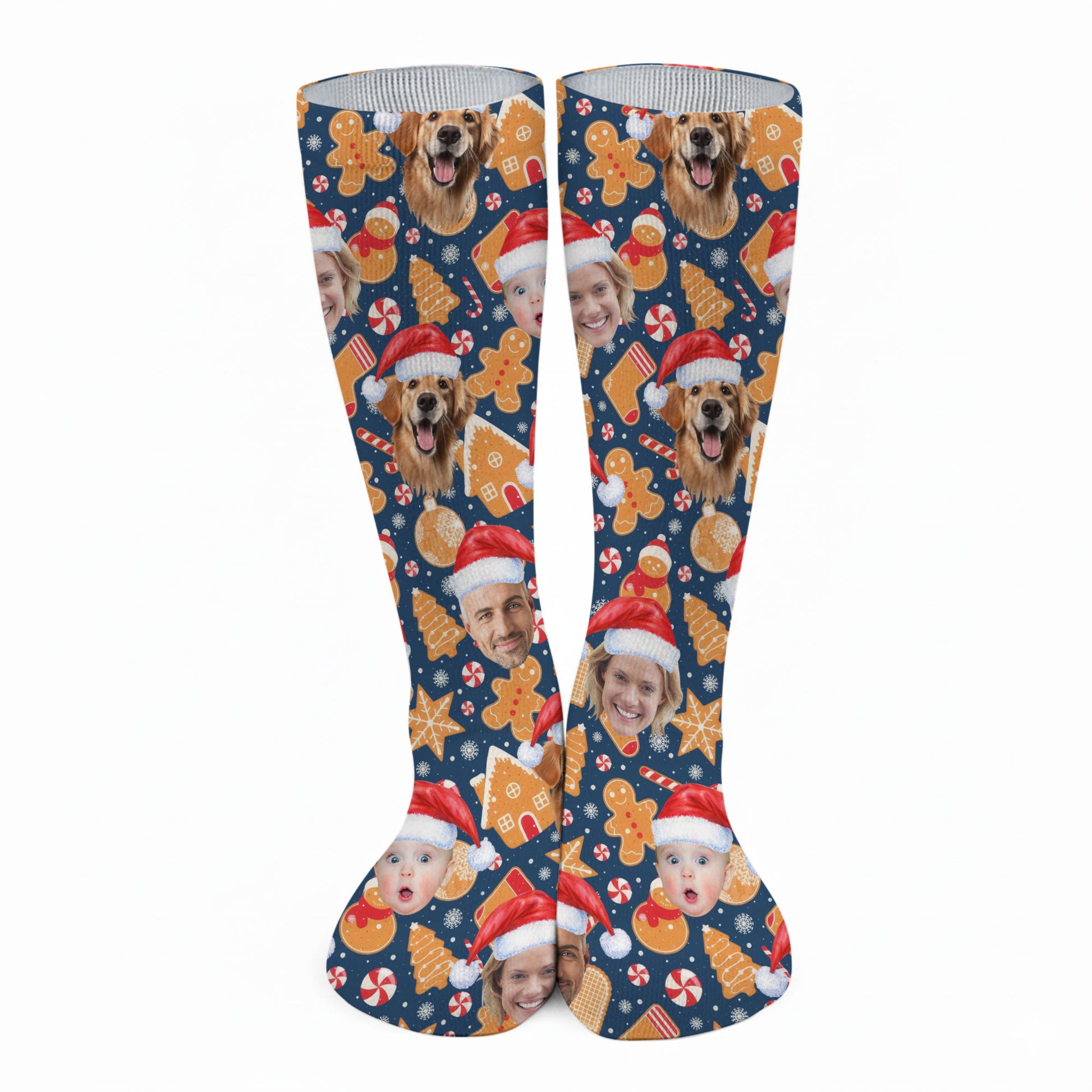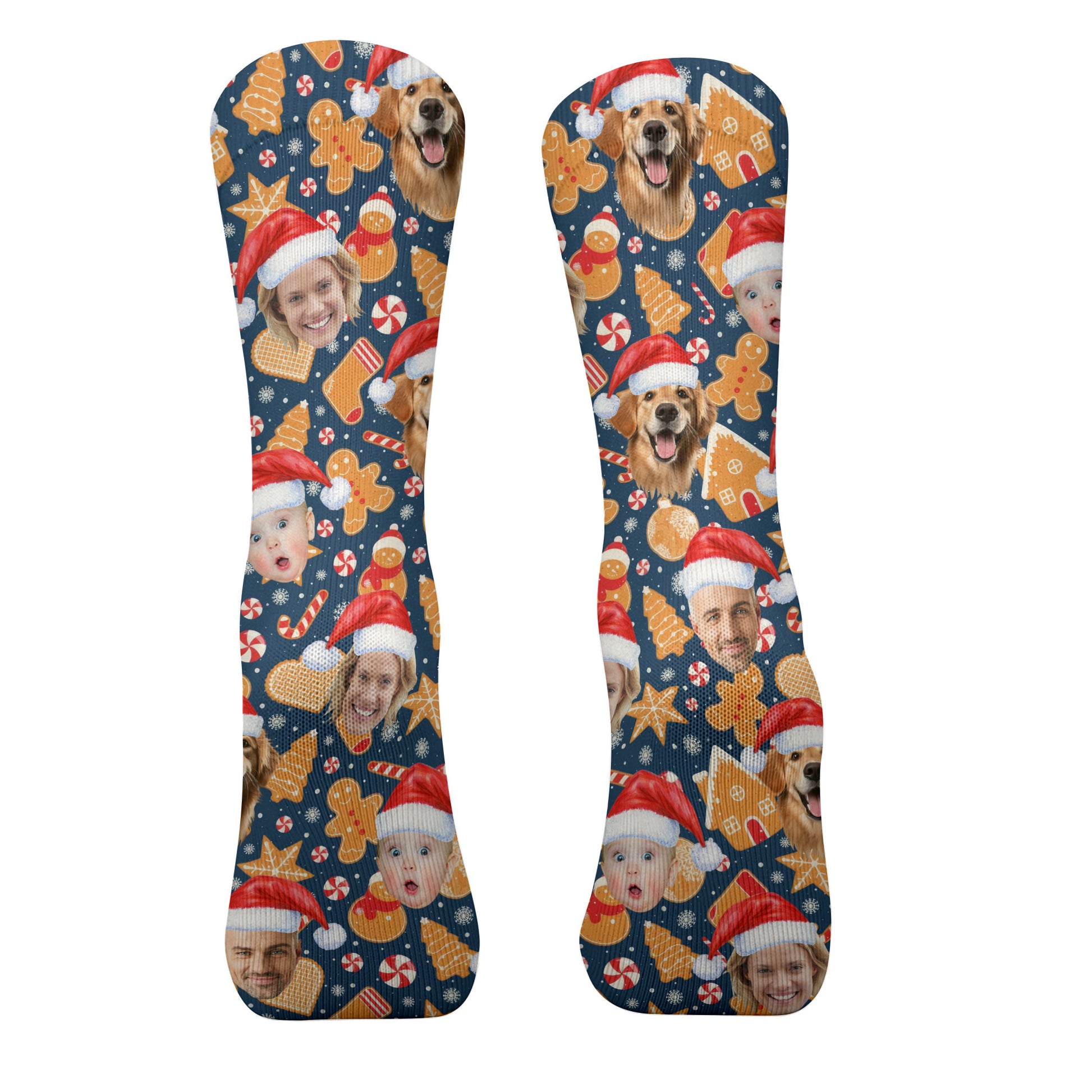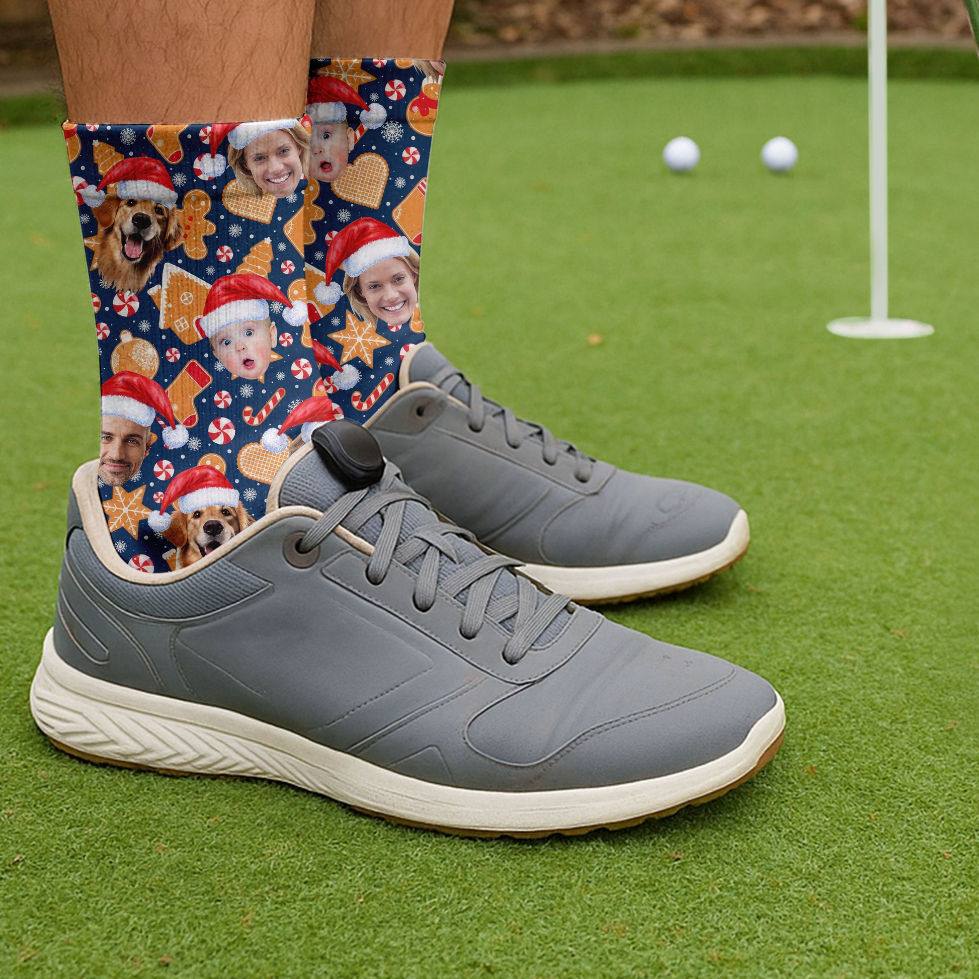 Custom Face Christmas Sweets Navy Golf Socks, Christmas Golf Socks, Golf Gift Idea