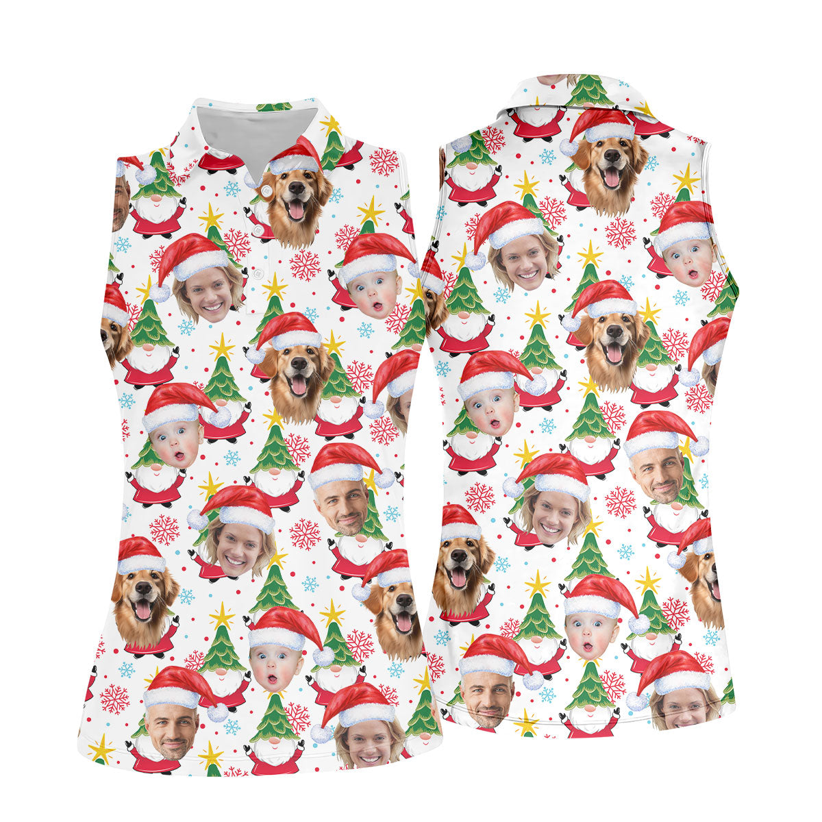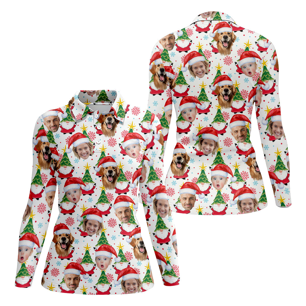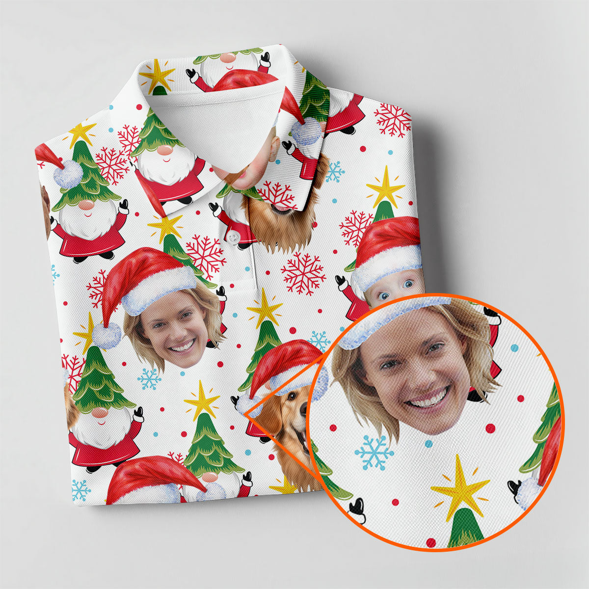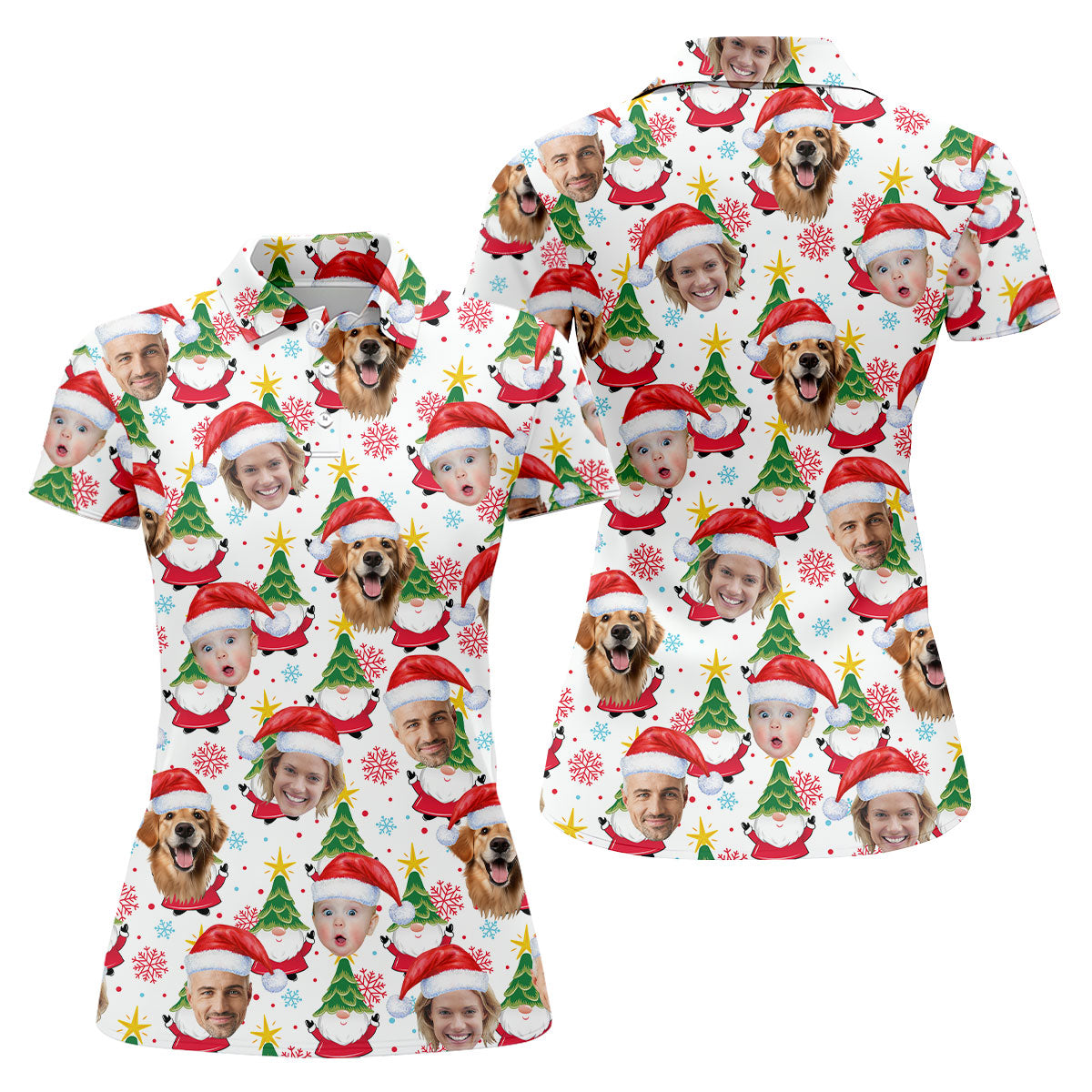 Custom Face Cute Christmas Gnome White Golf Shirt, Christmas Golf Shirt, Ladies Golf Shirts, Golf Gifts For Women