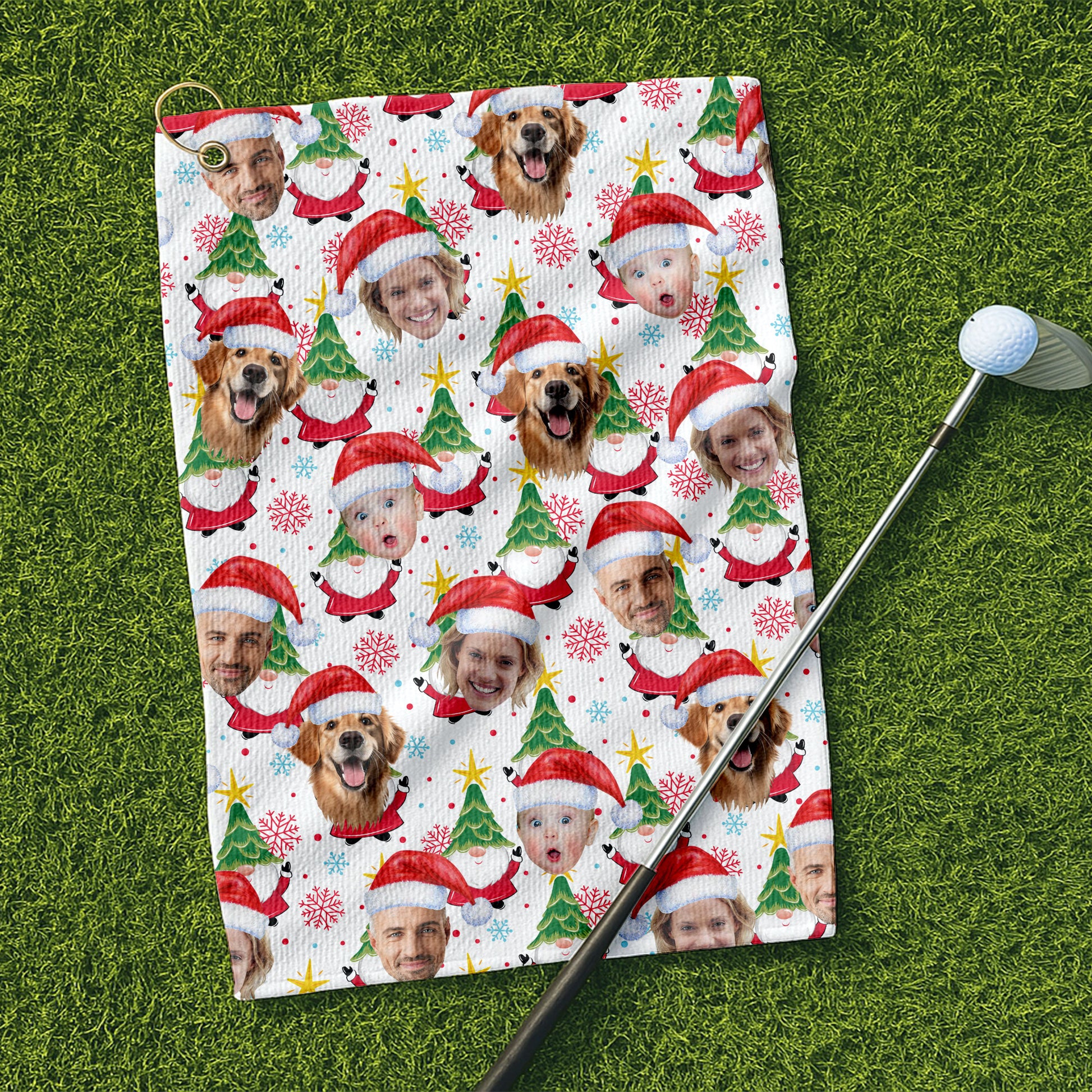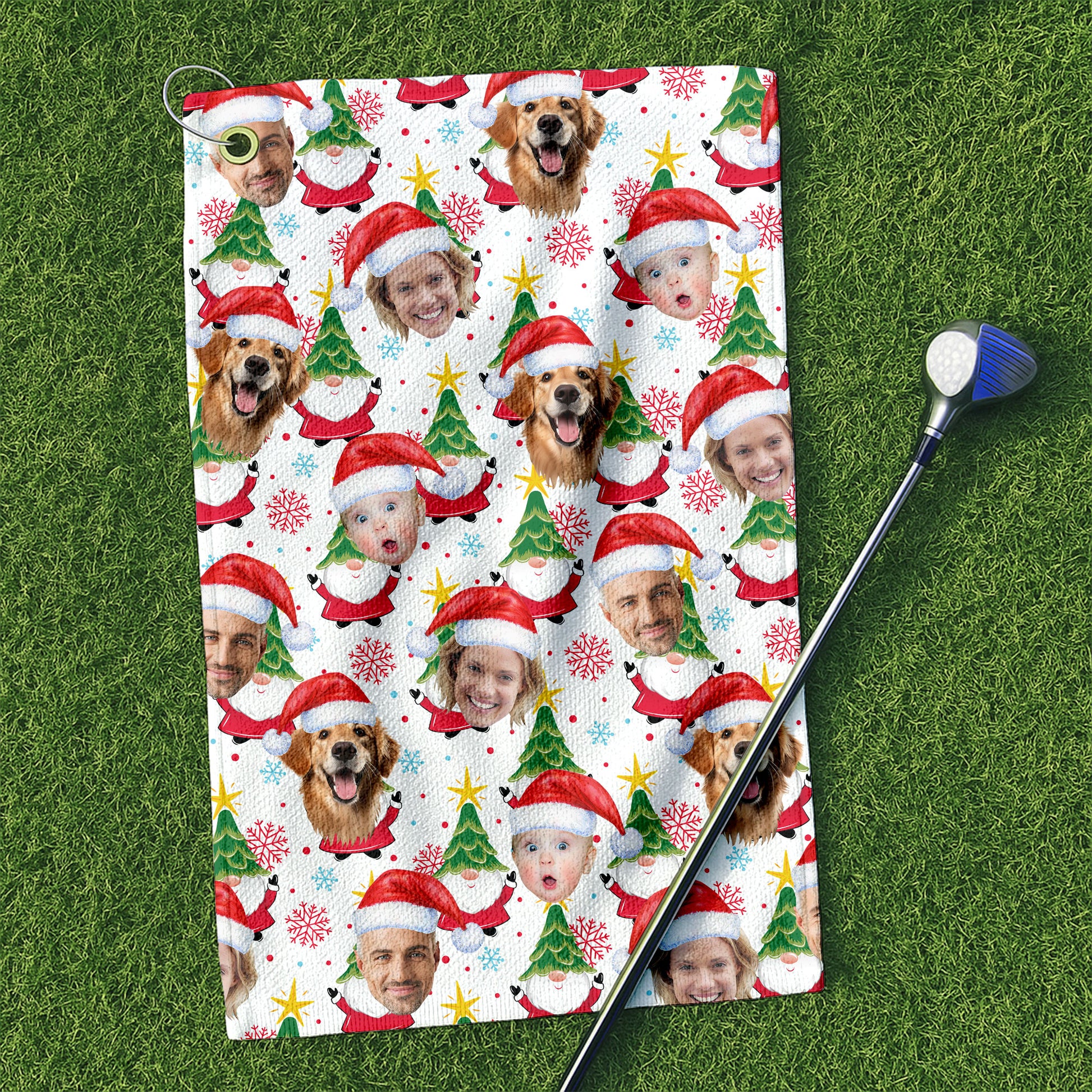 Custom Face Cute Christmas Gnome White Golf Towels, Christmas Golf Gift, Custom Golf Accessories