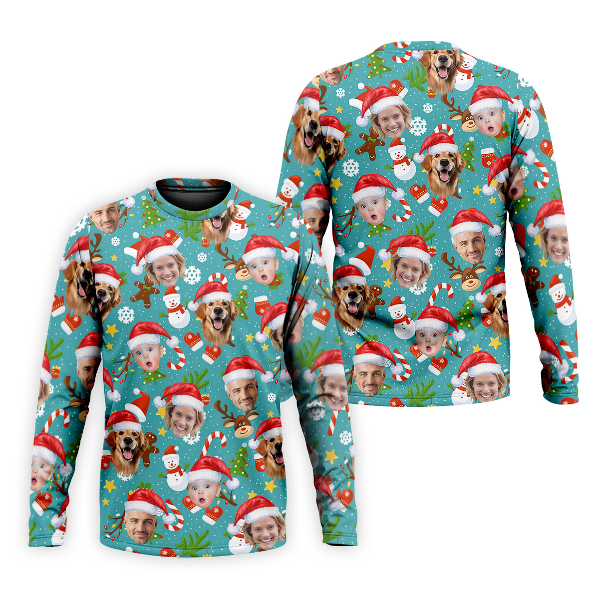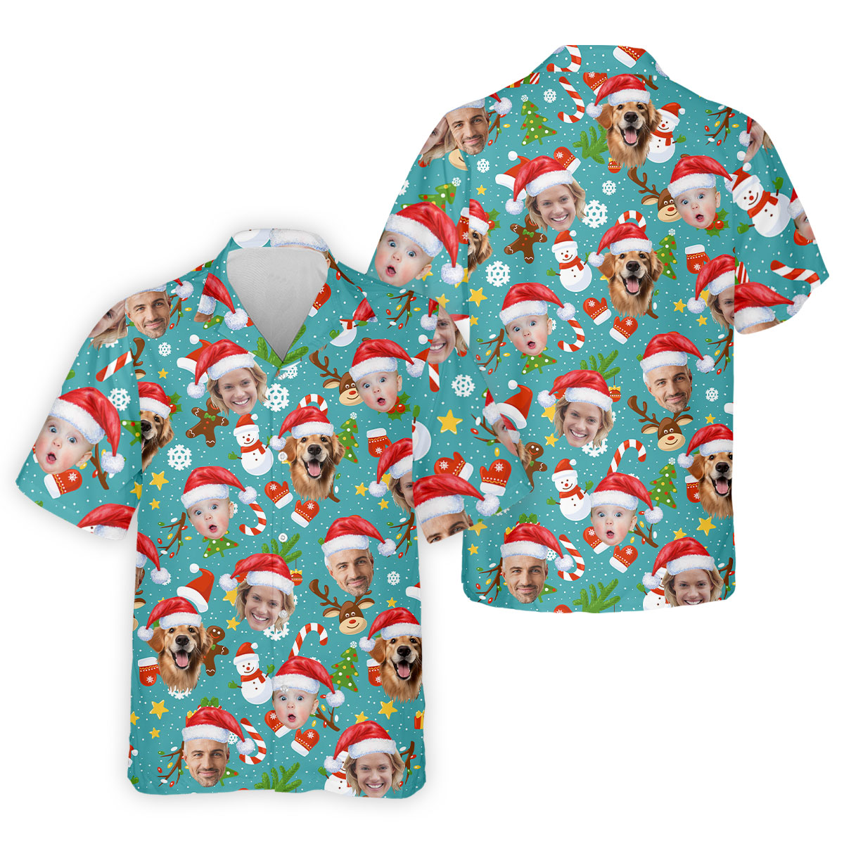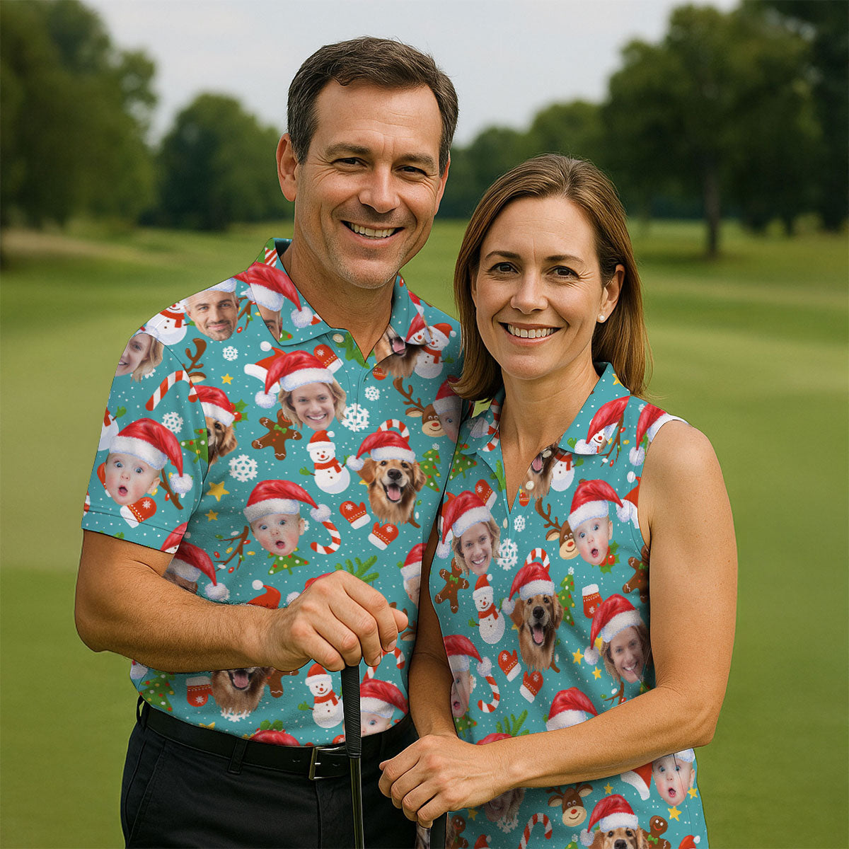 Custom Face Cute Christmas Pattern Teal Golf Shirt, Christmas Golf Shirt, Golf Gift For Men, Golf Shirts For Men