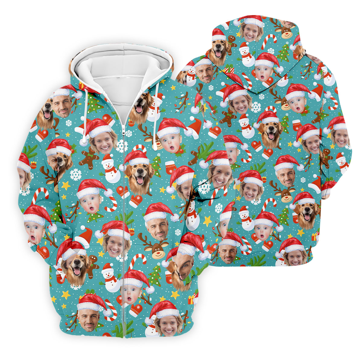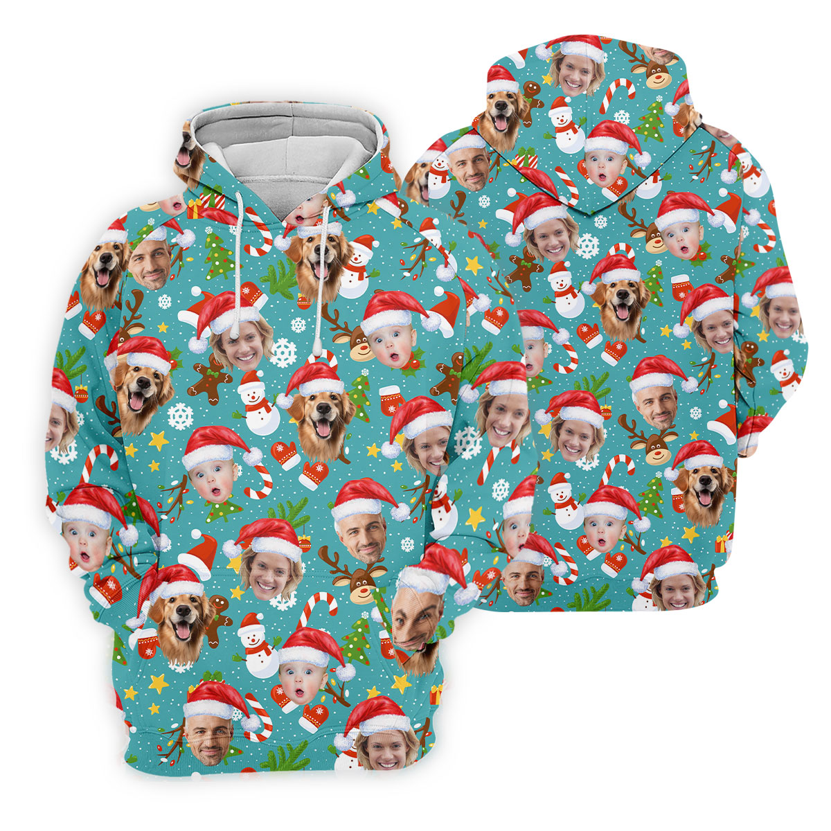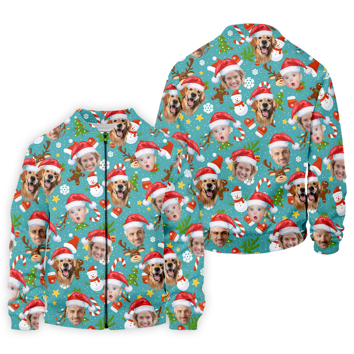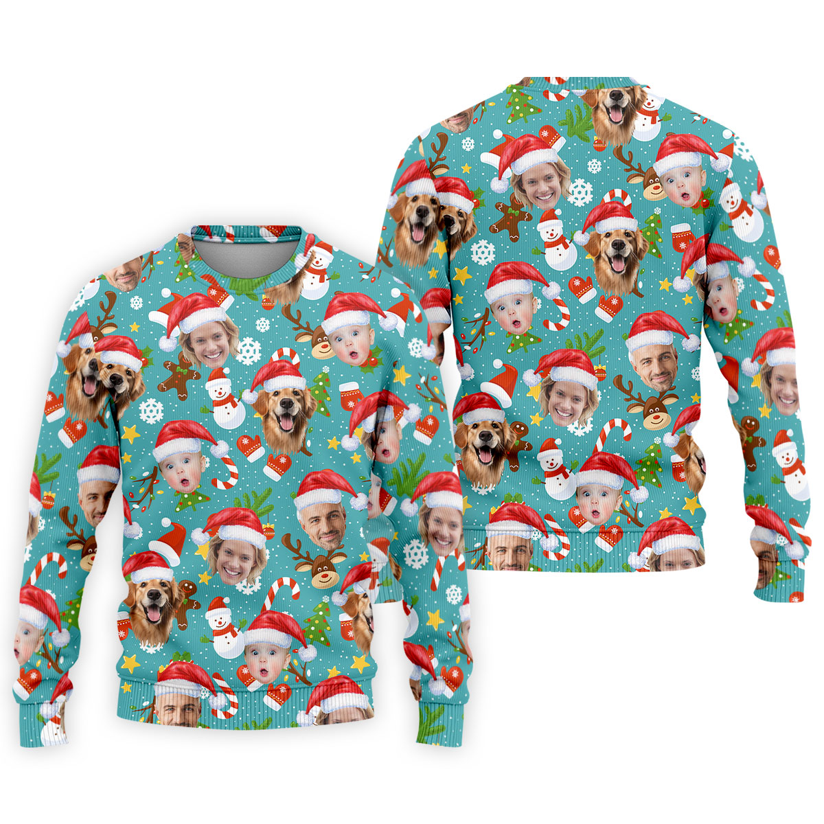 Custom Face Cute Christmas Pattern Teal Golf Shirt, Christmas Golf Shirt, Golf Gift For Men, Golf Shirts For Men