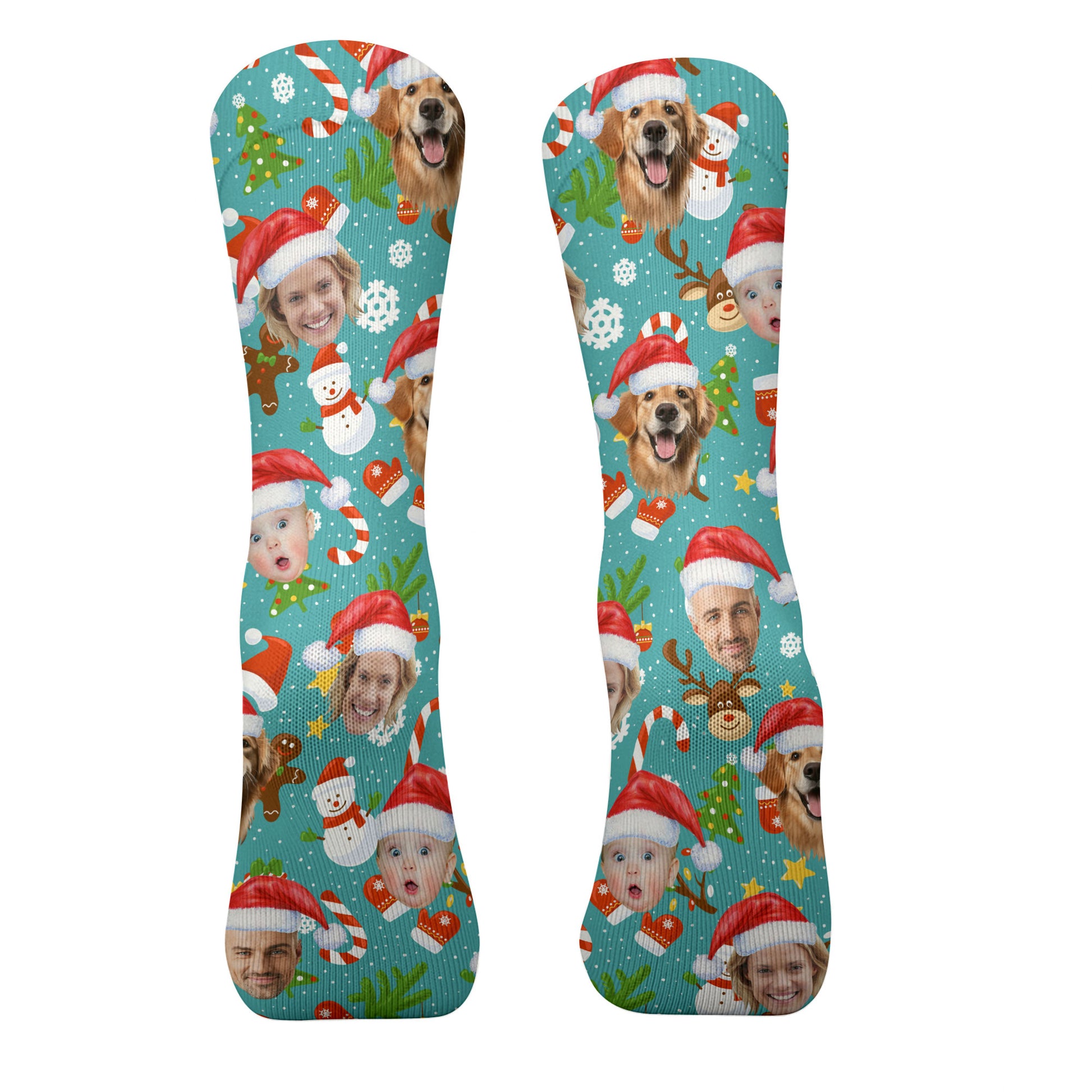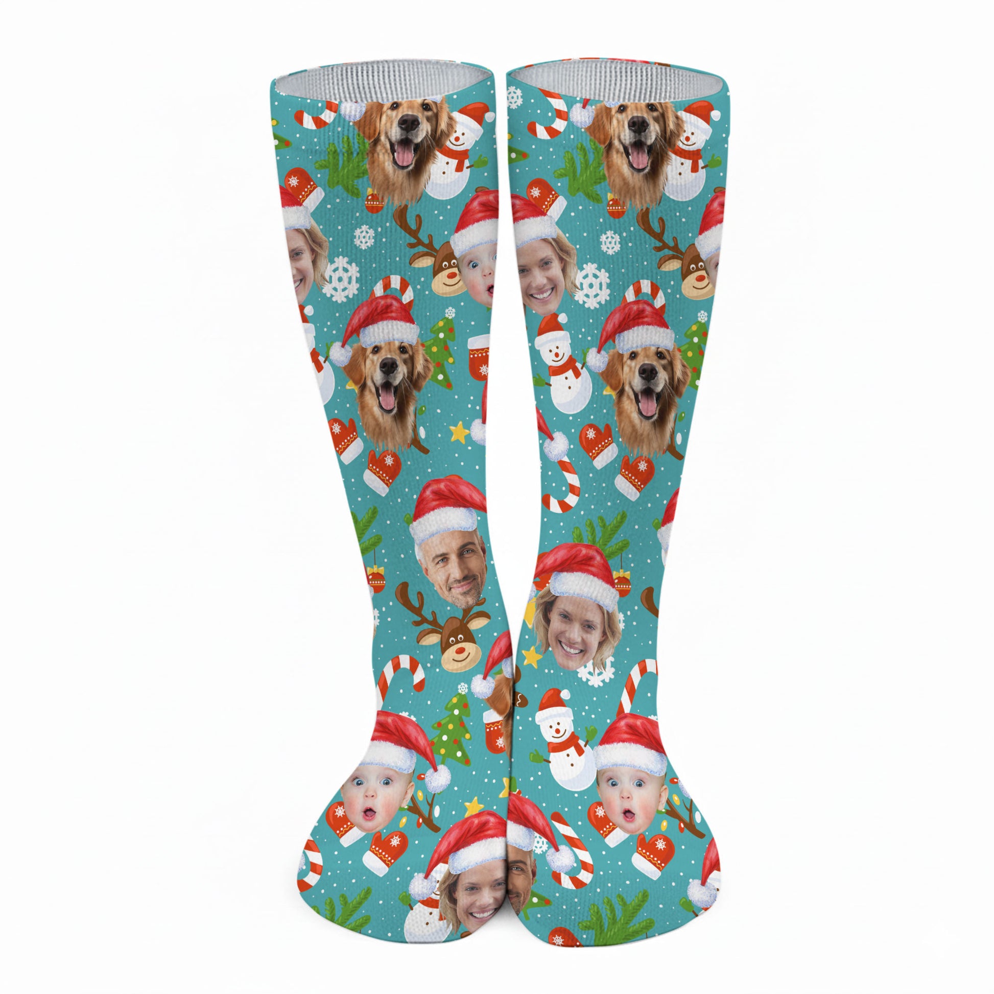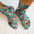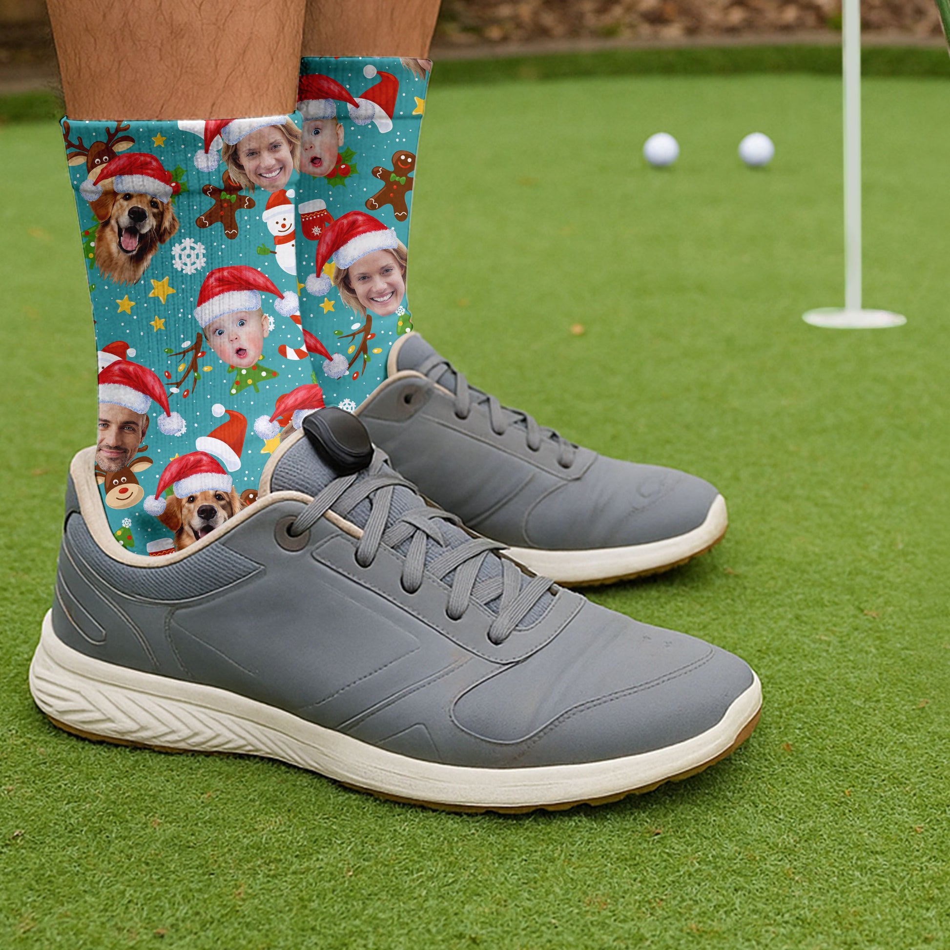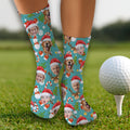 Custom Face Cute Christmas Pattern Teal Golf Socks, Christmas Golf Gift, Custom Golf Accessories