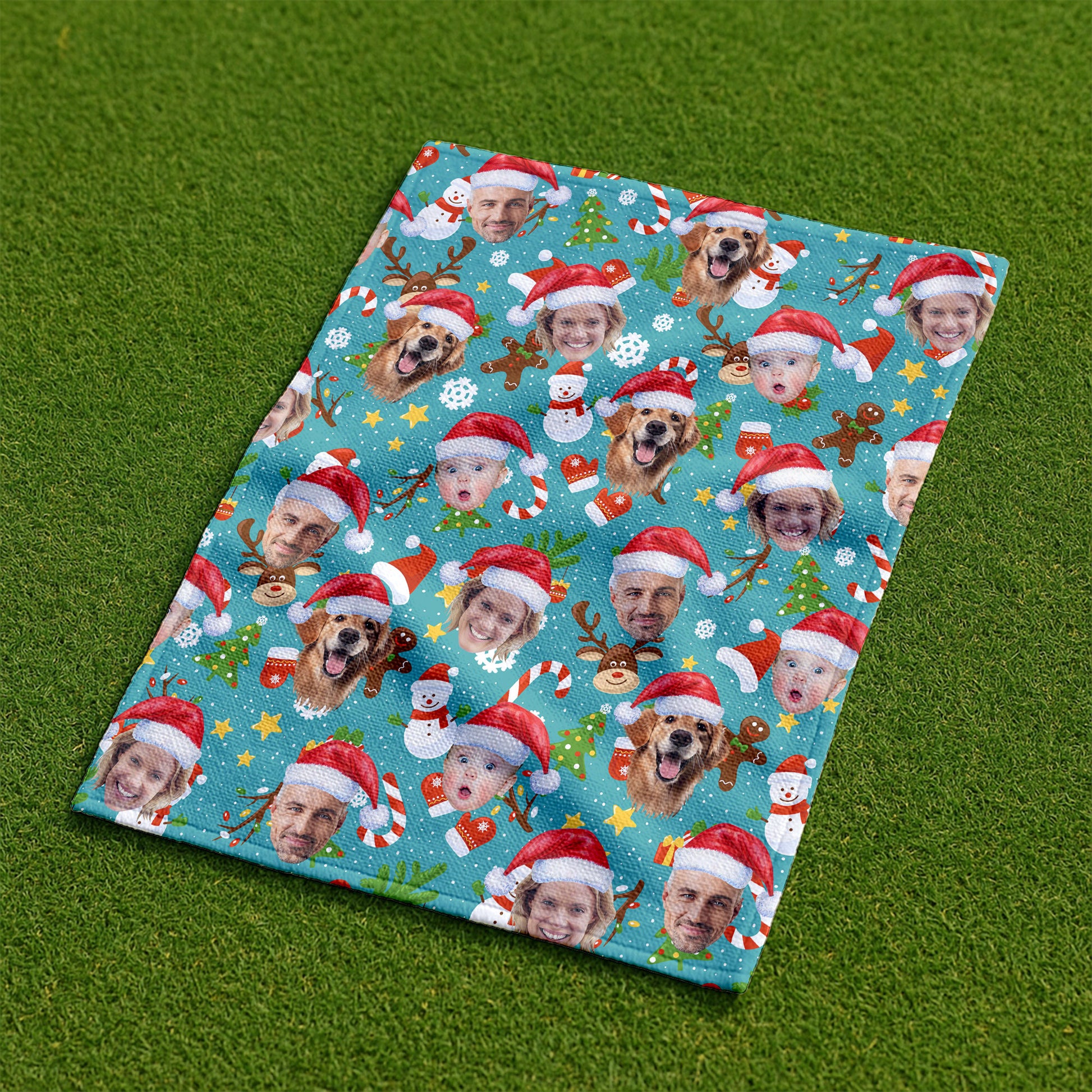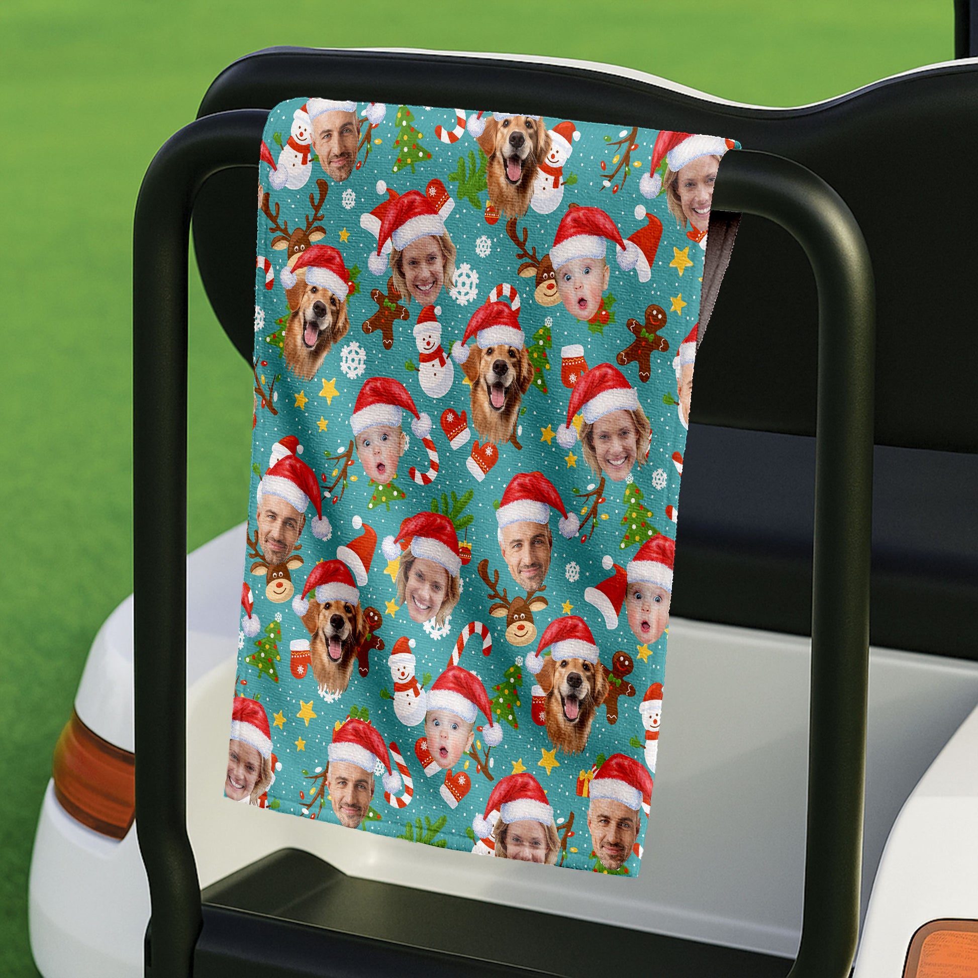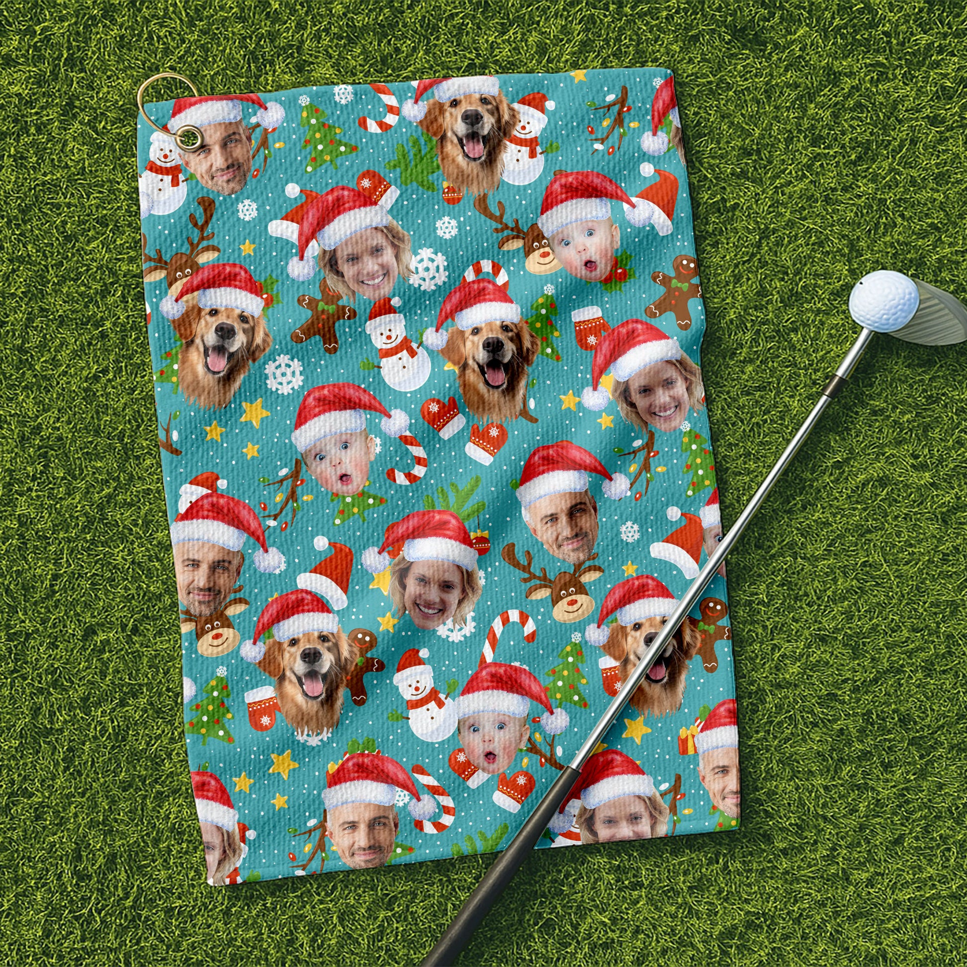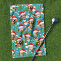 Custom Face Cute Christmas Pattern Teal Golf Towels, Christmas Golf Gift, Custom Golf Accessories