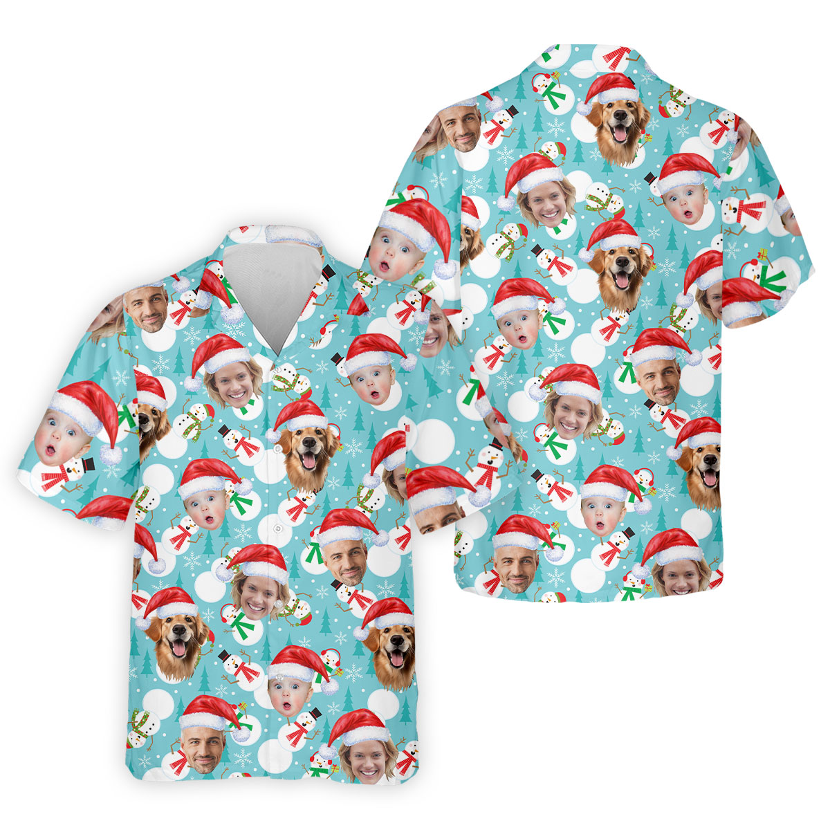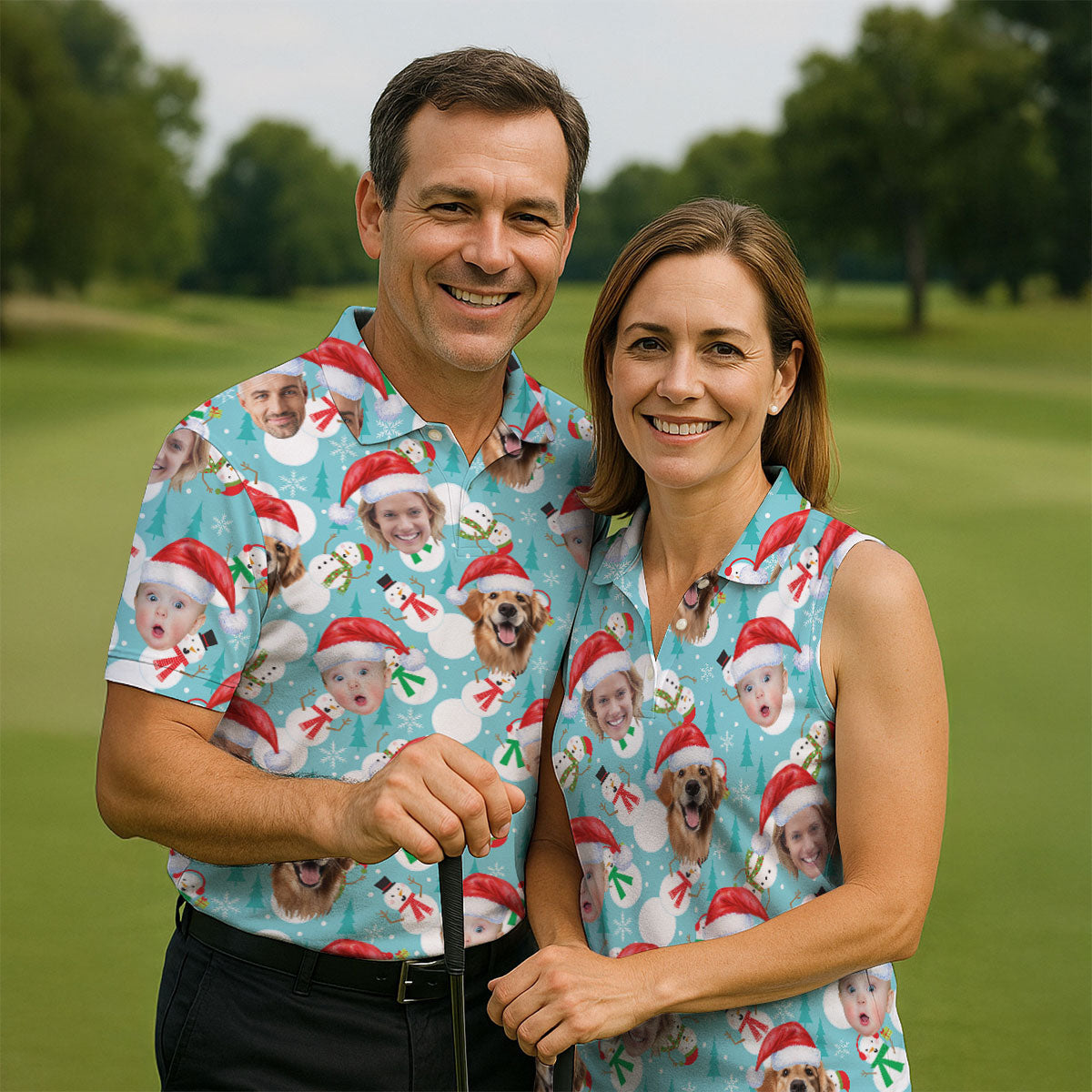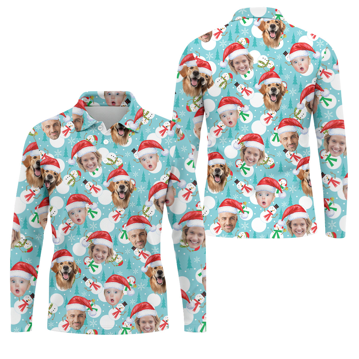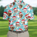 Custom Face Cute Snowman Ice Blue Christmas Golf Shirt, Golf Gift For Men, Golf Shirts For Men