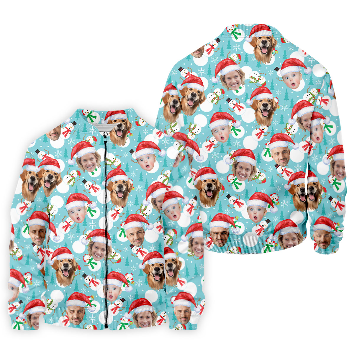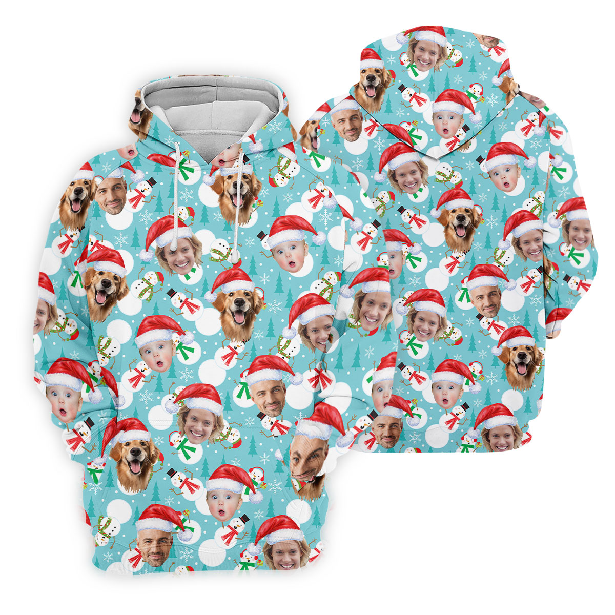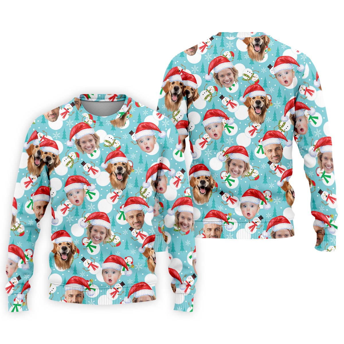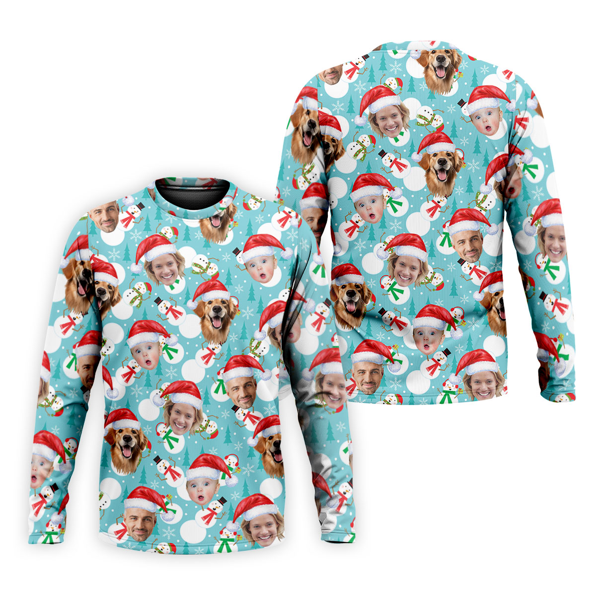 Custom Face Cute Snowman Ice Blue Christmas Golf Shirt, Golf Gift For Men, Golf Shirts For Men