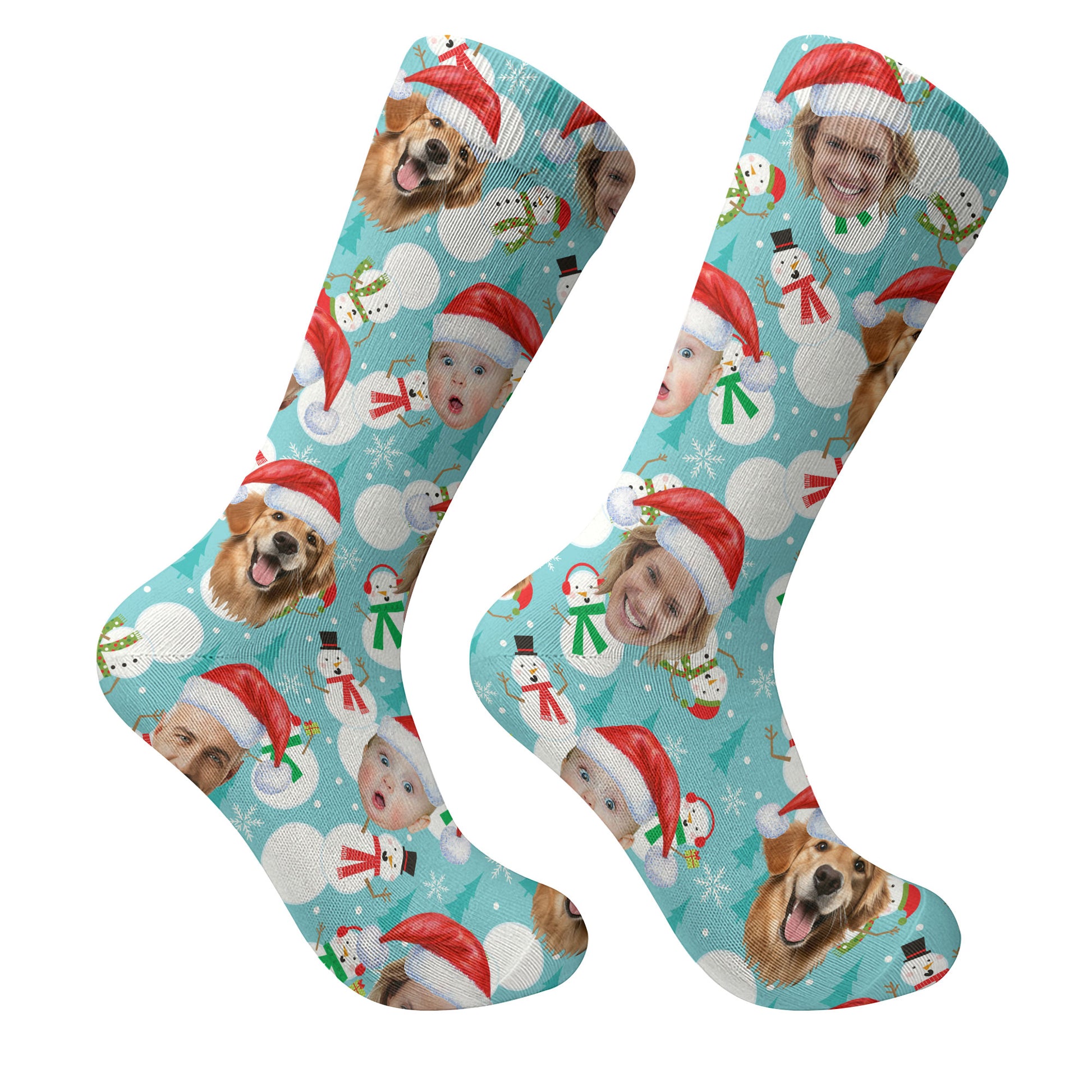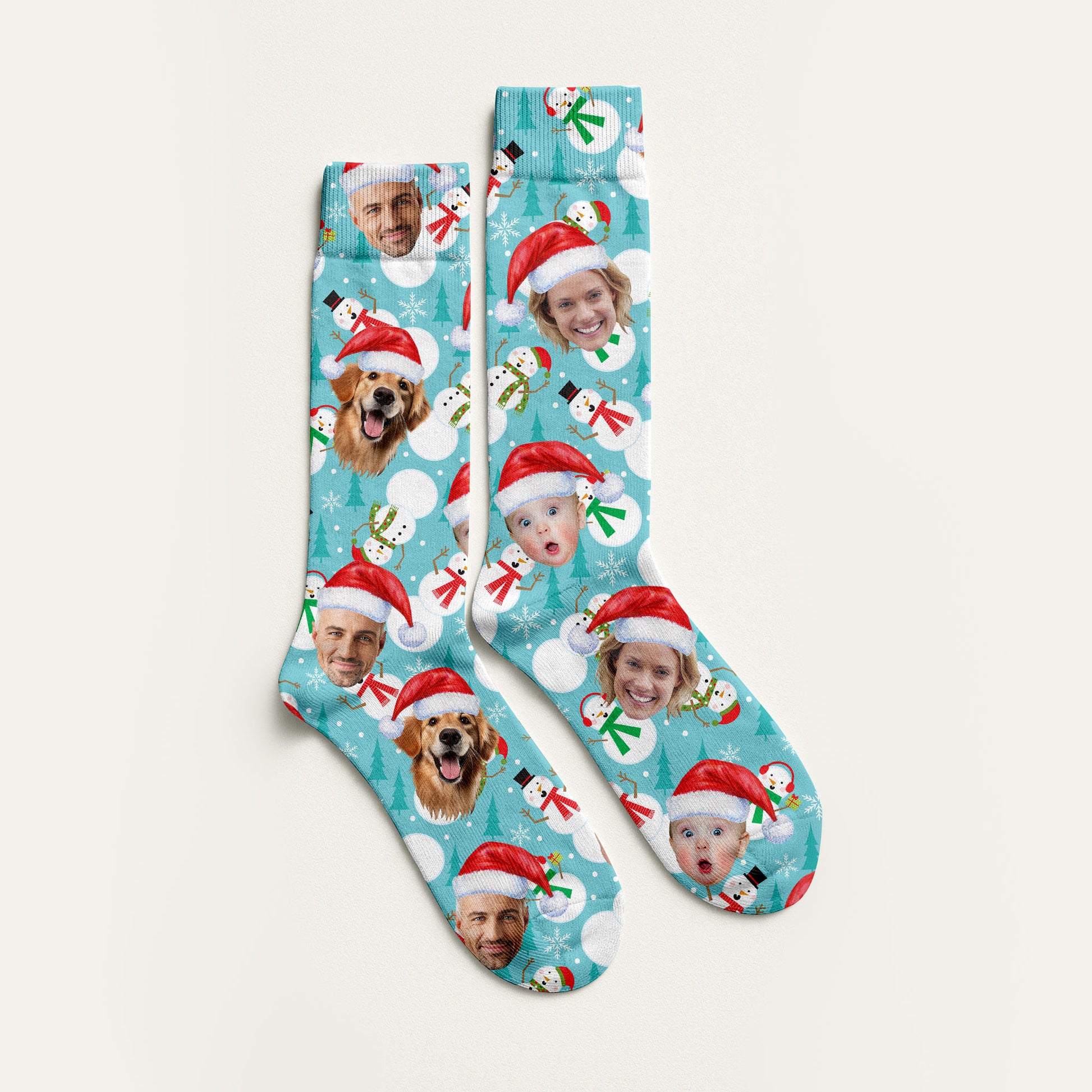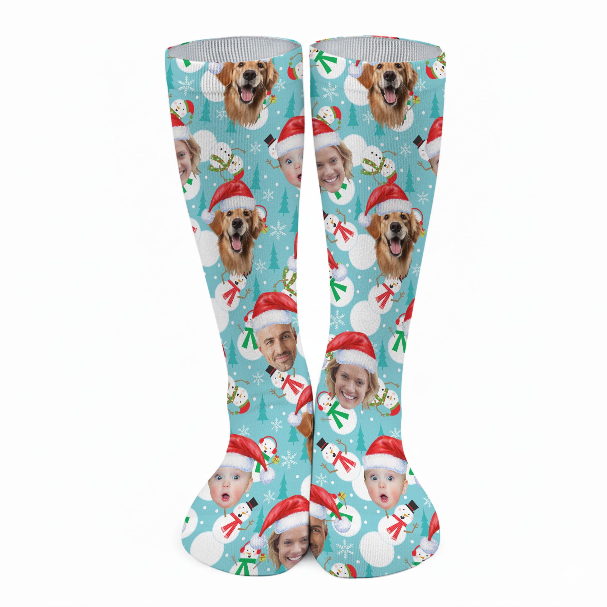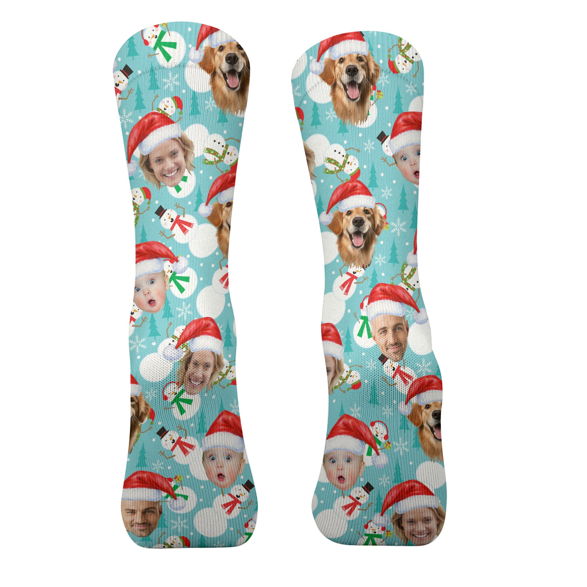 Custom Face Cute Snowman Ice Blue Golf Socks, Christmas Golf Gift, Custom Golf Accessories