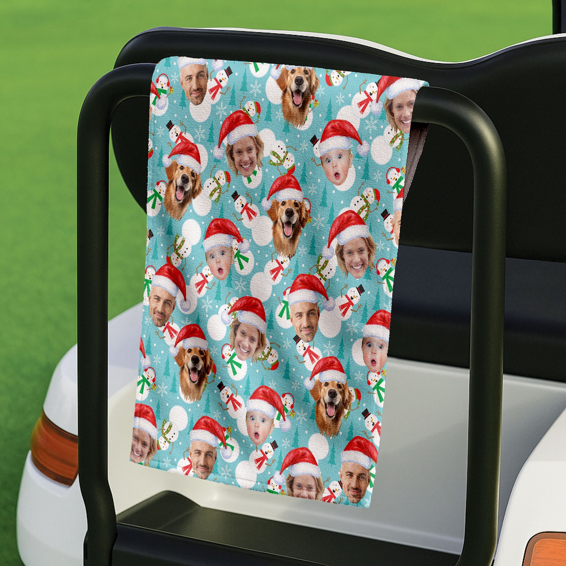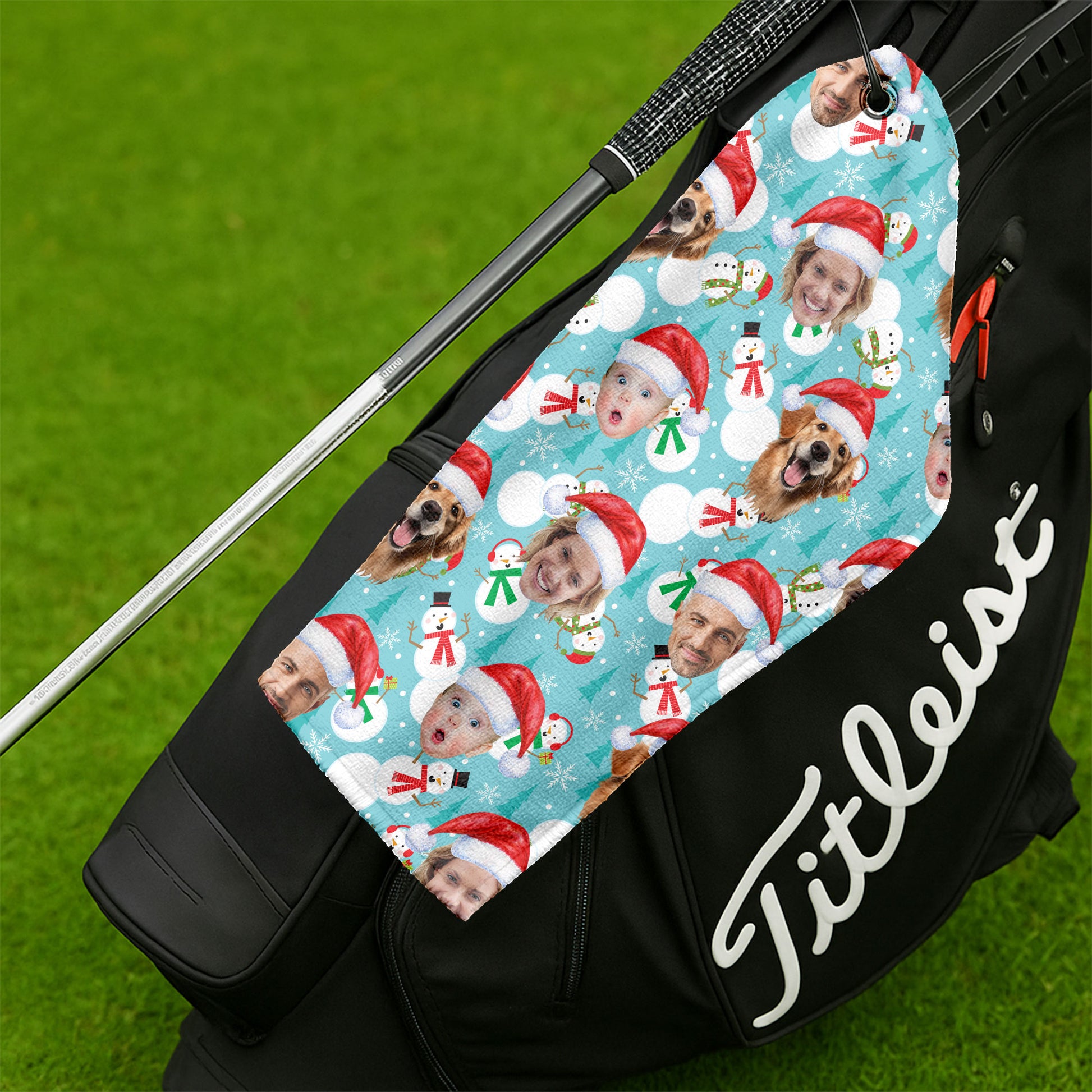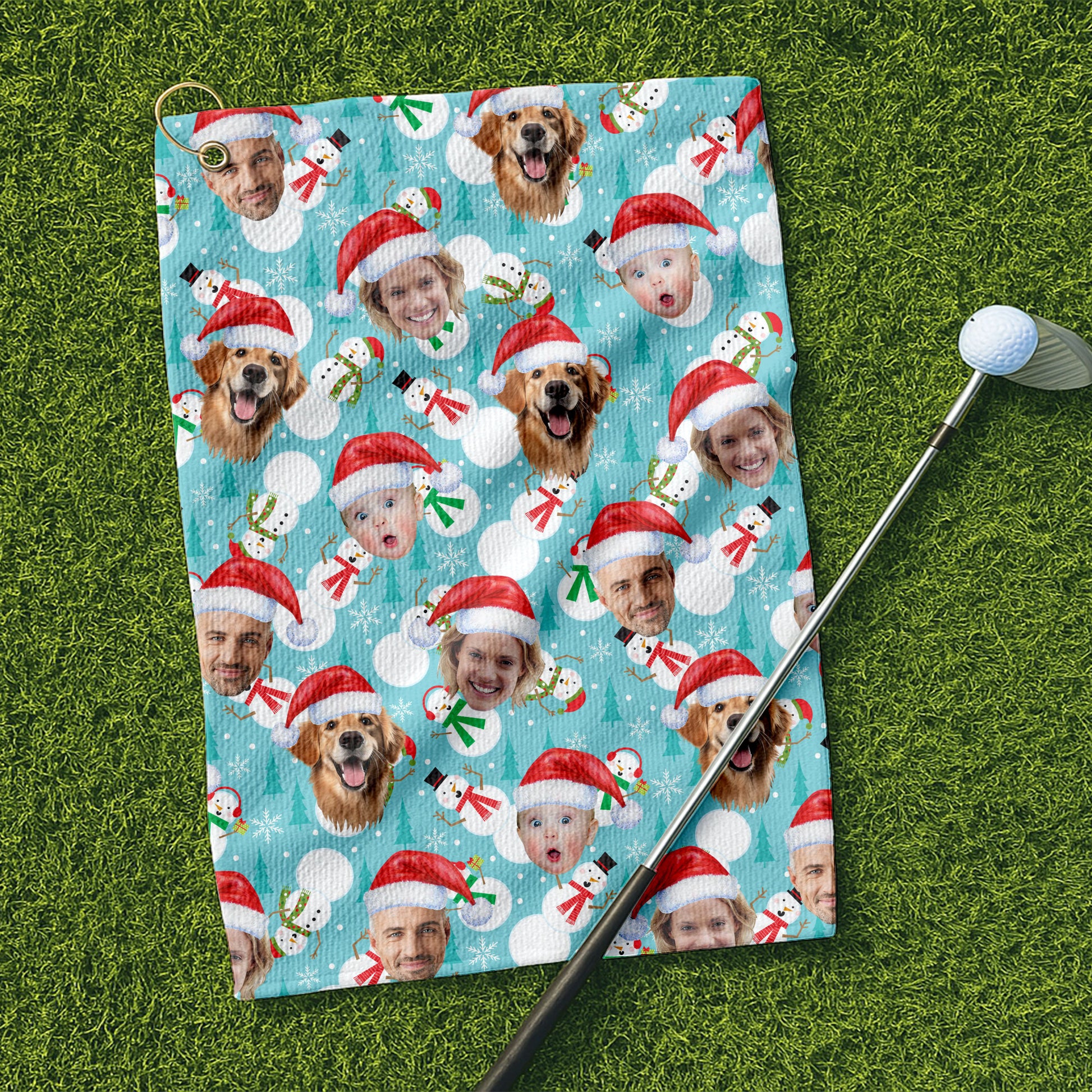 Custom Face Cute Snowman Ice Blue Golf Towels, Christmas Golf Gift, Custom Golf Accessories