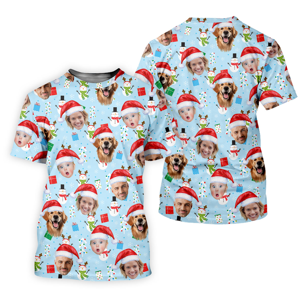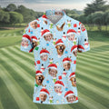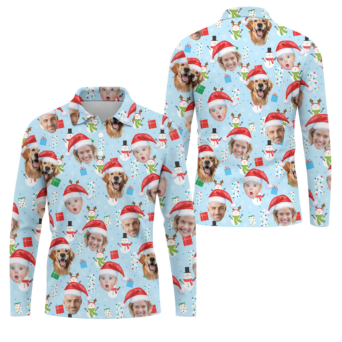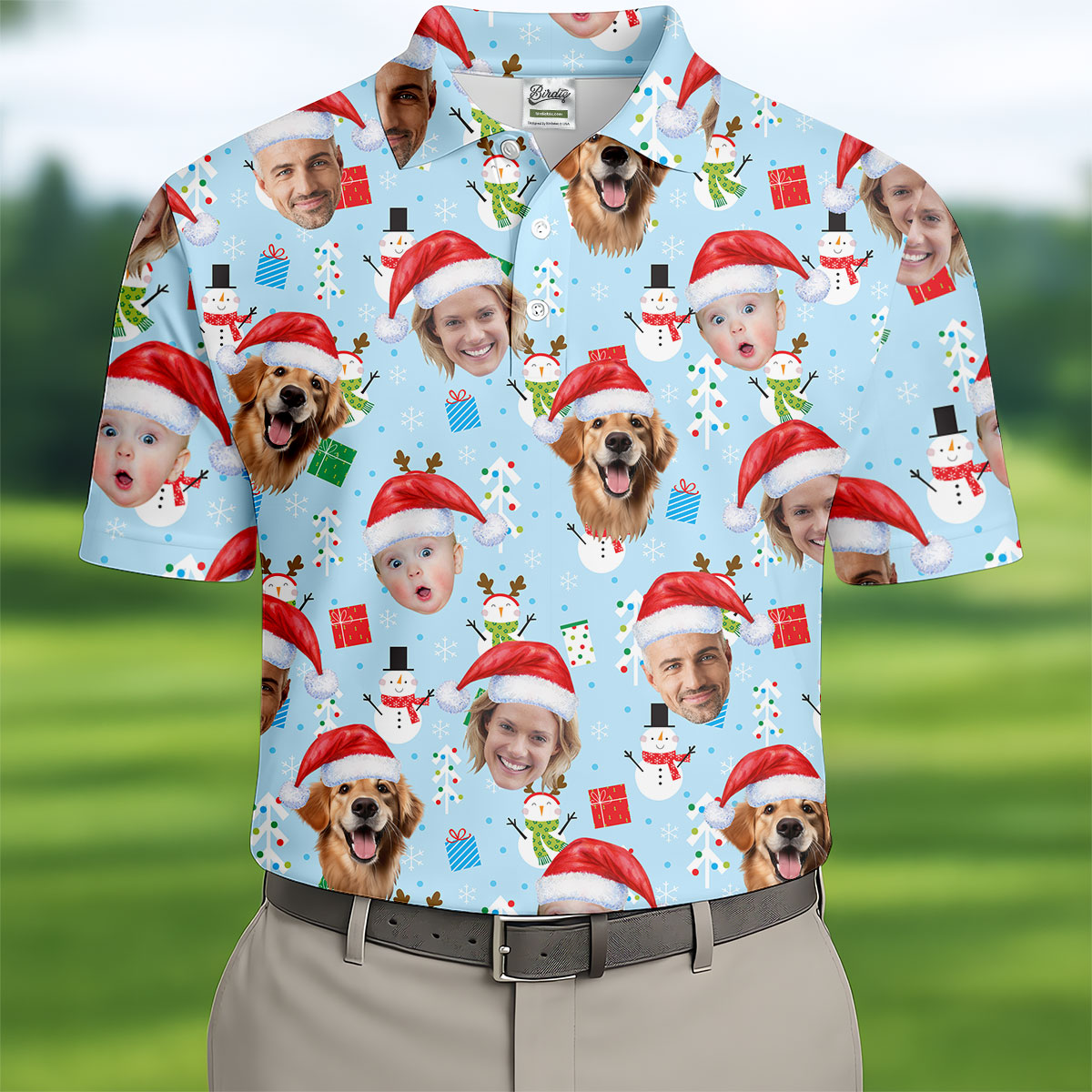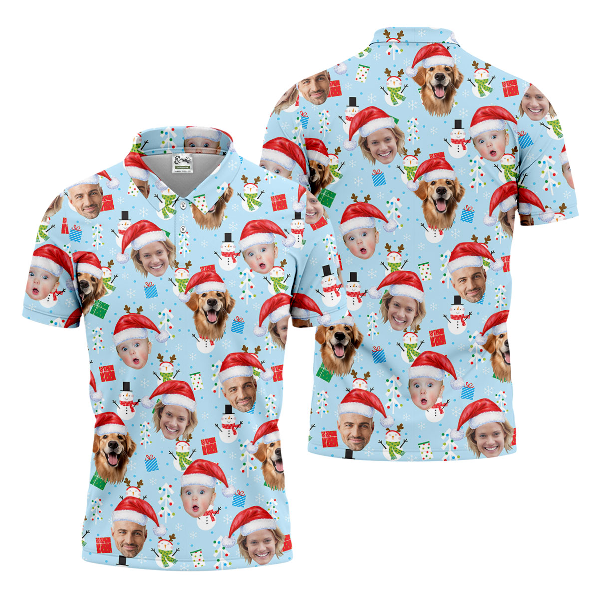 Custom Face Cute Snowman Pastel Blue Christmas Golf Shirt, Polo Shirts For Men, Golf Gift For Men